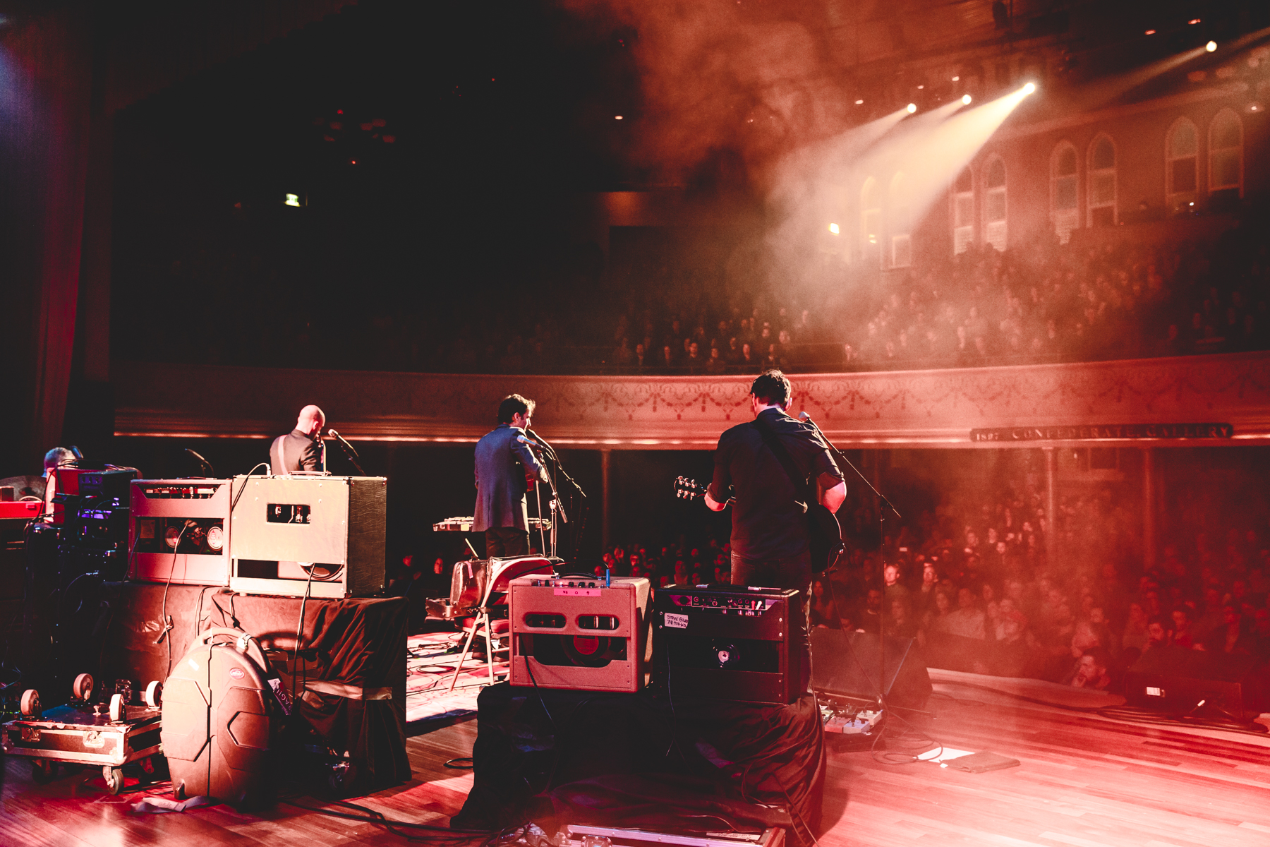 Scoring a sweet parking spot a half a block from the Ryman is reason for celebration on any given night in downtown Nashville, but a ticketing snafu at the box office attempted to quell my parking high. Given the number of shows that No Country collectively attends in a year, it’s really surprising that it doesn’t happen more often, and the good people at the venue had us worked out in fairly short order. The downfall of the situation, we missed the opener Boogarins. I first saw Boogarins in the opening slot for The Clean at The Stone Fox in the summer of 2014, and was blown away by the psychedelic tone and utterly unstoppable positive attitude from the Brazilian rockers. We hung for drinks after the show, and their vibe was no stage act. They were genuinely nice guys who don’t take their success for granted, and I was really looking forward to catching their set opening things up on the much grander stage at The Ryman.