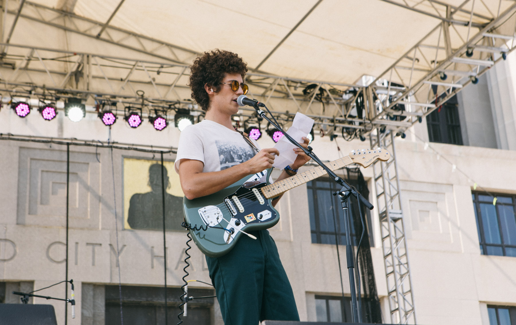 With the sun shining, beers flowing and crowds starting to form, Ron Gallo started his set in true rock star fashion. What does that mean? It means politely (if not slightly robotically) reading off a list of thank-yous and Sheryl Crow puns before kicking it into high gear. He brought all the gleefully raw rock energy that flows through his latest LP, HEAVY META, to the main stage. When you can get the hipster bros in the front row to furiously bob their head, you know you’re doing something right.  [LL]