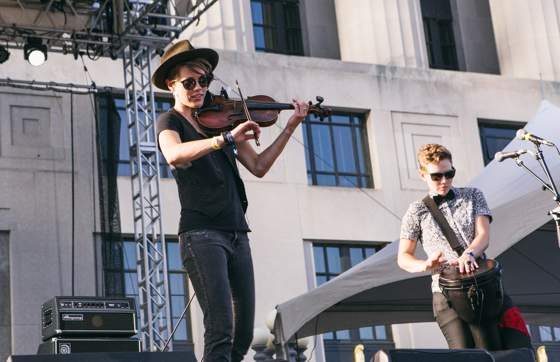 When I arrived on site about twenty minutes before The Whistles & The Bells were set to start, I wondered if I got my times wrong. The usually bustling festival was sparsely populated and the few that were on hand were hiding happily in the fest’s few shady areas. The band came on to only a handful of people of the lawn, but that didn’t affect their energy. Relying heavily on cuts from their new record Modern Plagues, they did their best to get earlybirds to shake a tail feather. You know it’s a tough crowd when a lighthearted, danceable tune like “Harry Potter” can’t get people moving. Still, their set was an overall solid kickoff to the festivities. [LL]