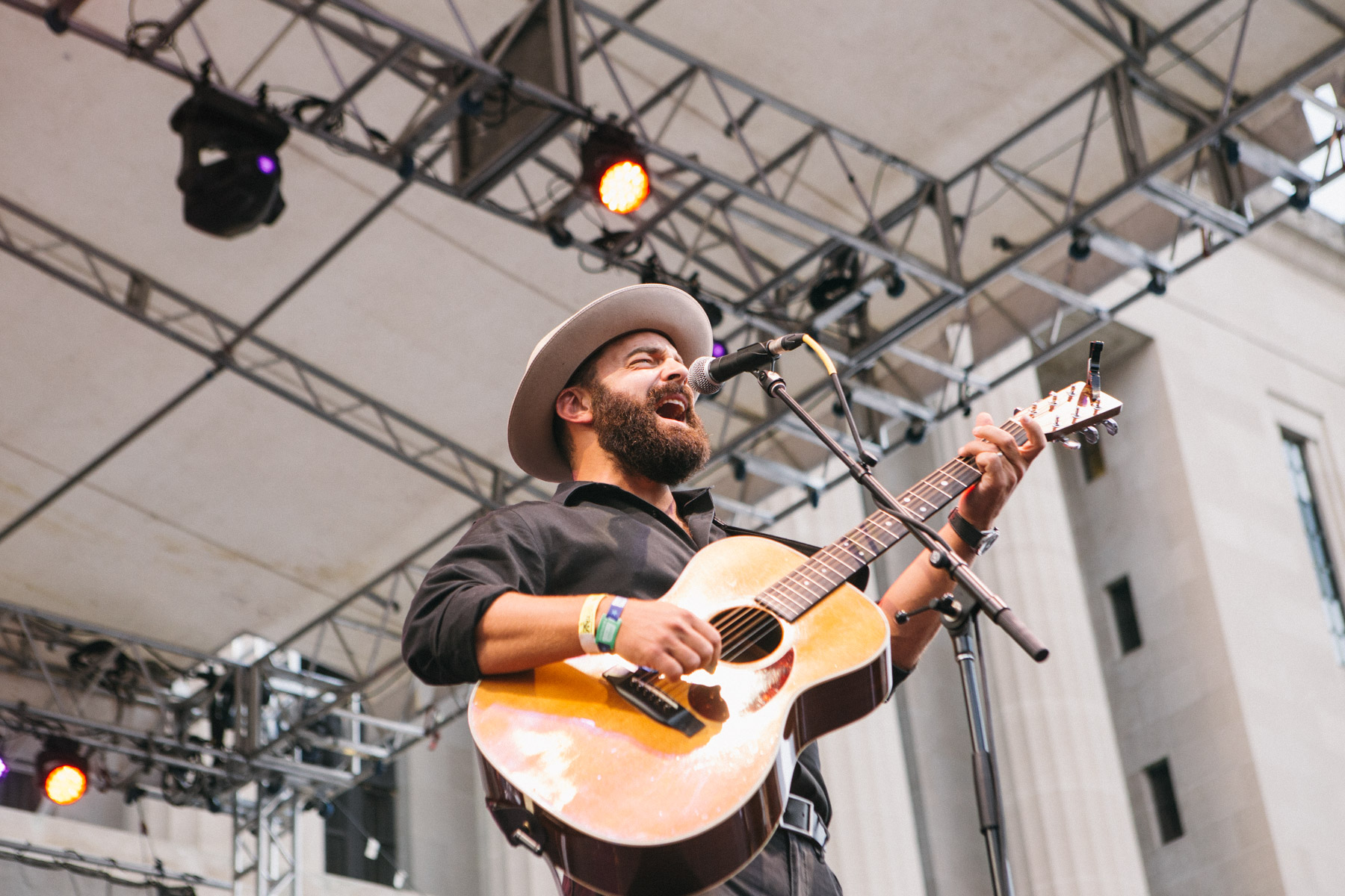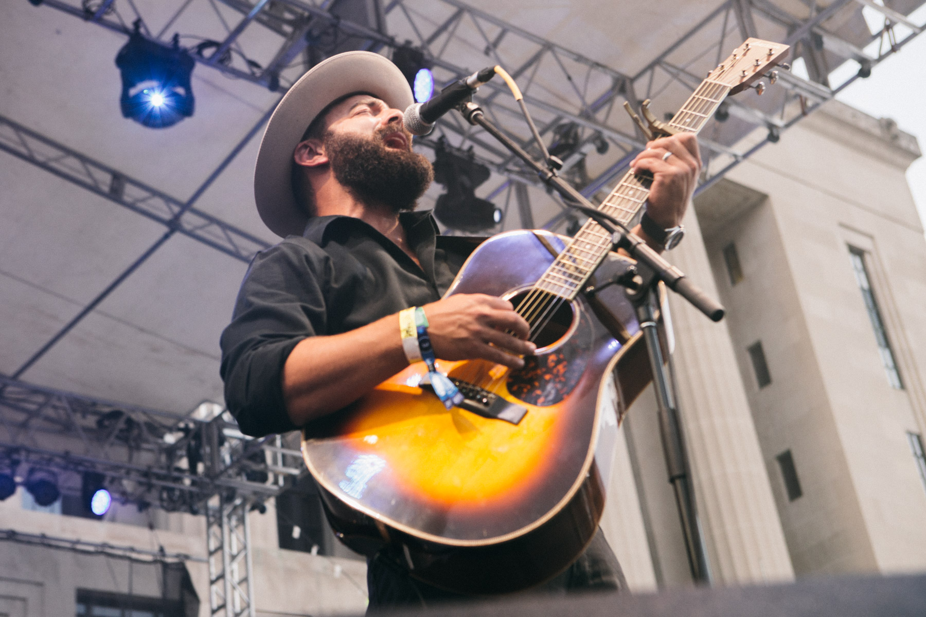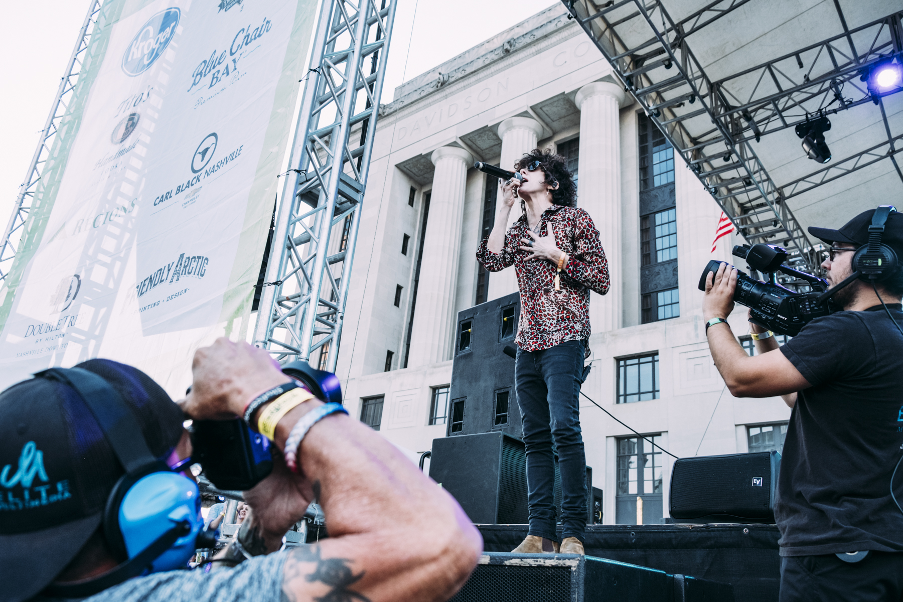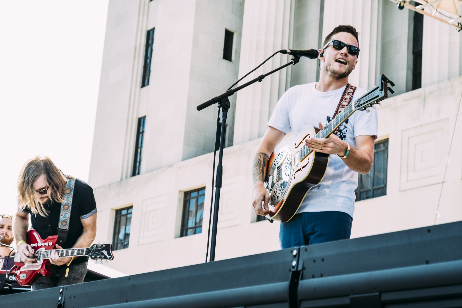 Arriving at Public Square Park just as The Record Company got cranked up, I was immediately impressed with the LA based blues rock trio. I’d heard them plenty on the radio, and had them high on my “must-see list,” and I’m so glad I caught them here in town for free, because I can guarantee their popularity, and ticket prices will only be going up. Lead guitarist Chris Vos displayed skull-melting talent, using a slide as well as anyone, and playing lap steel/pedal steel guitar masterfully. With powerful percussion and bass/guitar accompaniment, they created a raw, and sincere form of rock and roll that harkened back to the genre’s delta blues roots. During a break in the action, they mentioned they were winding a long tour, and they’d been super stoked to close out with such and awesome event like LOTG. There really is something about such an awesome mini-fest happening the heart of downtown Nashville. As the crowd grew, and the band plowed through their setlist, the weather only got better, and everyone could tell it was going to be a very special night of live music. [JR]