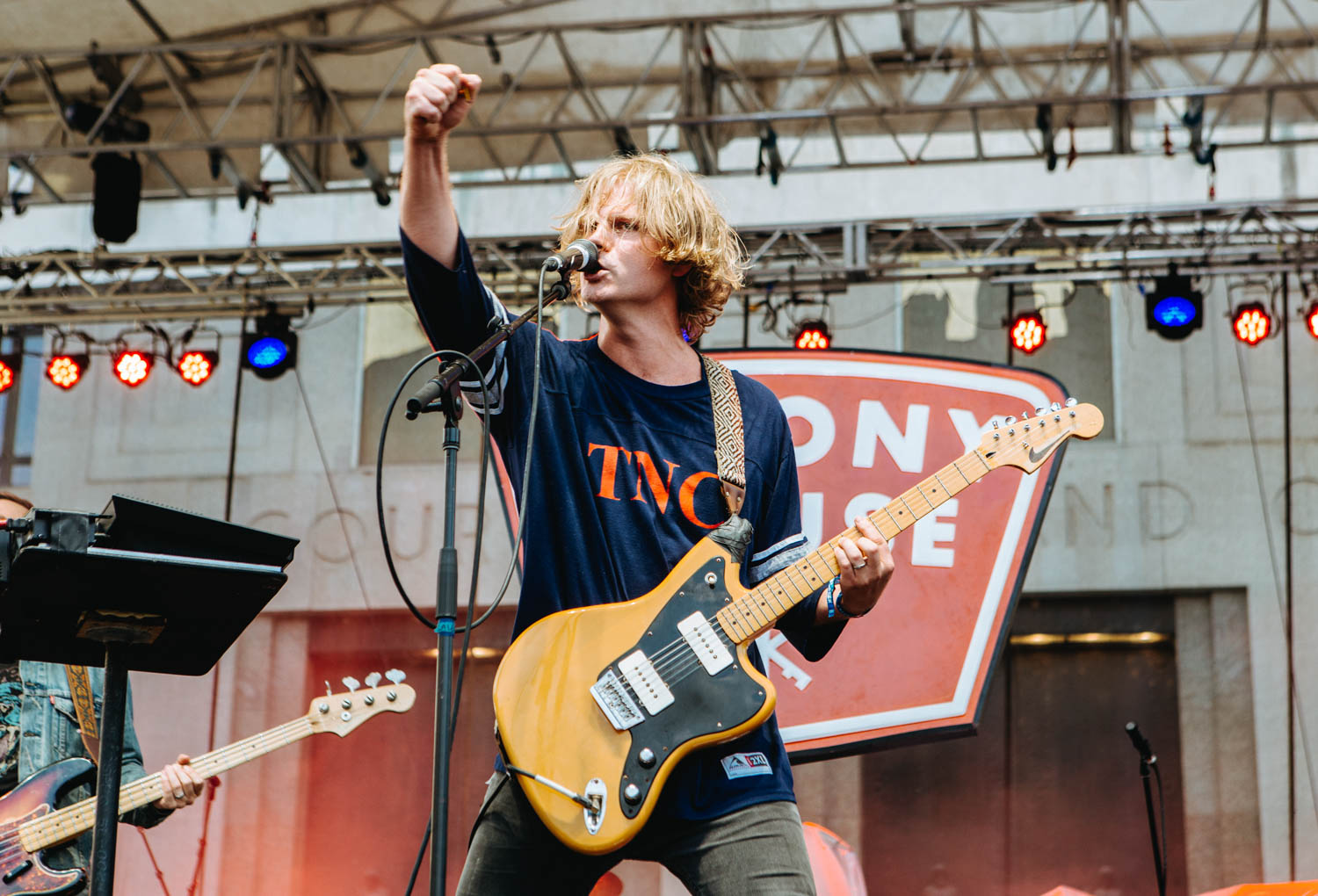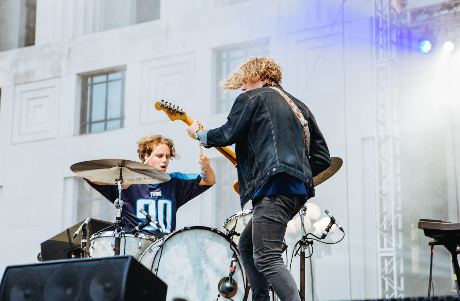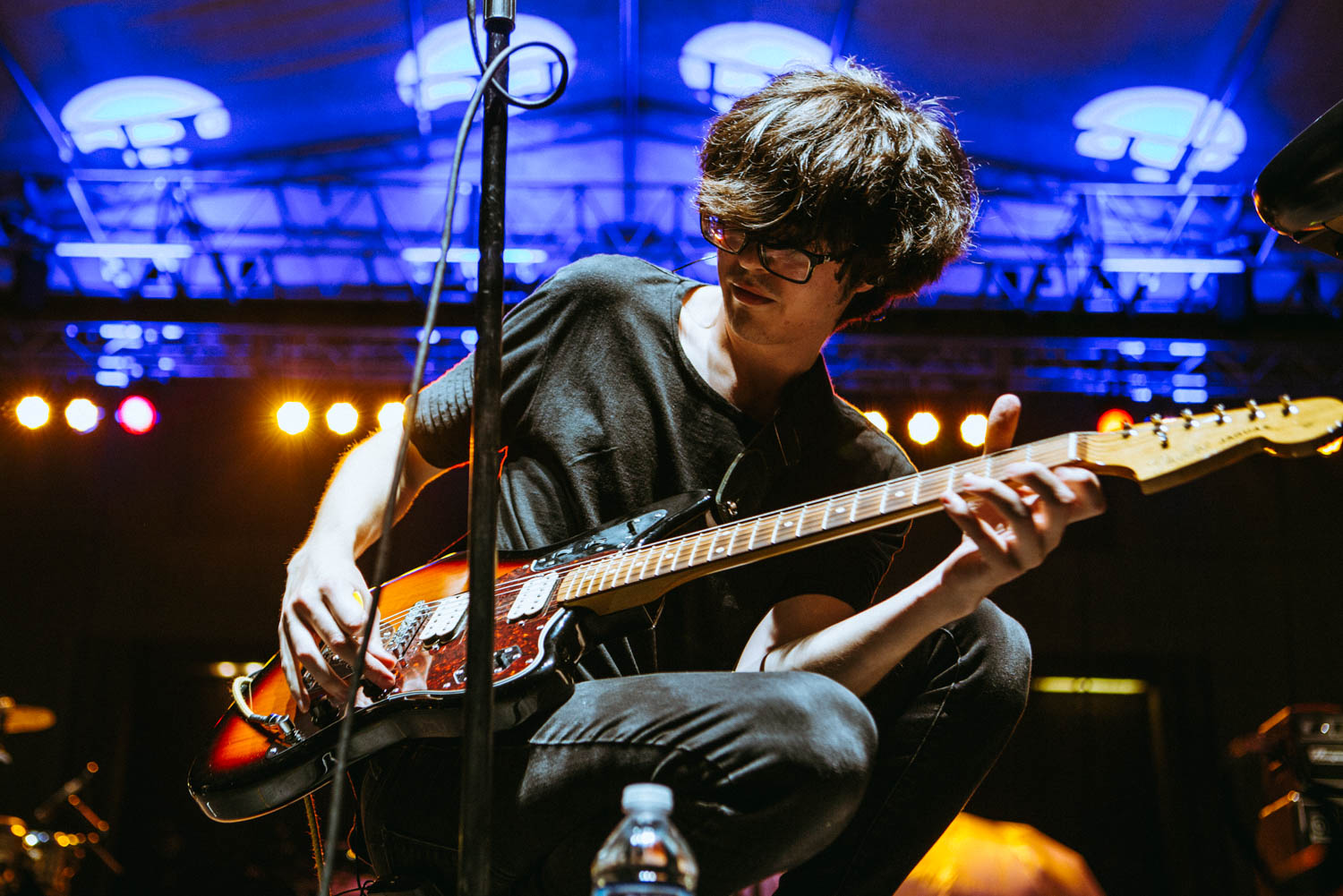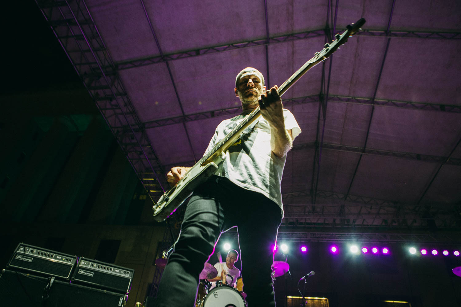 Jared, donning the same black and white stripped look he’s worn since the band’s beginning, has really grown into his role as a frontman, able to capture the crowd’s attention, get people engaged, and sustain a level of lightheartedness and excitement, running around the stage and at one point shimmying between the speakers to land in the pit, where he played half a song on the railing in the middle of the audience. Kristyn, meanwhile, remains the duo’s anchor, filling out songs with keyboards, samples, and backing vocals, rocking a whimsical, retro look that, at her own admission, may or may not have been covertly peed on by one of the duo’s numerous rescue cats. More than just looking the part though, *repeat repeat sounded magnetic, their trim set chock full of inspired renditions of favorites like like “Girlfriend,” “Everybody’s Falling in Love,” and “Mostly,” as well as a couple of cuts from their highly-anticipated forthcoming LP. I can’t think of a better-suited band to kick off a show like this, and though the half hour time slot flew by all too fast, it left me absolutely amped (and the bar set high) for the rest of the evening.