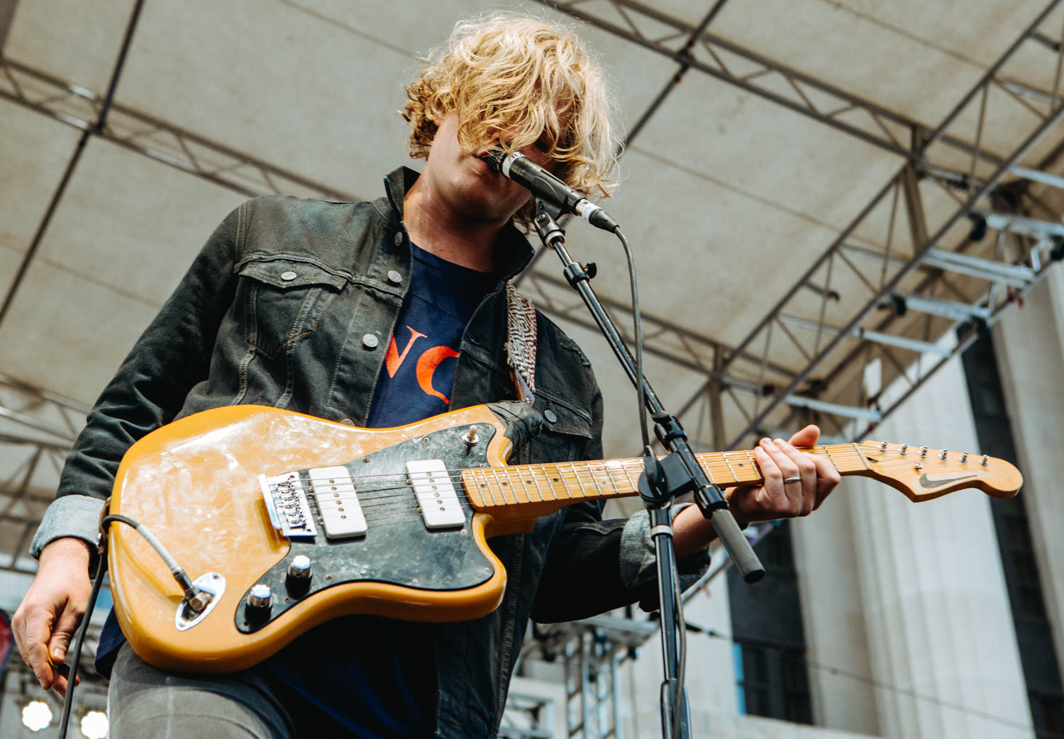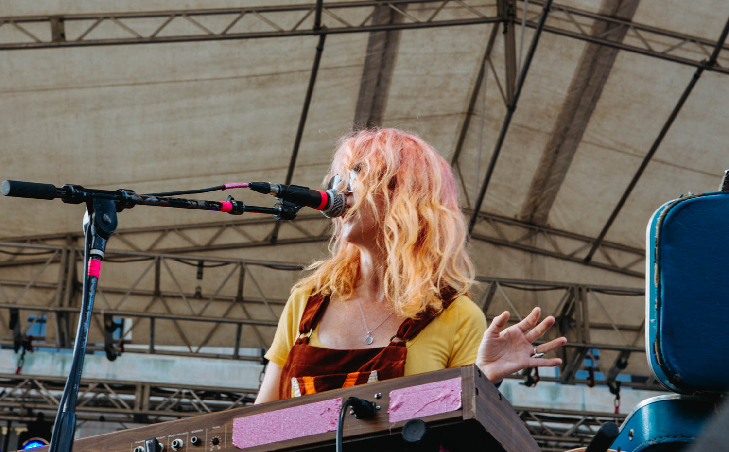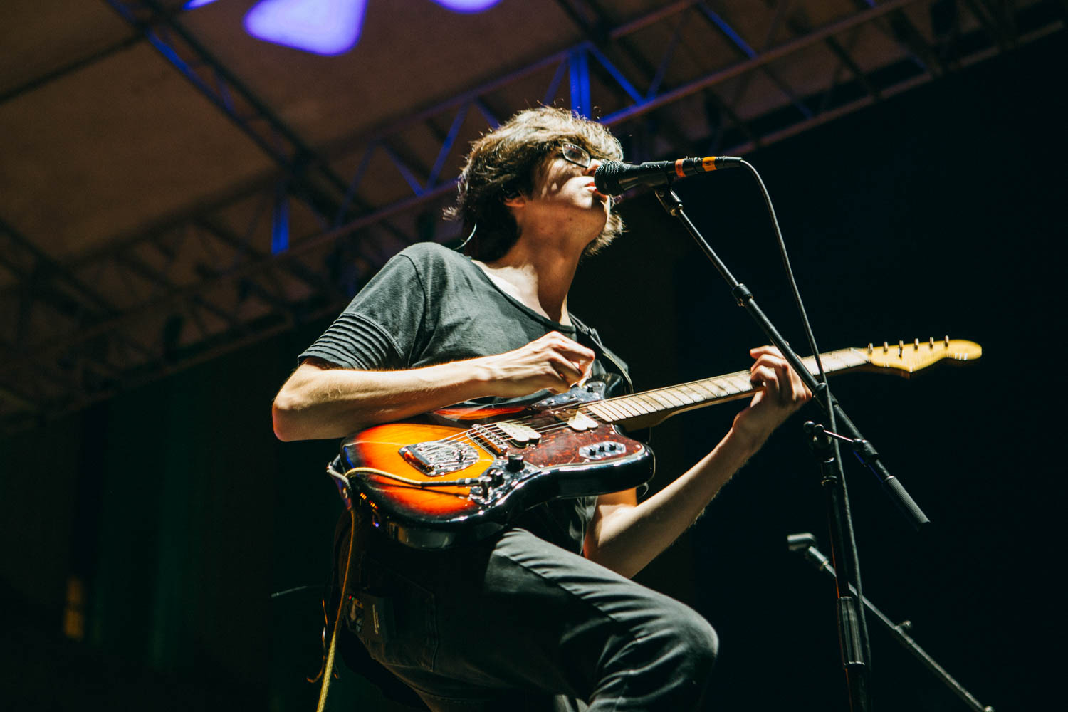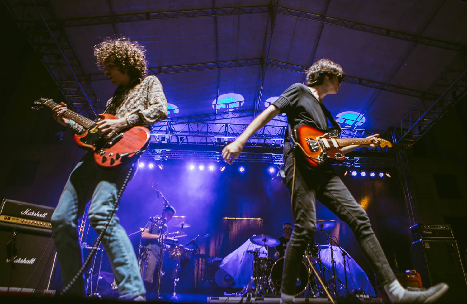 Jared, donning the same black and white stripped look he’s worn since the band’s beginning, has really grown into his role as a frontman, able to capture the crowd’s attention, get people engaged, and sustain a level of lightheartedness and excitement, running around the stage and at one point shimmying between the speakers to land in the pit, where he played half a song on the railing in the middle of the audience. Kristyn, meanwhile, remains the duo’s anchor, filling out songs with keyboards, samples, and backing vocals, rocking a whimsical, retro look that, at her own admission, may or may not have been covertly peed on by one of the duo’s numerous rescue cats. More than just looking the part though, *repeat repeat sounded magnetic, their trim set chock full of inspired renditions of favorites like like “Girlfriend,” “Everybody’s Falling in Love,” and “Mostly,” as well as a couple of cuts from their highly-anticipated forthcoming LP. I can’t think of a better-suited band to kick off a show like this, and though the half hour time slot flew by all too fast, it left me absolutely amped (and the bar set high) for the rest of the evening.