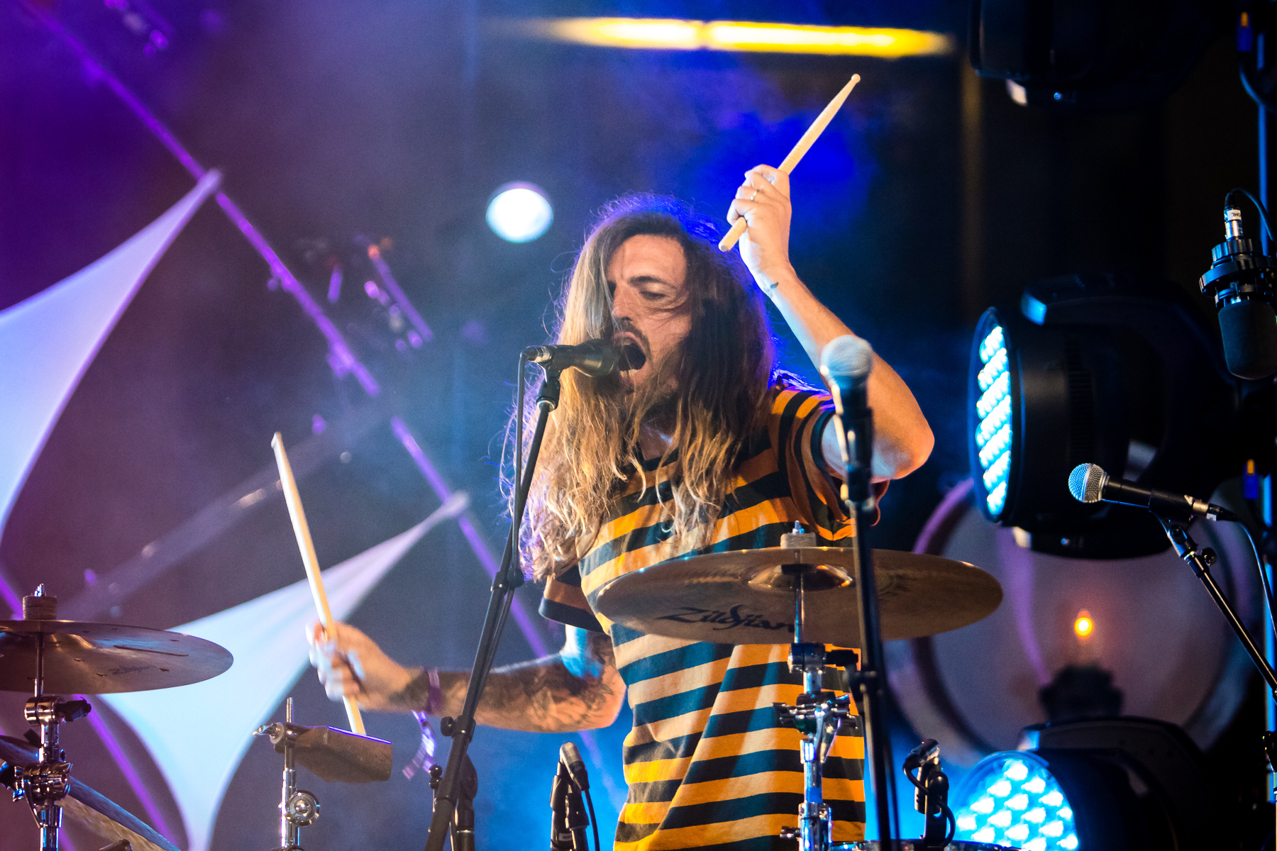 Kicking off their set with “Be Gone,” bathed in dense fog and pulsing, colorful lights in front of a trippy, geometric backdrop, it was clear from note one that the band’s were the night’s biggest draw, tons of enthusiastic, excited fans pushing to the front to vibe along. Commenting on the unfortunate circumstances of the year prior, the group remarked how lucky Nashville was to have an event such as this, and seemed particularly appreciative of the crowd and determined to make up for last year with an extra inspired, fan-focused set.