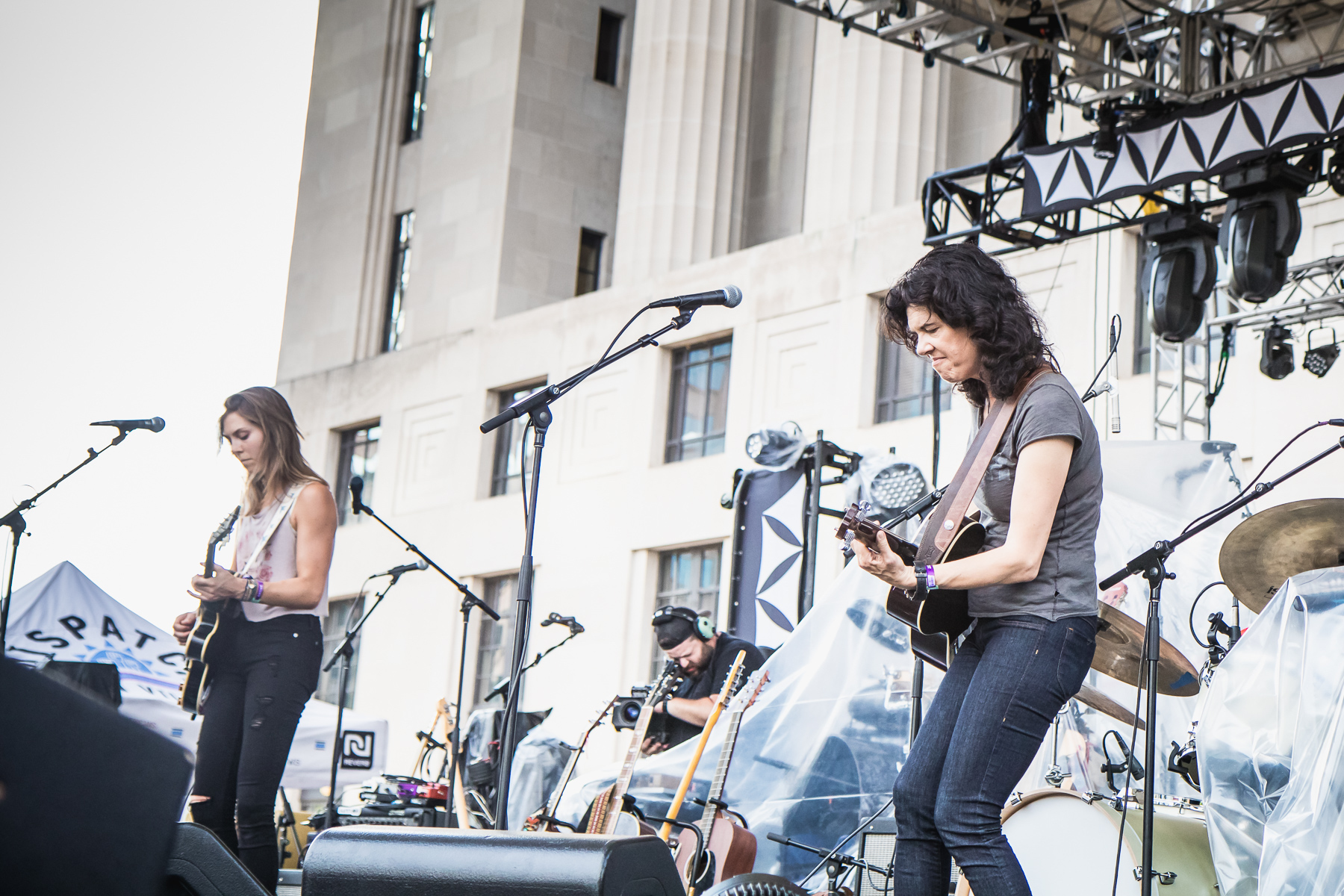 The threat of bad weather seemed to subside just as the group took the stage, met with a still-arriving but enthusiastic early crowd. Armed with only their guitars and no accompanying players, Roscoe & Etta stood in front of plastic-wrapped backline to deliver a pleasant, harmony-rich performance, adopting a low-key, accessible pleasantness and clear polish from years of performing with other projects. Trading off leads, their voices and playing styles proved a perfect compliment- sometimes songwriter duos turned bands can feel a little lacking in identity, but not the case here- and while they mentioned trying out some new material, it was all new and exciting to me.