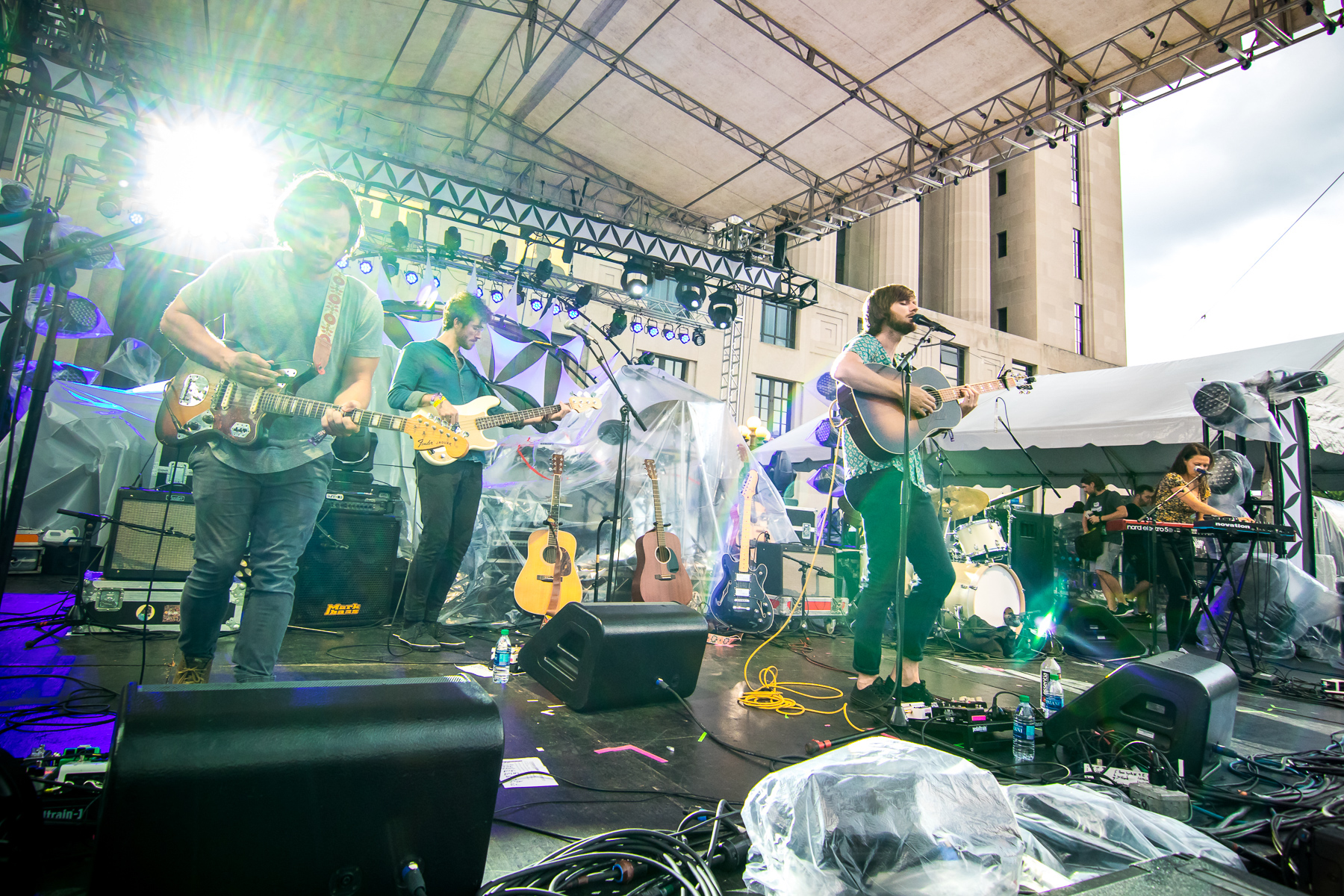 Live on the Green is technically a rain or shine event, and it takes particularly extenuating circumstances to change that. We’ve had some fun memories rocking out at the fest in heavy rain, but last year, at the start of the final weekend, a particular nasty storm and the threat of tornado weather forced cancelation for public safety, the night Dispatch were set to perform. While some of the evening’s performers were shuffled, the touring act unfortunately had to move on, but not before treating a handful of lucky fans to an intimate, pop up show in the parking lot below while the storm raged on. This year, however, Dispatch returned for a proper performance, and, fortunately, the weather cooperated- mostly.