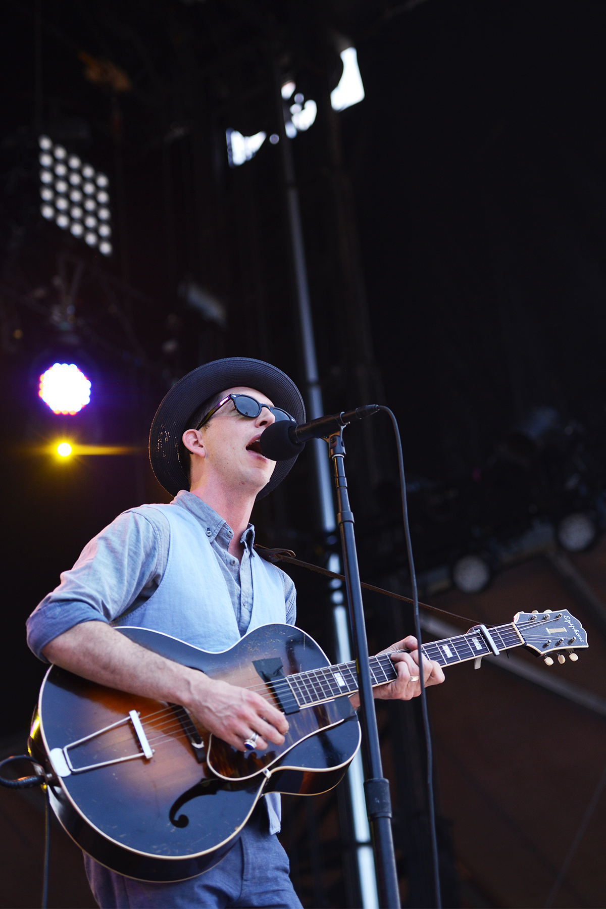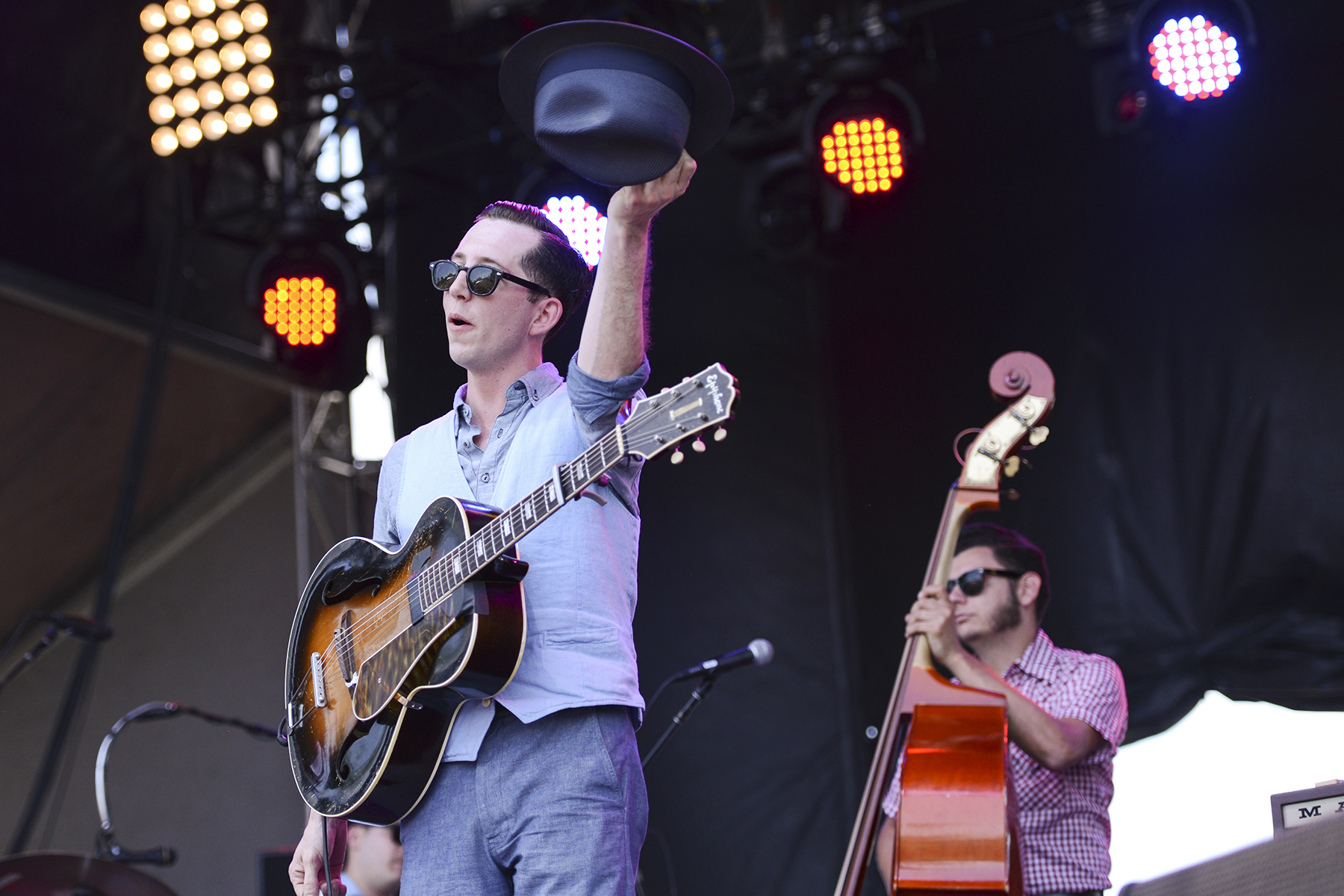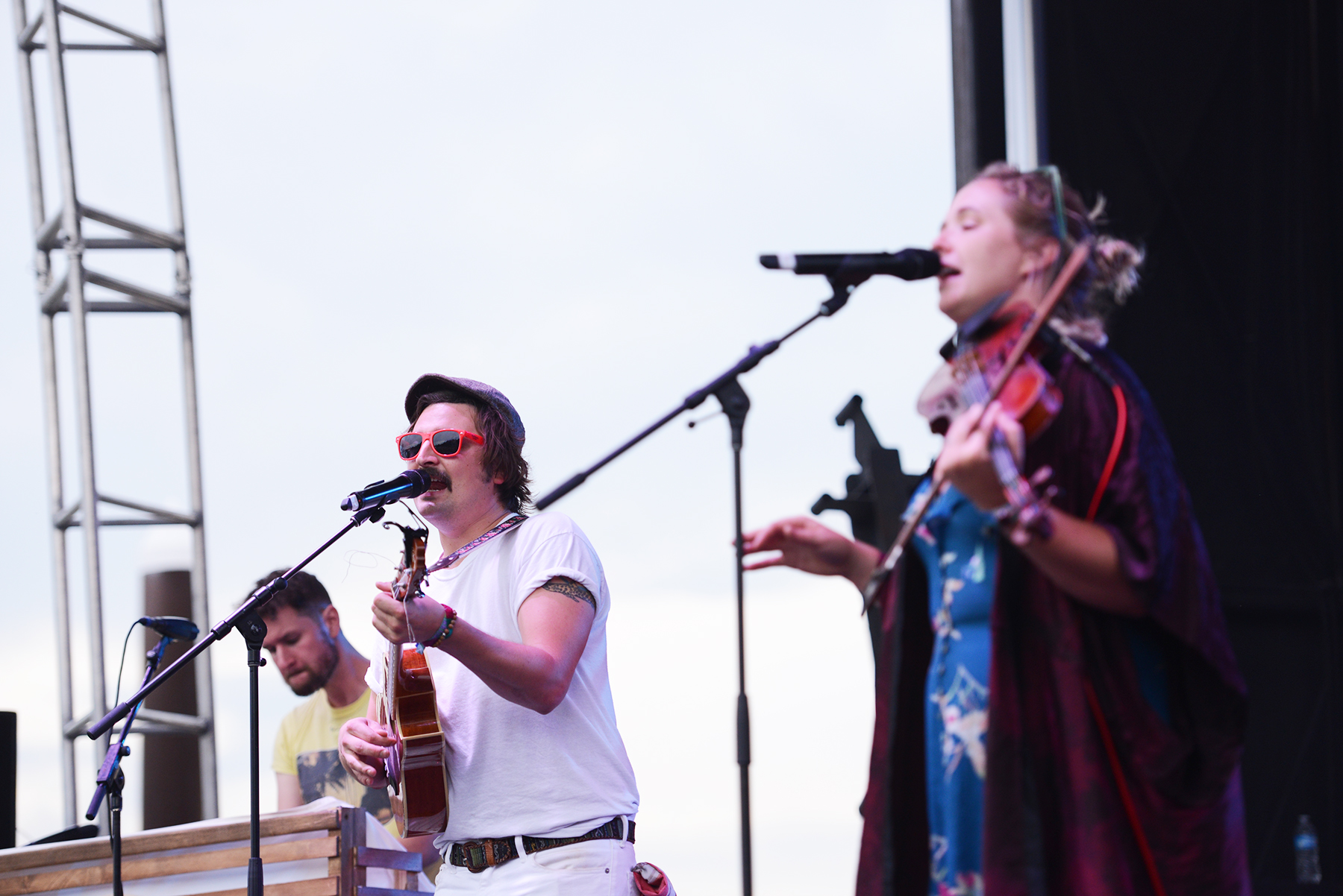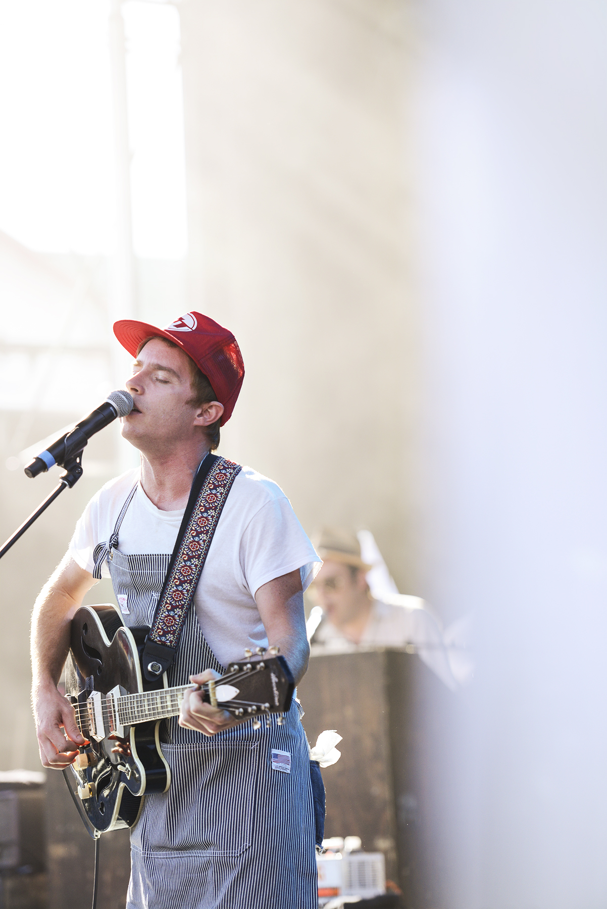 Rejuvenated from a good night’s sleep and with a belly full of great local food and coffee, I made it back in on Saturday a little later than planned, unfortunately missing local duo MYZICA, but arriving just in time for site favorite Pokey LaFarge. Dressed more casually than I’ve ever seen him (his old time-y full suit getup might have literally caused heat exhaustion), LaFarge and his talented band got right to the point with familiar cuts like “Something in the Water” and “Central Time.” Pokey, who we’ve written about plenty in the past, harbors this genuine, timeless enthusiasm in his craft, and often it seems like festival attendees unfamiliar with his music don’t quite know what to make of him, but seem drawn in all the same. Saturday was blistering hot, and people were still slowly trickling in, but LaFarge’s welcoming songs served as a perfect way to ease into the day, even as I ventured off in pursuit of shade. [PO]