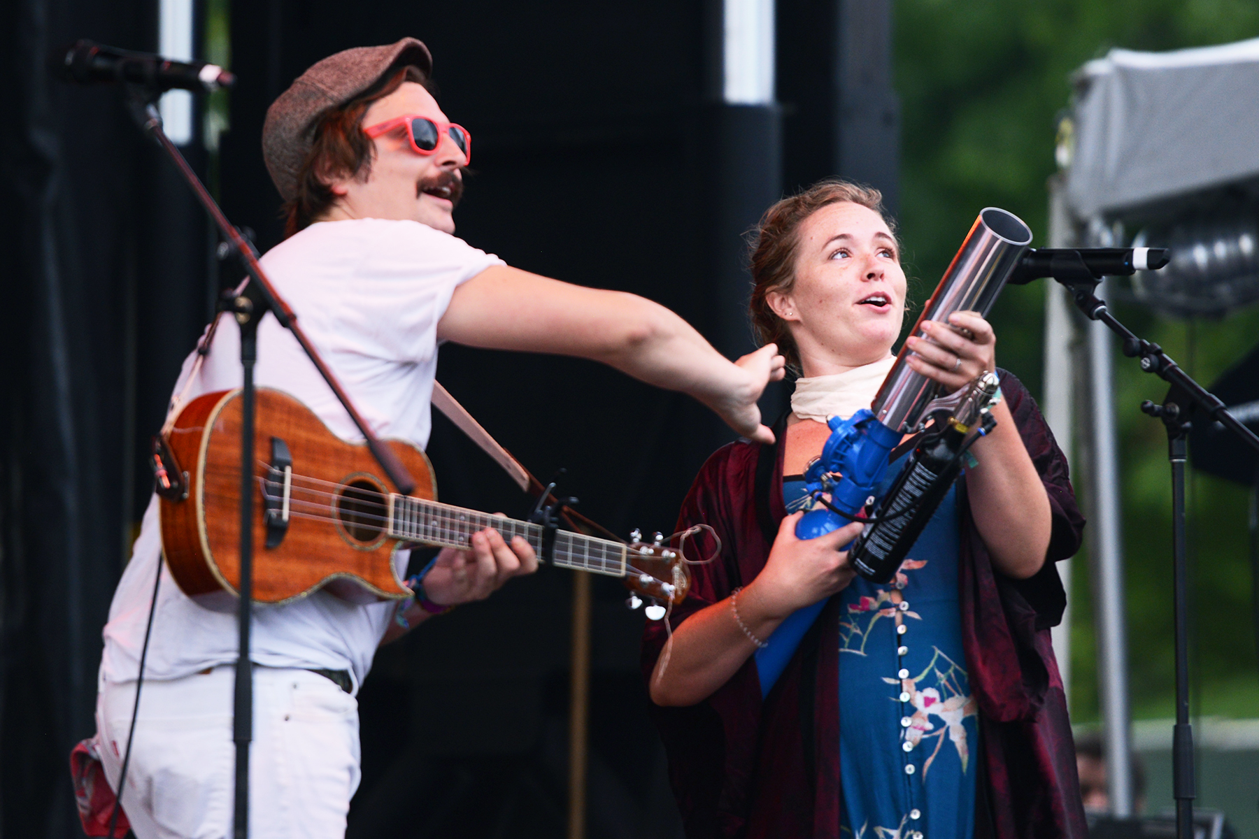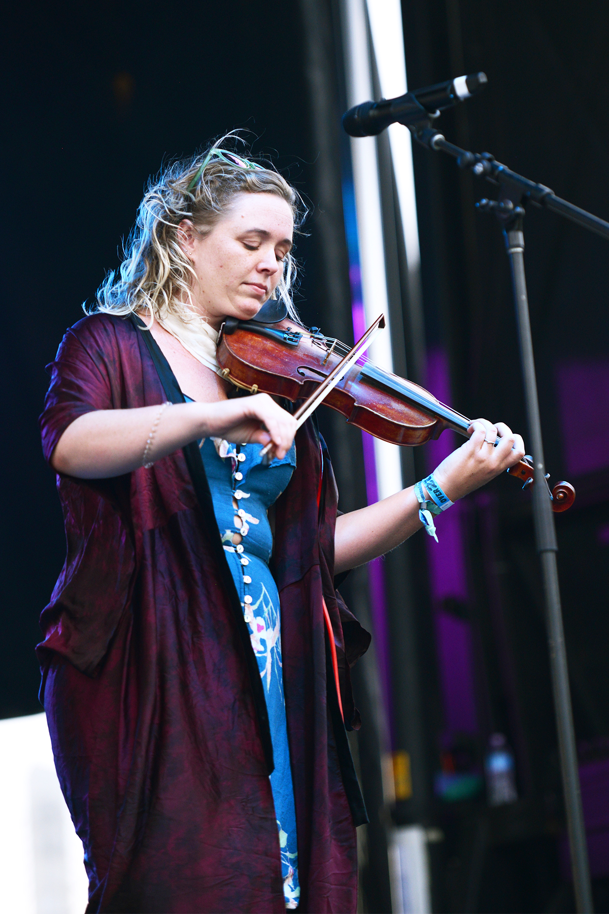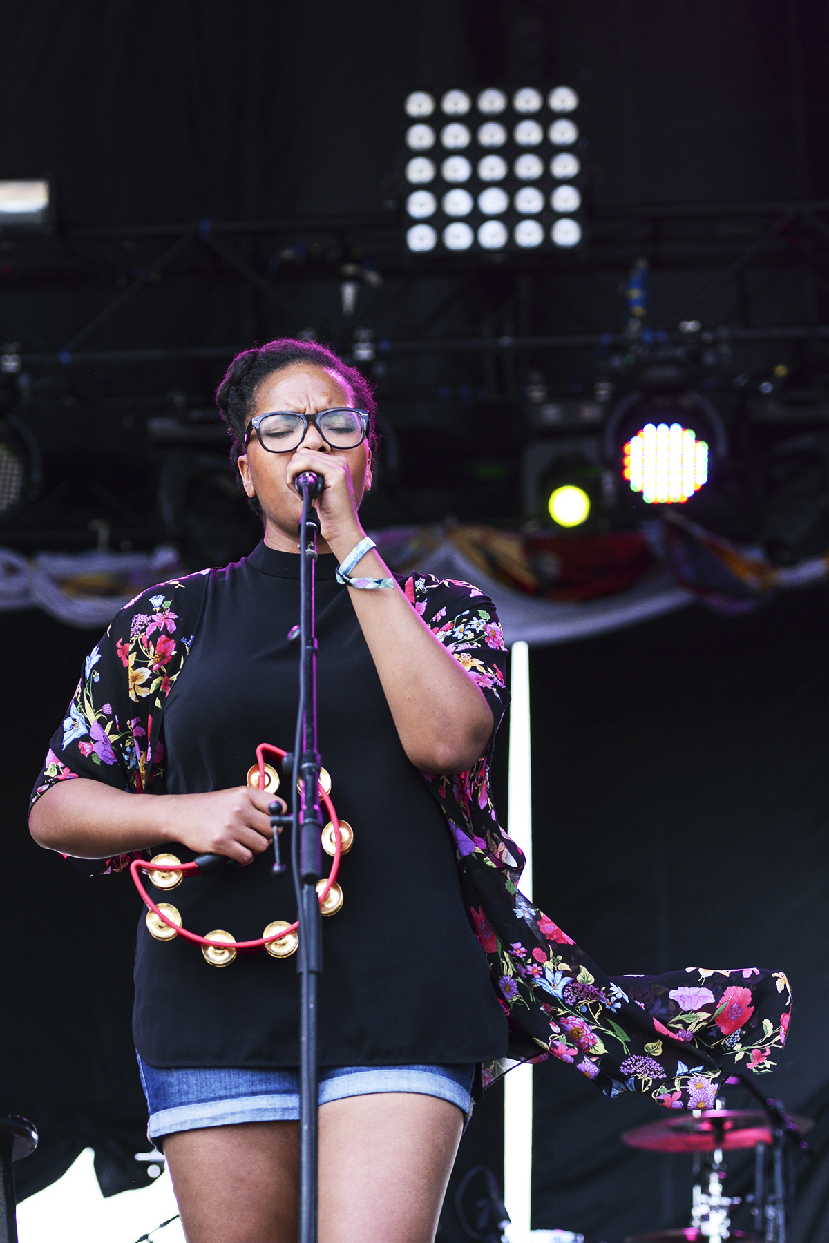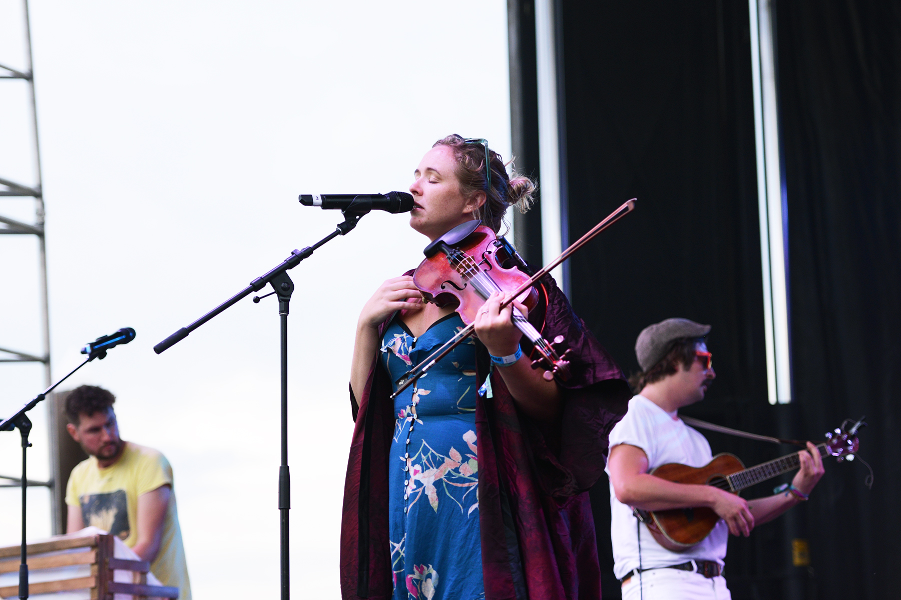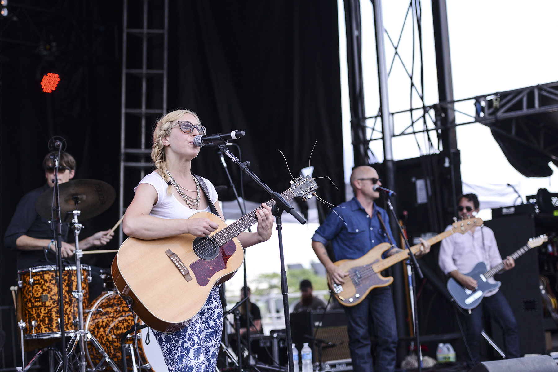 Rejuvenated from a good night’s sleep and with a belly full of great local food and coffee, I made it back in on Saturday a little later than planned, unfortunately missing local duo MYZICA, but arriving just in time for site favorite Pokey LaFarge. Dressed more casually than I’ve ever seen him (his old time-y full suit getup might have literally caused heat exhaustion), LaFarge and his talented band got right to the point with familiar cuts like “Something in the Water” and “Central Time.” Pokey, who we’ve written about plenty in the past, harbors this genuine, timeless enthusiasm in his craft, and often it seems like festival attendees unfamiliar with his music don’t quite know what to make of him, but seem drawn in all the same. Saturday was blistering hot, and people were still slowly trickling in, but LaFarge’s welcoming songs served as a perfect way to ease into the day, even as I ventured off in pursuit of shade. [PO]