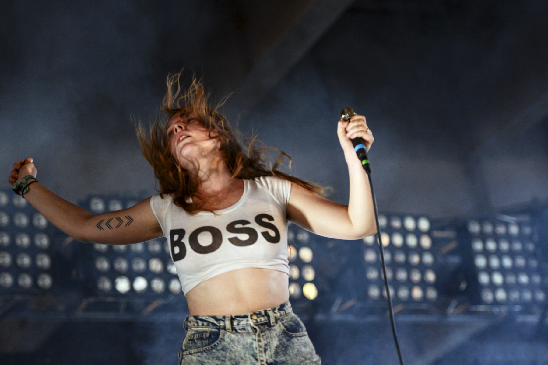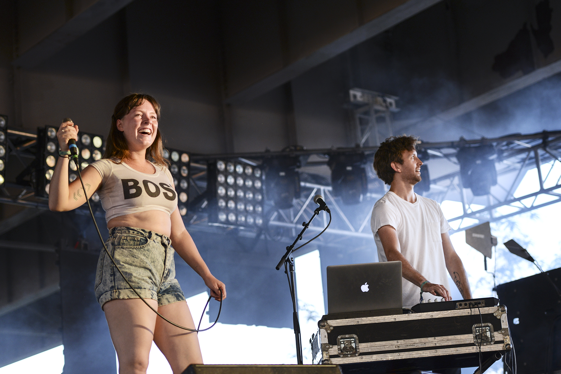 I can’t recall crowds for the the Ocean Stage ever being as packed as they constantly were this year, but walking up for Sylvan Esso, inhaling a cloud of dust and sand, I could barely find a spot. The duo have casually been on my radar since they first starting gaining buzz a couple years ago (who can escape “Coffee” or “Hey Mami”?), but I’d hadn’t had a chance to check them out; definitely love festivals for that reason. Rocking a crop top emblazoned with “BOSS” and dancing like fiend, vocalist Amelia Meath absolutely commanded the stage from note one, kicking into “Hey Mami” to get the crowd wild out of the gate, while cohort Nick Sanborn kept the tunes going without missing a beat. It’s no secret that I’m a sucker for a electro-pop, and I’m incredibly happy to see vocal-driven, retro-influenced dance music falling back into favor. With the Port Stage schedule all out of whack, I couldn’t stay long, but what I saw of Sylvan Esso was fantastic, and I found myself revisiting their record a lot after returning home. [PO]