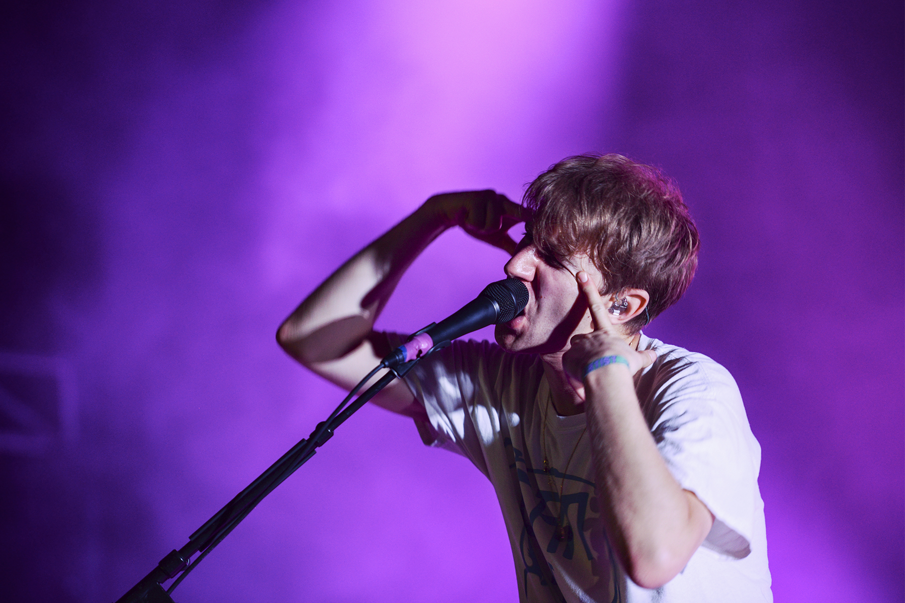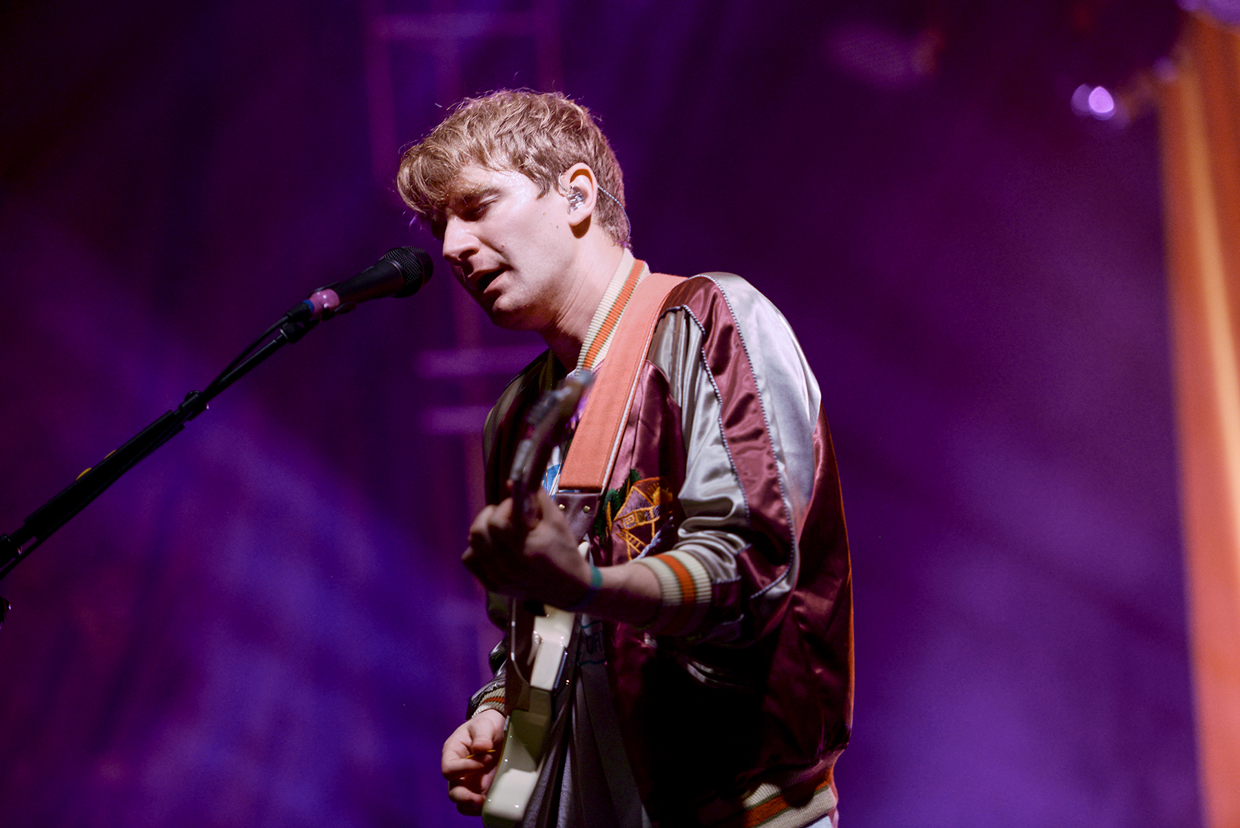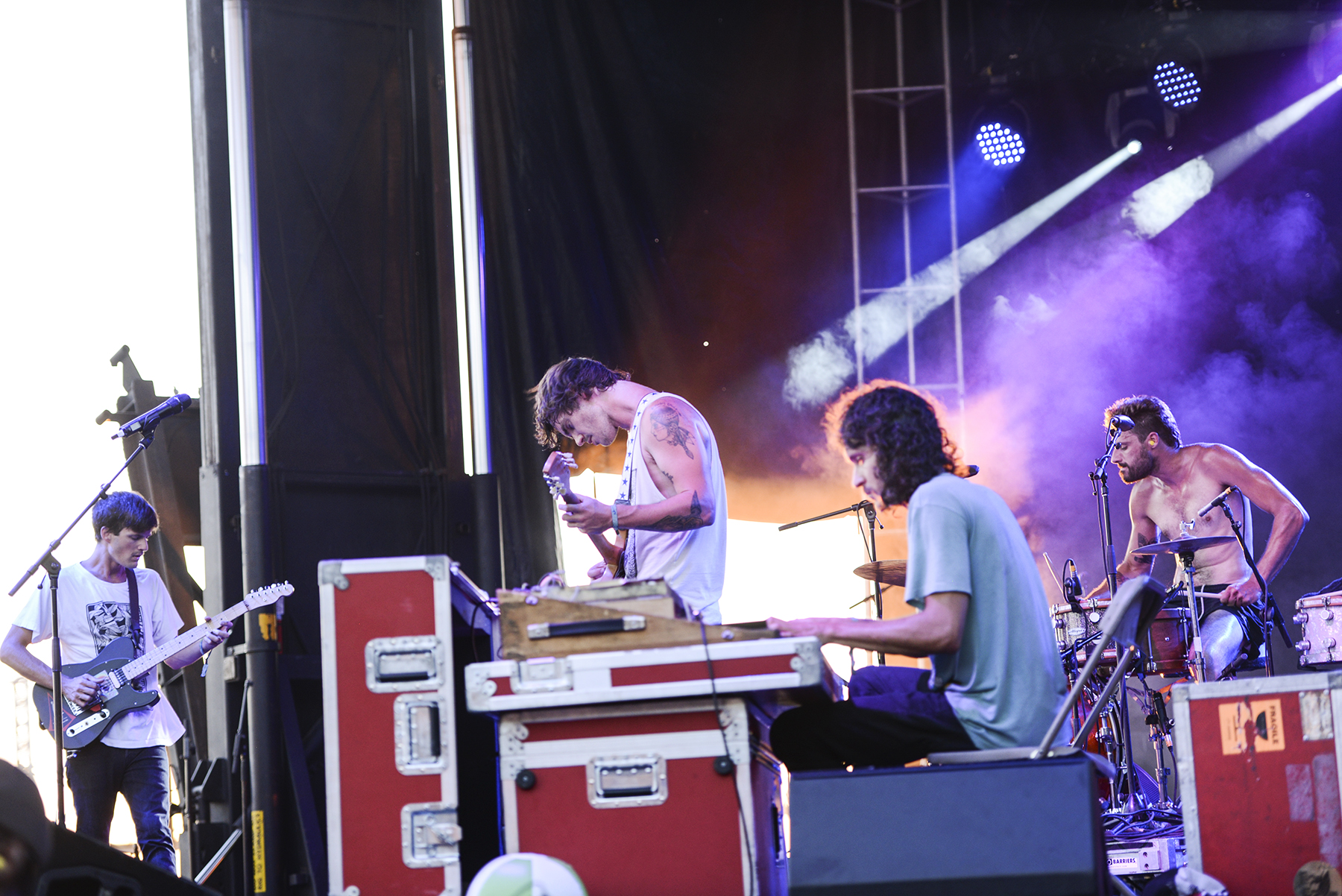 Partway into Speedy’s set, I accompanied our photographer to Washed Out, who were closing out the Ocean Stage right behind us. I was way too invested in Speedy to watch much, which is telling because they’d otherwise be a priority, but in the couple songs I caught, Ernest Greene and his skilled backing players sounded as calm, clean, and shimmering as ever. The “chillwave” scene has all but faded from popular consciousness, many of its defining bands either inactive or adopting a new approach, but forefathers Washed Out have largely held onto what they do well, and the strength of their songs has helped them stay fresh and relevant. The crowd was huge and I could barely see, but the piercing sound of thick, unabashedly poppy synth lines and dreamy, reverb-soaked harmonies lulled me into a comfortable, relaxed state, perfect to wind down the bustling weekend. [PO]