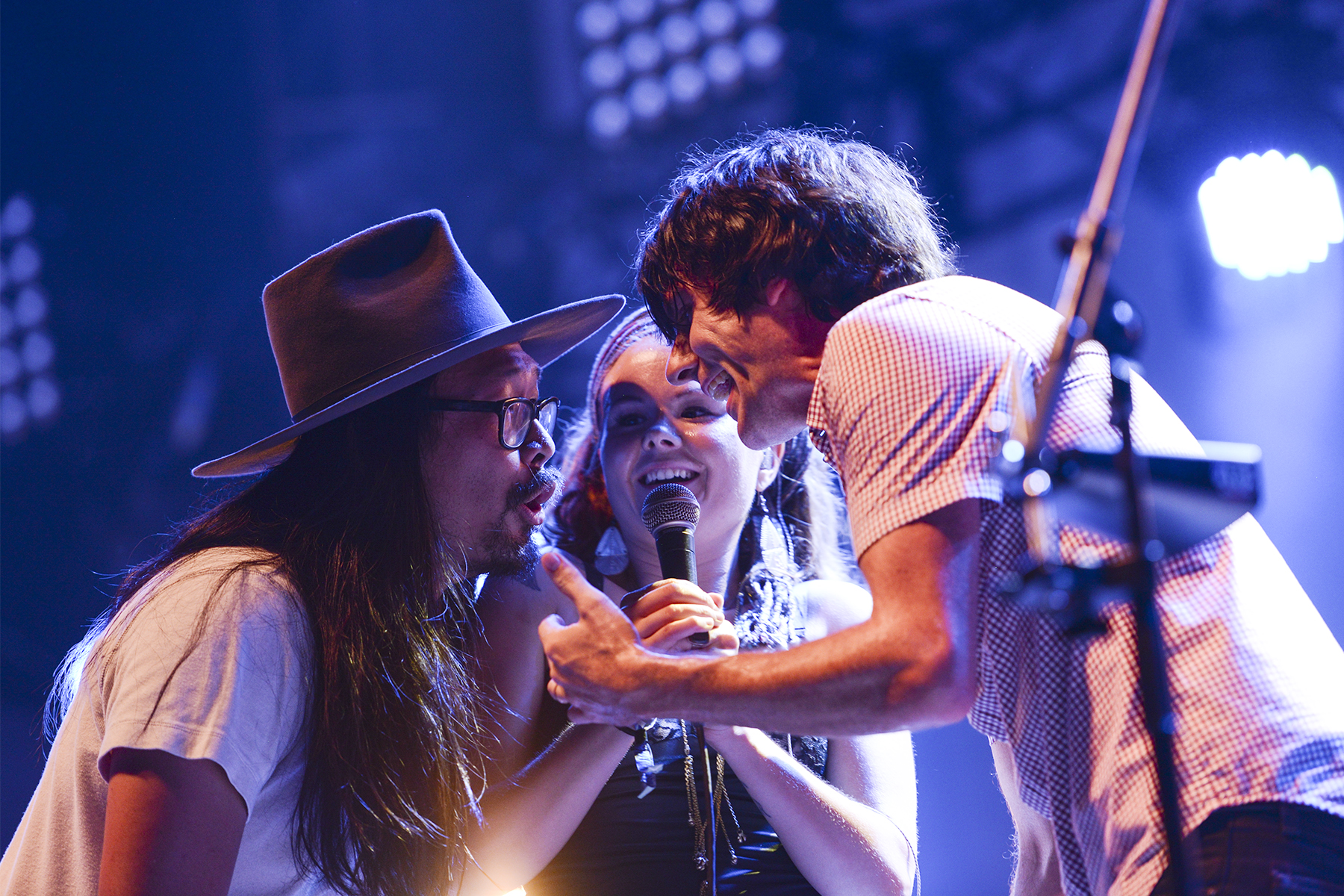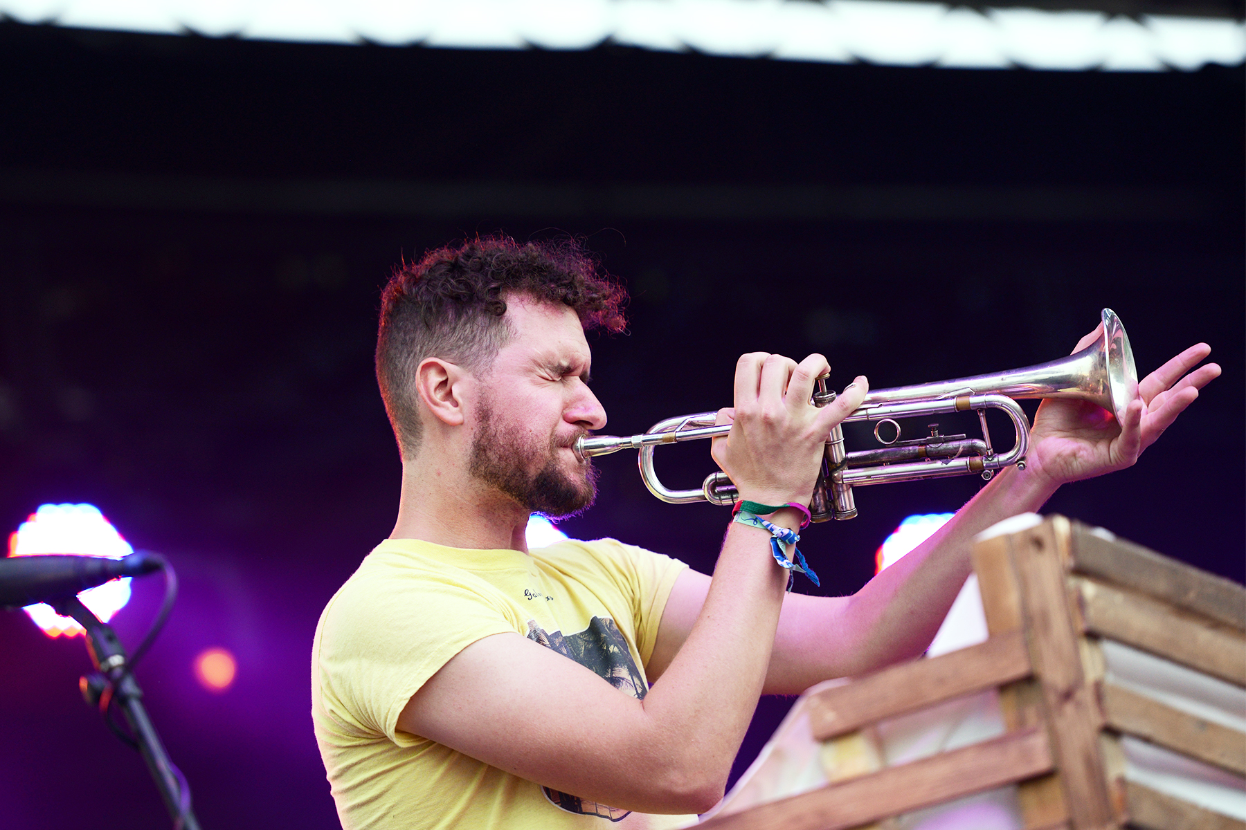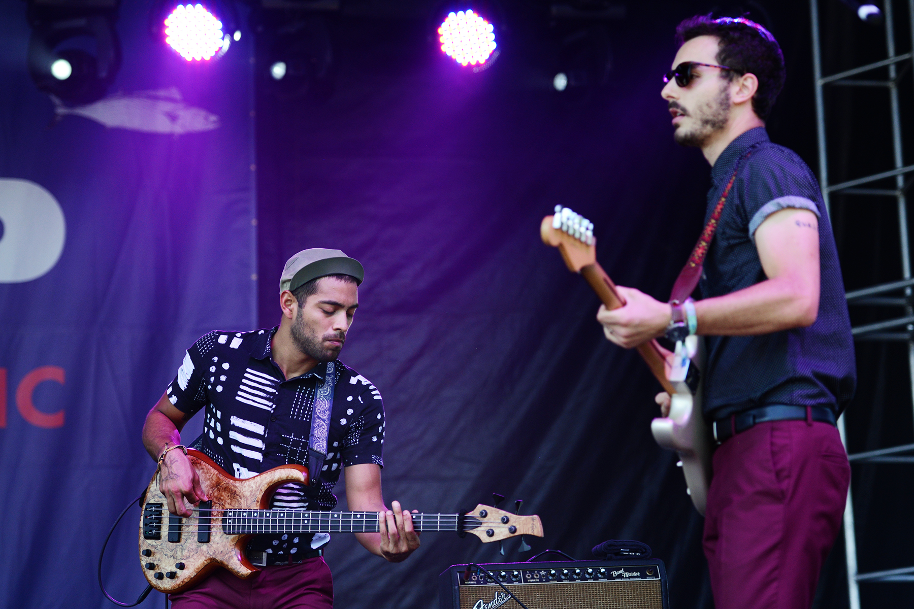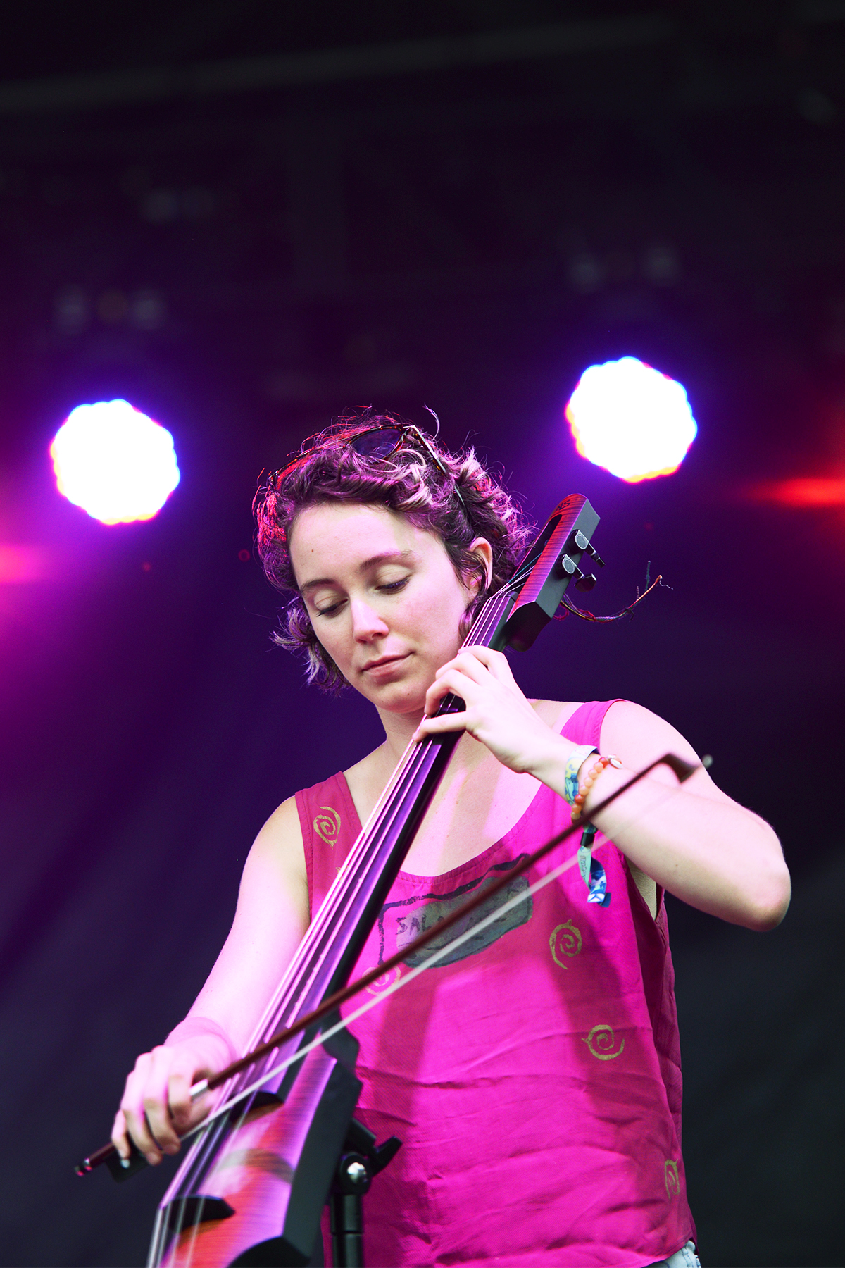 Evacuating like a pro, I took refuge at a nearby tequila bar, seizing the opportunity to catch up on some work, enjoy a few drinks, and escape from the summer heat. Though it cut through the day’s momentum, the timing made for a perfect break, and after a little over an hour (and, thankfully, no actual rain to muddy the fields), we were given the all-clear, returning to a shuffled, but no shortened, remaining schedule. While most show-goers seemed to be opting to return to Phosphorescent, or to stake their spot for big ticket performers Grouplove, I instead ventured back to the Port Stage to see Wild Child, a band who’ve long been on my must-see list since first happening upon their breezy, folky, pleasant songs a few years back. The chemistry of core duo Kelsey Wilson and Alexander Beggins is really something special, and the pair, along with the rest of their talented band, meticulously recreated their compositions with brass, strings, pianos, and percussion. From their art alone, it’s clear that Wild Child have a lot of personality, but they were even more fun in person, bantering and chatting with air of pleasantness and a great sense of humor and mischievousness. Later in the set, they brought out what looked like a t-shirt gun, which they explained that they had repurposed as a panty canon, and Wilson processed to to fire into the packed and enthusiastic crowd in hilarious fashion. A perfect festival band, Wild Child exceeded my already high expectations to delivery one of the best sets of the day. [PO]