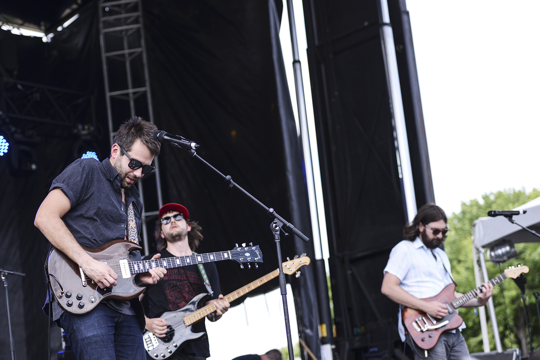 A morning of Quills Coffee, perusing Guestroom Records, and brunching at The Silver Dollar (did I mention how much I enjoy exploring Louisville?) had me running a little late yet again, and when it become clear I wouldn’t make it in in time for Anderson East, I had a nice cold drink and hid from the heat as long as possible, entering the fest just in time to see some of Heartless Bastards. The Ohio group came up alongside The Black Keys, and still harbor a musical similarity to their peers’ earlier efforts, blending blues rock with indie and garage sensibilities. I’d somehow never seem them play before, so I was looking forward to seeing a band I’ve often to heard so many good things about. Witty, poised, and polished, they sounded great and thoroughly entertained, while frontwoman Erika Wennerstrom seemed genuinely humbled by the enthusiastic early crowd. I confess that I don’t really know their songs that well, but the bit of their show I caught left making note to add them to my playlist. [PO]