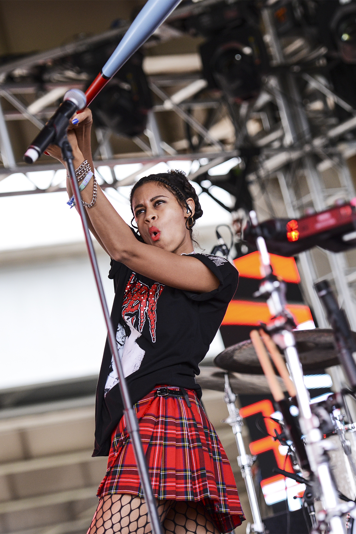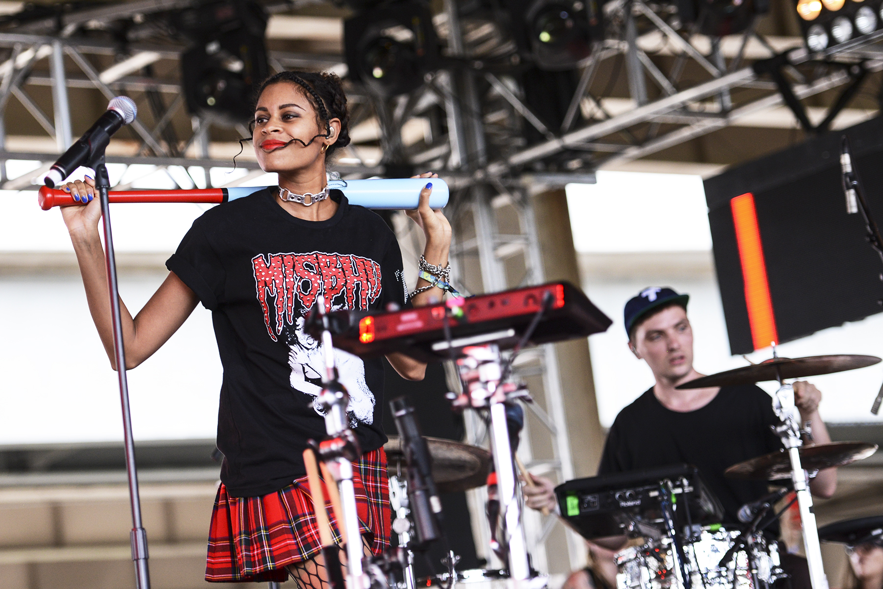 In researching Forecastle in advance, AlunaGeorge were one of those bands with a name that rang familiar, but I confess I didn’t really know them save for those Disclosure and Jack Ü features I’d half unknowingly heard in passing. Something about their snythpop infused, r&b primed EDM sound really sucked me in though, and their relative lack of scheduling conflicts landed them on my Sunday schedule. I’m SO happy I gave them a shot, because the British duo were perhaps my favorite discovery of the weekend, and the first in a string of unbelievable performances in the festival’s home stretch. Brandishing a baseball bat and looking decidedly punk, singer Aluna Francis captivated the whole crowd from the moment she took the stage, oozing confidence and charisma while bandmate George Reid held down the drums and thumping samples. Remarking it was not just their first time at Forecastle, but first time in Louisville altogether, the group possessed a star power usually reserved for much bigger acts, clearly making a lasting impression on the curious audience. More than a fad, I believe AlunaGeorge’s sound has the potential to transcend its scene, and given their magnetic live show, they deserve to be a household name. Though I’m not sure I could name a single song they played, I couldn’t look away, basking in the energy and momentum of their wonderful set. [PO]
