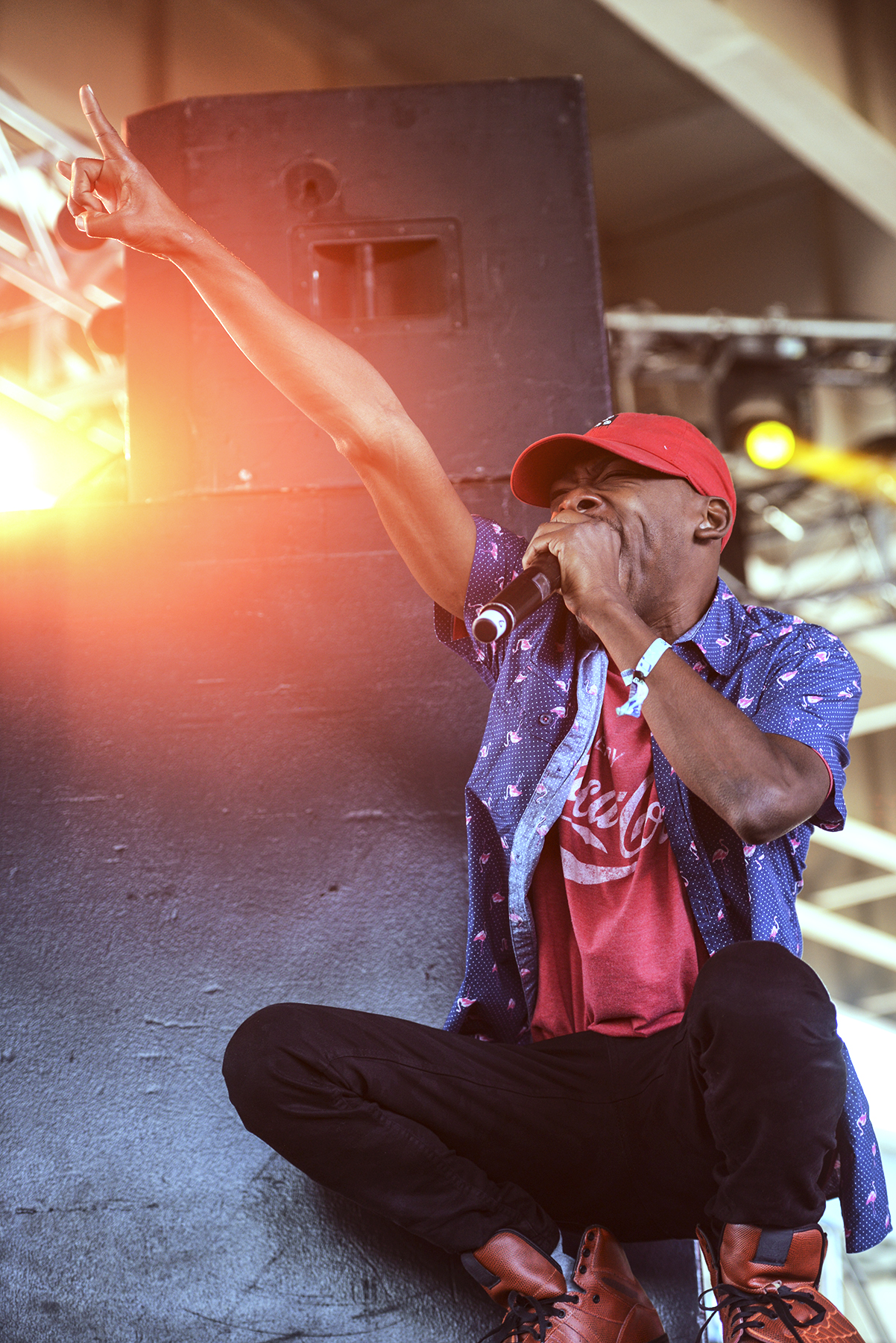 One of my personal worst scheduling conflicts of the whole weekend was Danny Brown against Andrew McMahon, two artists who couldn’t be more opposite, but who I love immensely. In prior years, I’ve rarely found myself prioritizing anyone on the Ocean Stage, Forecastle’s more EDM and hip hop-skewing spot nestled under the highway overpass, but this year’s offerings were especially strong, and drew me in constantly throughout the weekend. After some food, bourbon, and shade, I found my second wind, and grabbed a spot under the bridge, planning to squeeze in as much of Brown as possible before bolting to McMahon. The first in what seemed to be a chain of delays on the smaller stages throughout the afternoon, Danny was noticeably late coming out, and when his set did start, it started with a DJ and hype man before the MC finally made his entrance. Magnetic, hyperactive, and wild as ever, Brown went hard out of the gate, his shrill and unorthodox delivery juxtaposed with booming bass and beats forced everyone to let loose. More than any other performance of the weekend, this was the hardest one to pry myself away from early, but the lure and nostalgia of Andrew McMahon was calling, and only a couple songs in I had to move on. [PO]