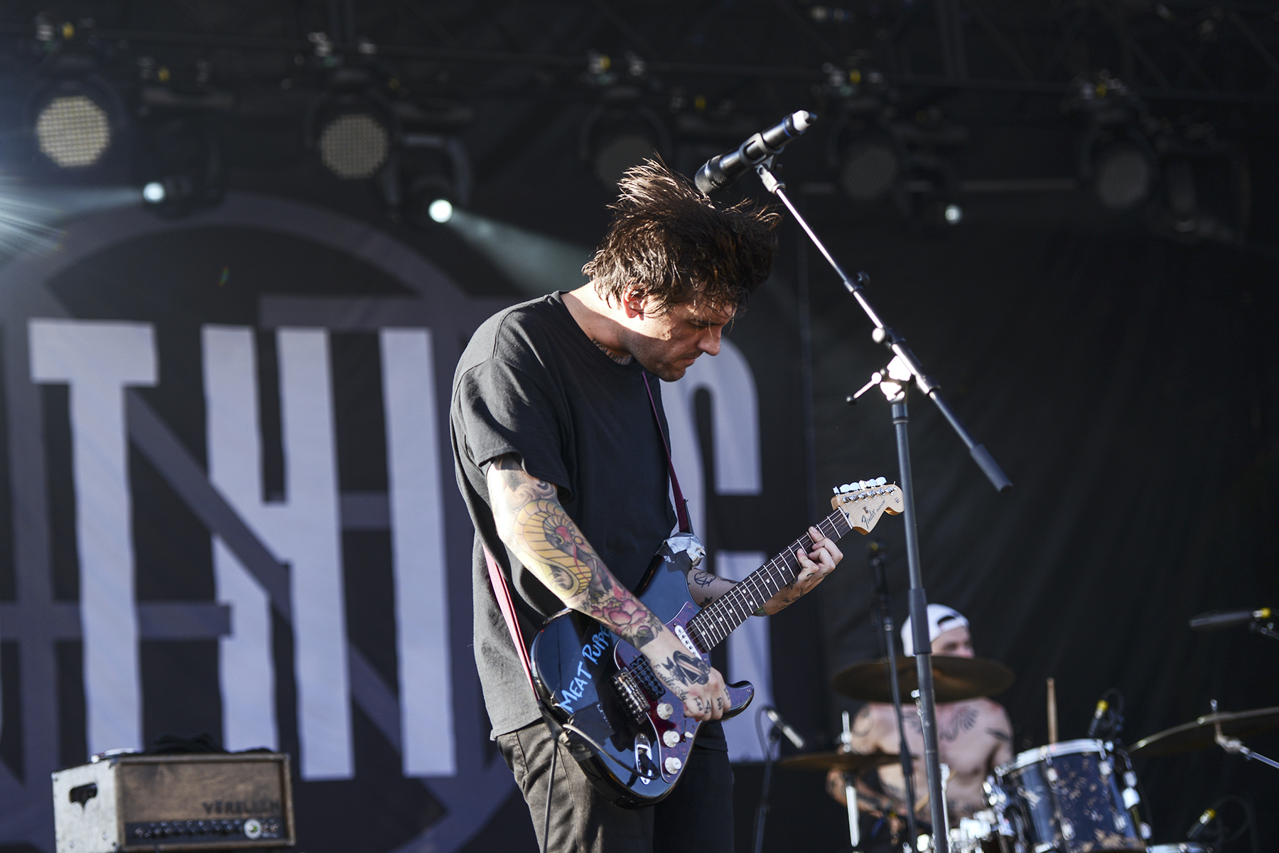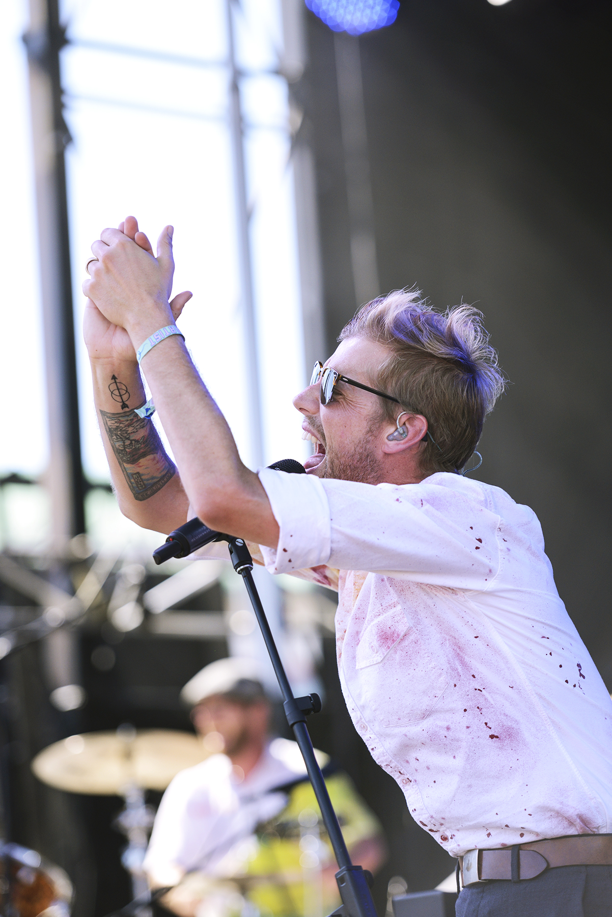 Nothing were scheduled to begin 15 minutes before Local Natives, but after 10 minutes of watching them very slowly mess with guitars, hobble around stage, check levels, and attempt to hang a banner with no regard to punctuality (set times are not punk rock), I decided to bail and come back later. It was at least 20 or 30 minutes, close to what should have been the end of their set, and I got a sense that they were only just starting when I returned. Frontman Domenic Palermo soon provided an explanation, mentioning, between songs, that his bandmates had all taken shrooms and he was wasted (he might have been joking, but given their demeanor, I’d buy it). If they truly were high, them I’m even more impressed, since, despite some reserve and sluggishness, they absolutely ripped, delivering one of the loudest, rawest, most visceral performances I’ve ever seen at Forecastle. Nearly taking out a stage hand, Palermo leapt into the audience at one point, literally standing on the crowd while performing his deeply personal and intense take on shoegaze-y noise rock. I saw Nothing for the first time earlier this year at Shaky Knees, and while that set might have been somewhat more technically proficient, this one had more heart and lower inhibitions. The audience wasn’t huge (this band was definitely an oddball choice for this particular festival), but those who got it seemed really connected and moved by Nothing’s thick, resonate, genre bending style, sad and intense and beautiful all at the same time. The more time I spend with this band, but more invested I get, and I’m seriously itching to see them play a headlining show maybe more than other performer I’ve seen this year. [PO]
