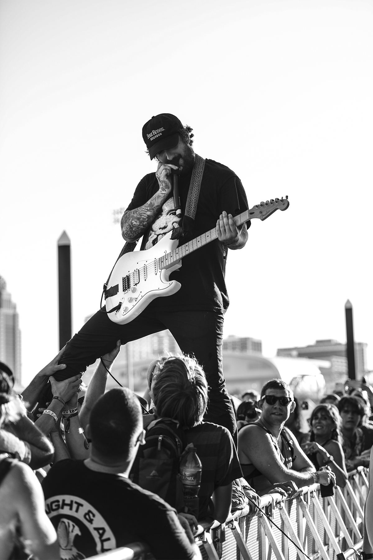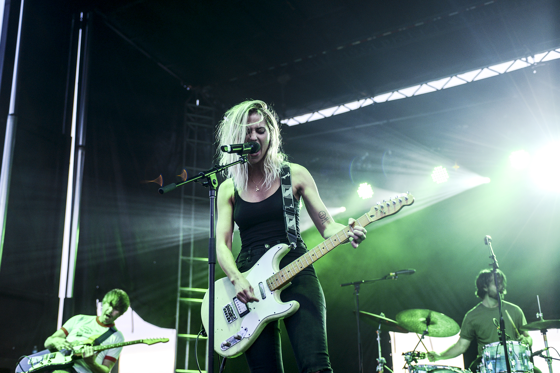 I’ve watched Bully so many times this year alone that I’ve nearly lost count, and, yet I never get tired of their simply ferocious, inspired, and commanding live performance style, which has benefited greatly from their near constant touring over the past year. We ranked them the #1 must-see band on Friday, and, sure, we’re biased, but Bully are, objectively, one of the freshest, best, and most relevant rock bands to emerge in recent memory, fiercely DIY and single-handedly poised to help user in a whole new crop of grunge-pop, taking a cue from the rawer, more organic, and punk inspired sound of the early ‘90s. The sun was setting as Alicia Bognanno and co. launched into a show-stealing set, chock full of favorites from their debut LP Feels Like, a new tune, and some impossibly punk covers. Commenting that their set time was longer than any show they’d played all tour, the band seemingly wore out their arsenal of brisk material, keeping it loud and heavy while a crowd of fans and curious passersby stood mesmerized. Bognanno, small in stature but huge in stage presence, is one of my favorite singers in rock today, and every single show she reinforces that opinion with her cool demeanor, bombastic delivery, and unpredictability. At this point I feel like I’ve said everything I can about how incredible Bully are, and their Forecastle set only stood to reinforce that, mirroring their badass outing at Bonnaroo a month prior. Hands down one of the best things I saw not only all day, but all weekend, I’m definitely making a point to cherish all of these back to back chances to see Bully at such an exciting moment in their career, before they take a well-deserved breather to craft a new album and/or become so in-demand that their local appearances slow down. If you’ve been somehow living under a rock: SEE. THIS. BAND. IMMEDIATELY! [PO]