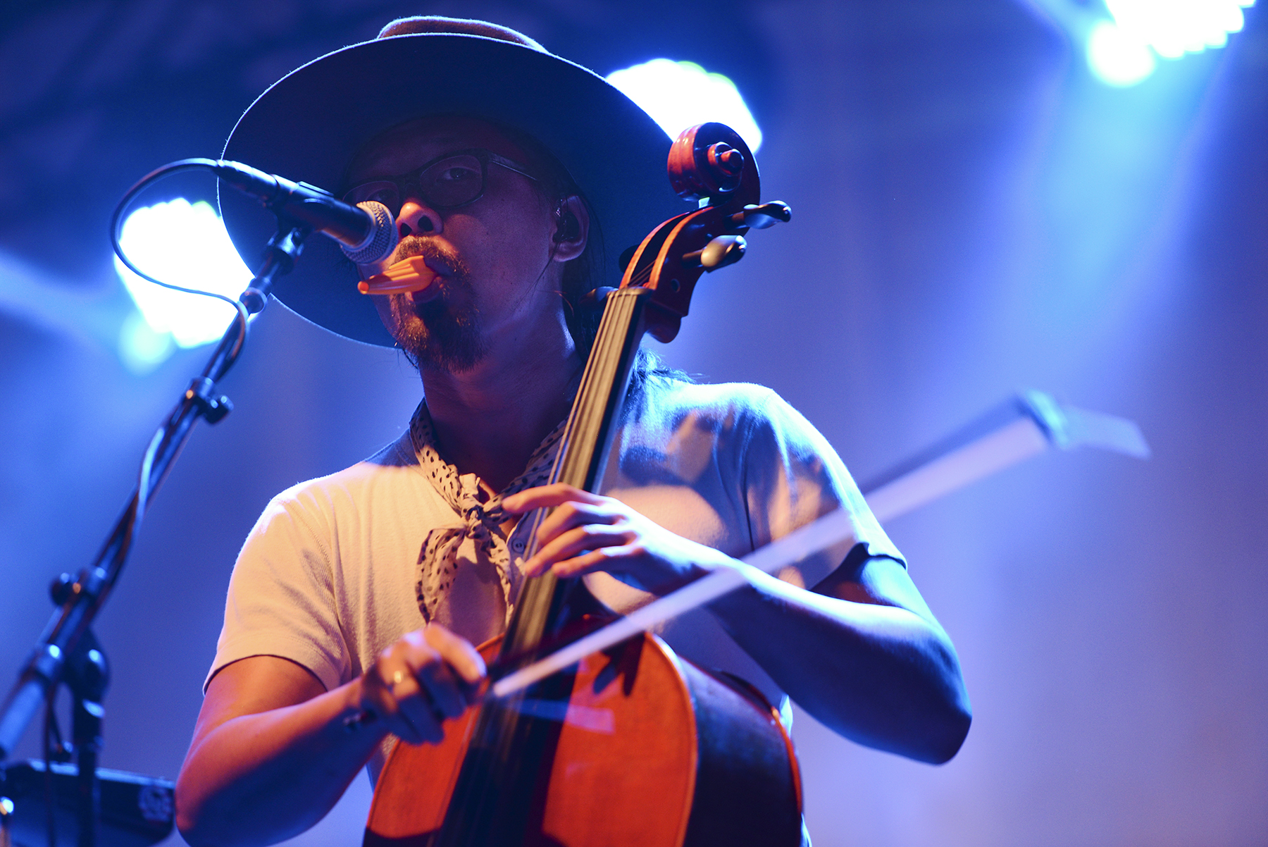 Cutting Shadowboxers a little short to run to the nearby Mast Stage, I feel like it’s basically my obligation as a festival-goer to see Shakey Graves whenever I can. At this point, I’ve watched him grow from his genuinely skillful but somewhat novelty one man band setup to rising indie Americana star to certifiable festival staple, now rounded out with some backing players, and throughout it all he’s still managed to keep it fresh and interesting. I confess that I don’t often listen to his records, but the mere raw energy and skillful delivery of his live shows draws me in. Speaking out a bit about all of the tragedy and negativity plaguing the world in recent times, Shakey’s optimism and uplifting style seemed especially cathartic this time around. It takes a tremendous amount of artistry for one man, a guitar, and no gimmicks to resonate as strong as he’s learned how to, and no matter how many times I get to watch him play, I’ll never leave anything short of impressed at a Shakey Graves show. [PO]