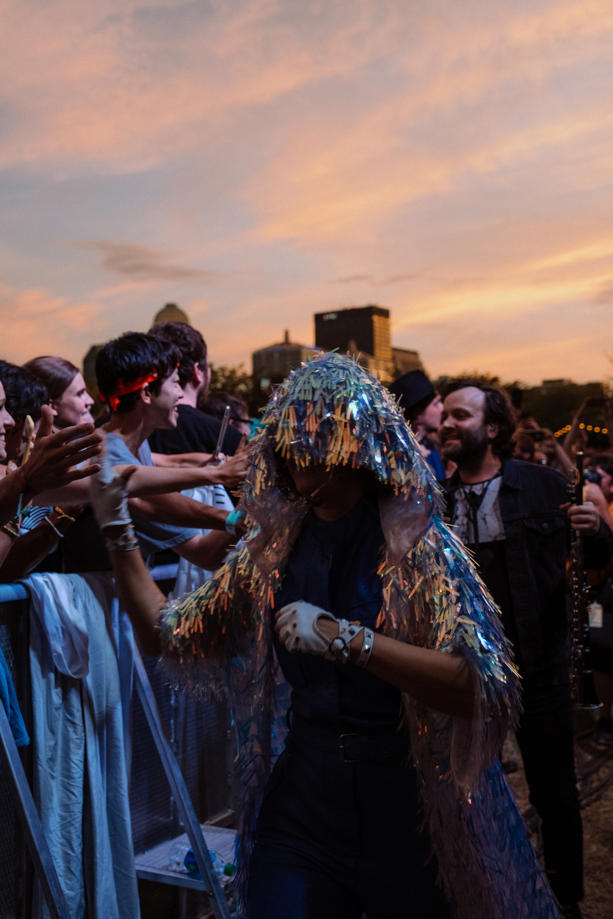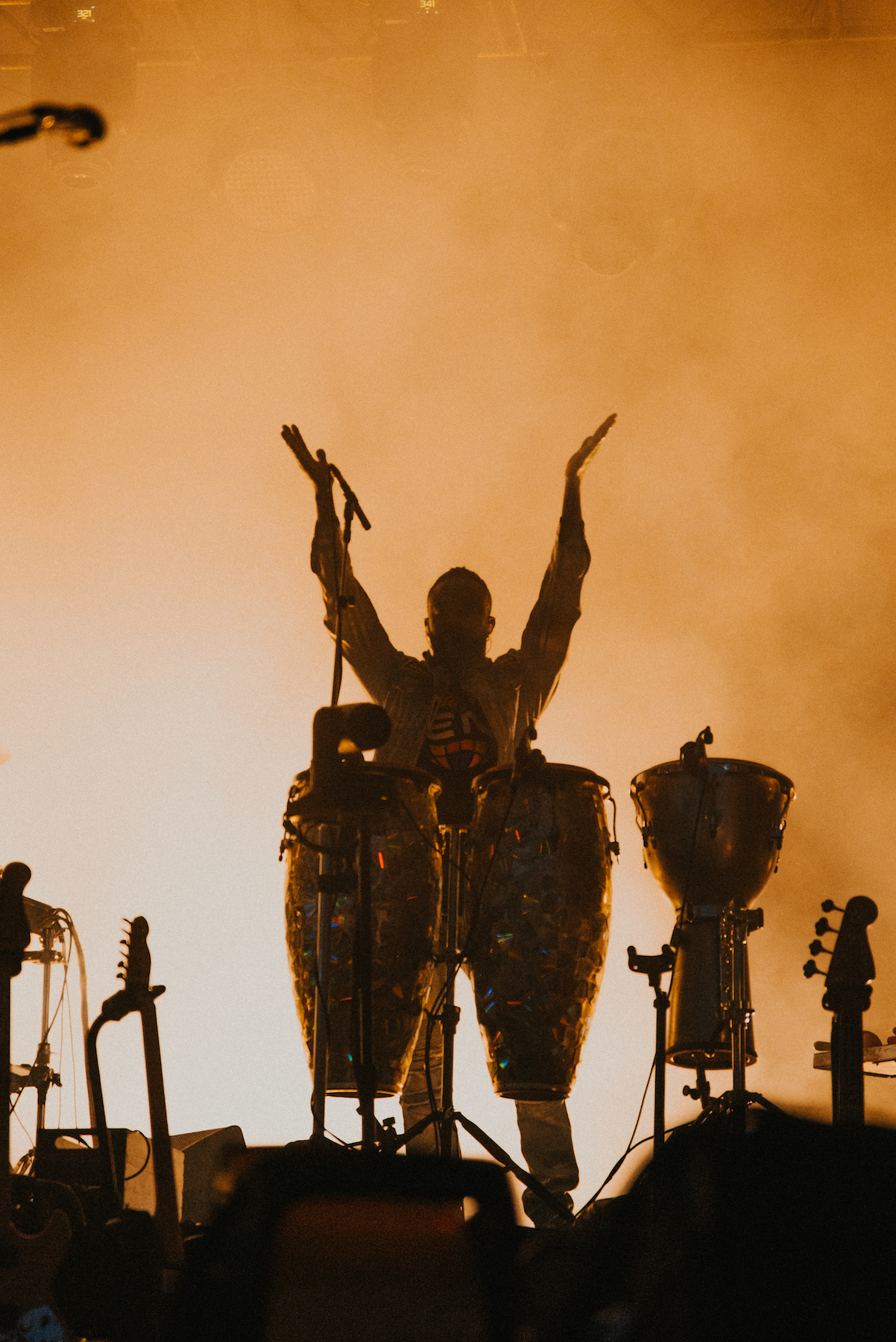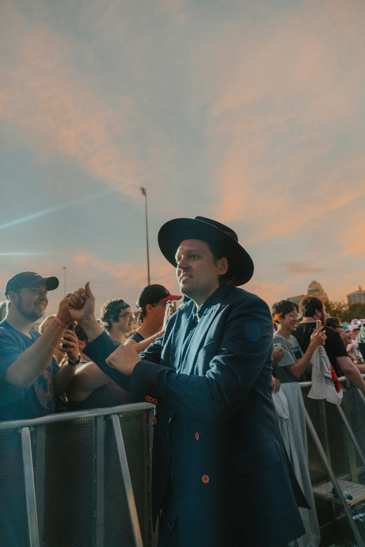 Entering from the crowd and opening with the title track to Everything Now, their set was off to the races in a brilliant, high energy rush. What followed was a nonstop barrage of light and sound, with Will Butler at one point somehow outdoing his usual antics on “Rebelion (Lies)”, climbing the scaffolding like a mid ’90s Eddie Veddar, still bashing away at this drum and egging the audience on, daring us to get on his level. Even the moodier, vibier songs like “Here Comes the Night Time,” “Half Light II,” and “The Suburbs” had an encompassing energy to them that permeated the audience. For a band that are not your traditional Top 40 superstars, the set felt like a parade of hits, with each song being somebody’s favorite. The effect was non-stop euphoria that ping ponged through the crowd, with people hugging, laughing, sometimes crying (pleads fifth*) and at one point, forming a conga line. For all their grandeur, one of my favorite moments of the set was during “The Suburbs” when Win Butler sang about an overpass, only to look up and see the interstate snaking through the park and comment, “Oh hey, there is an actual overpass.”