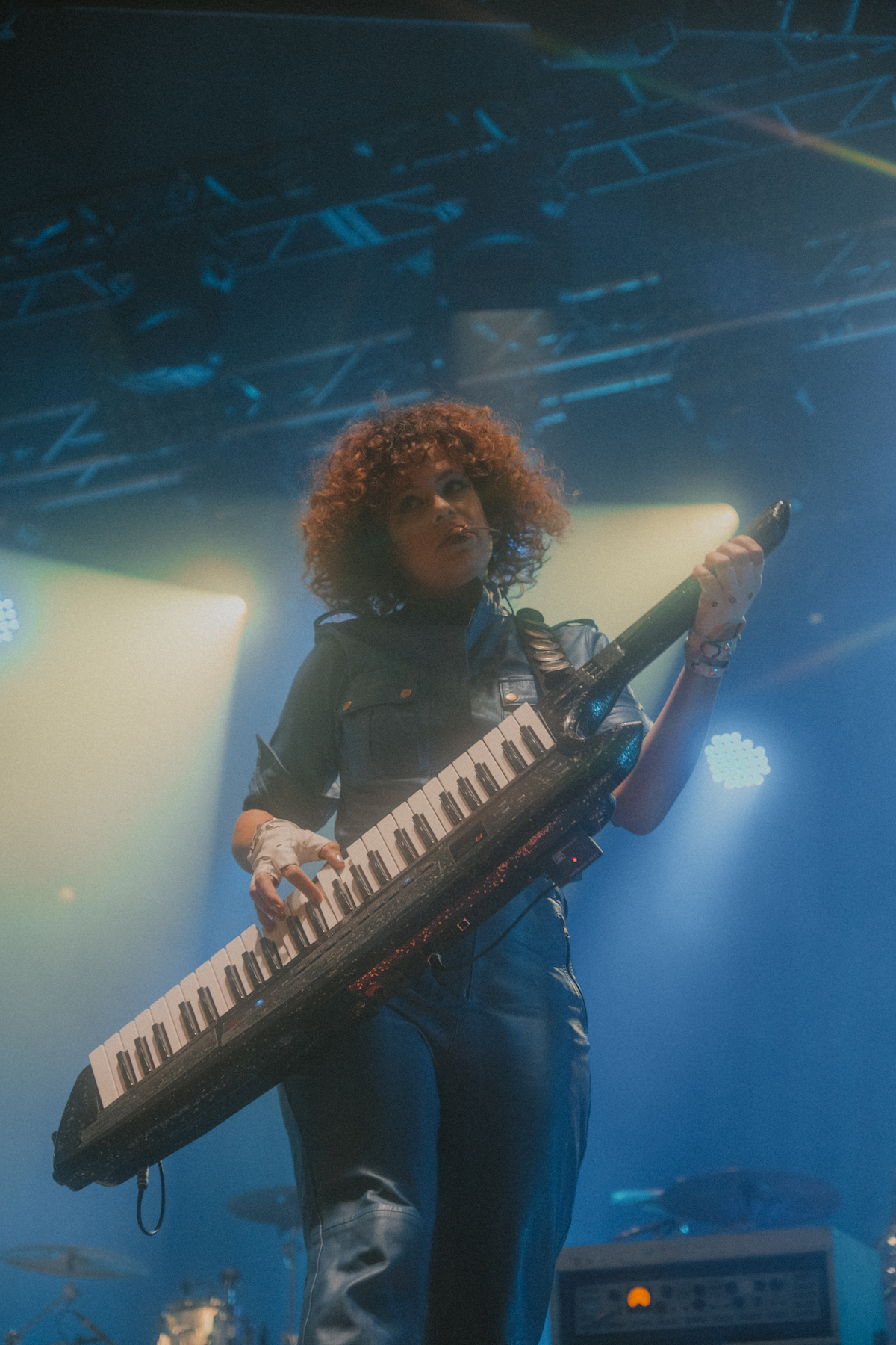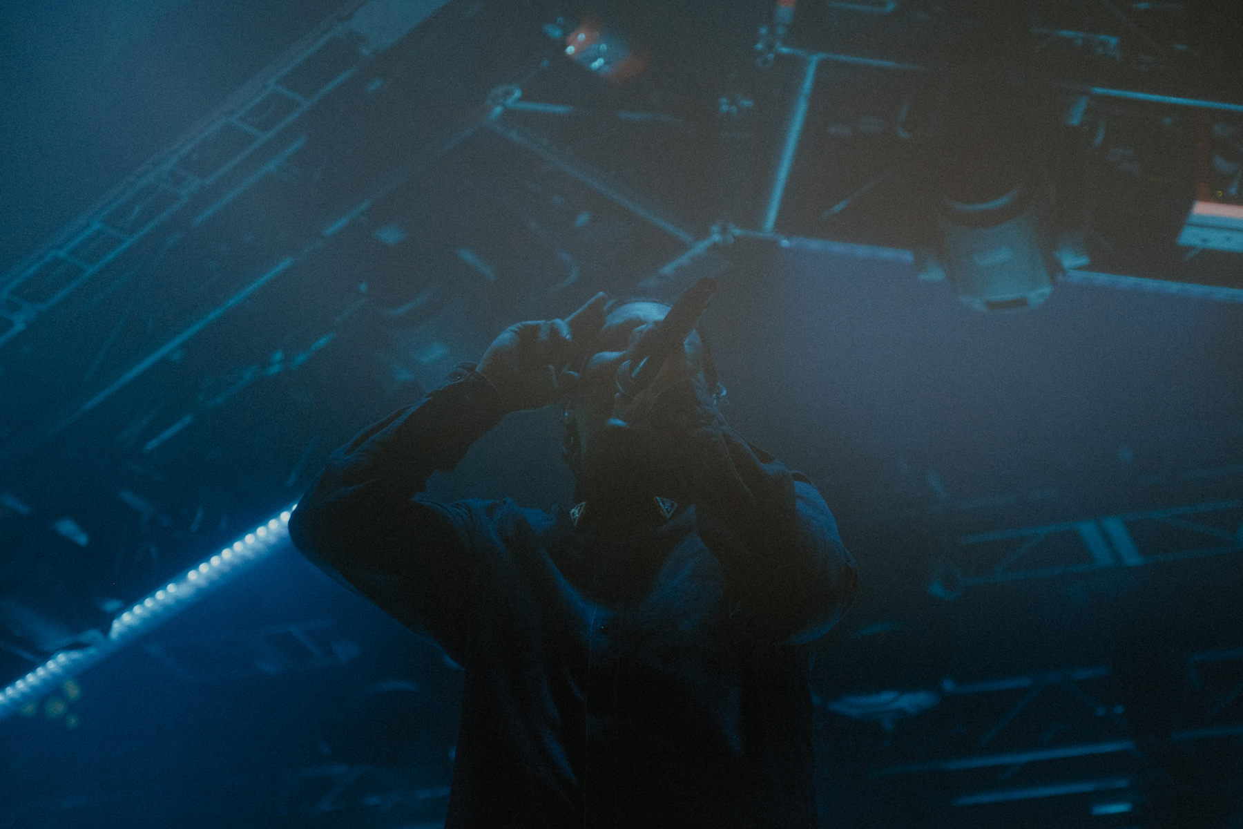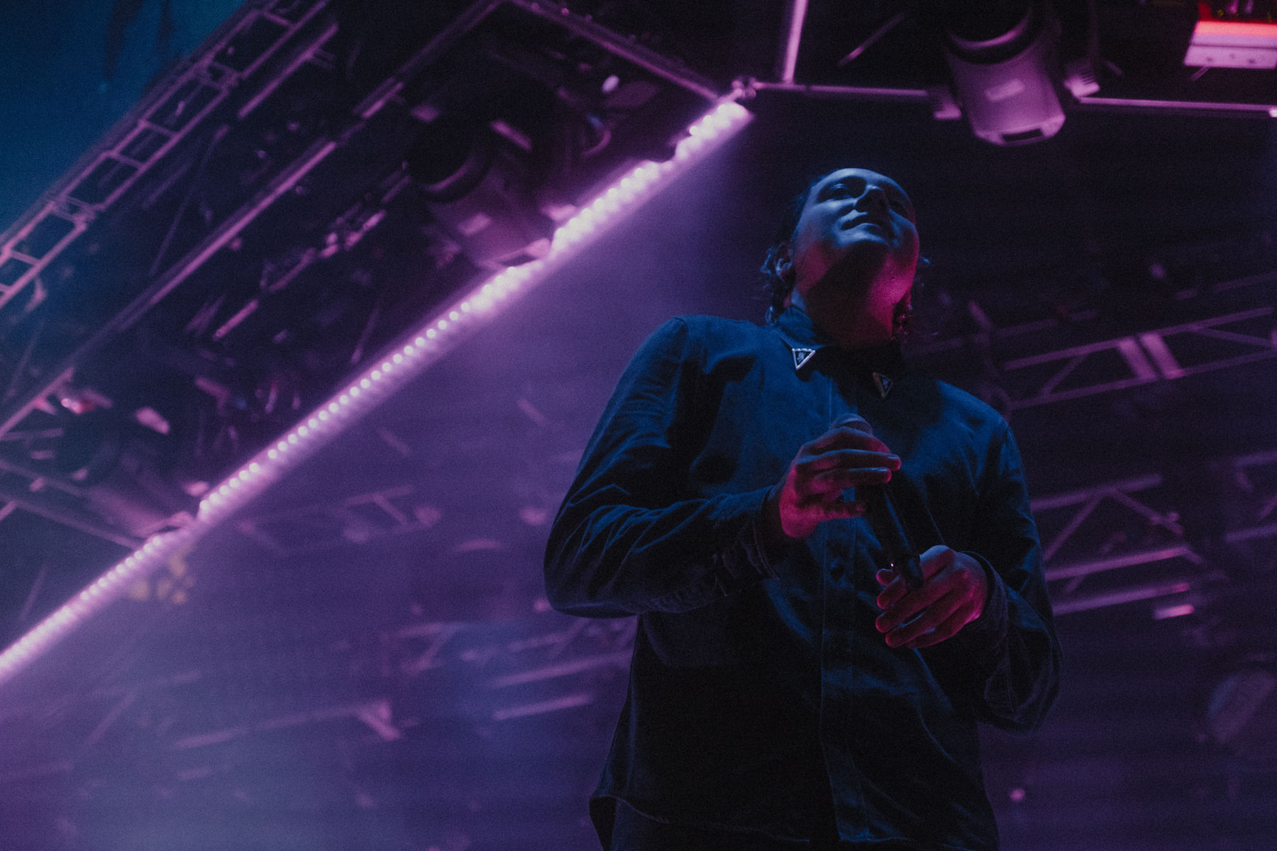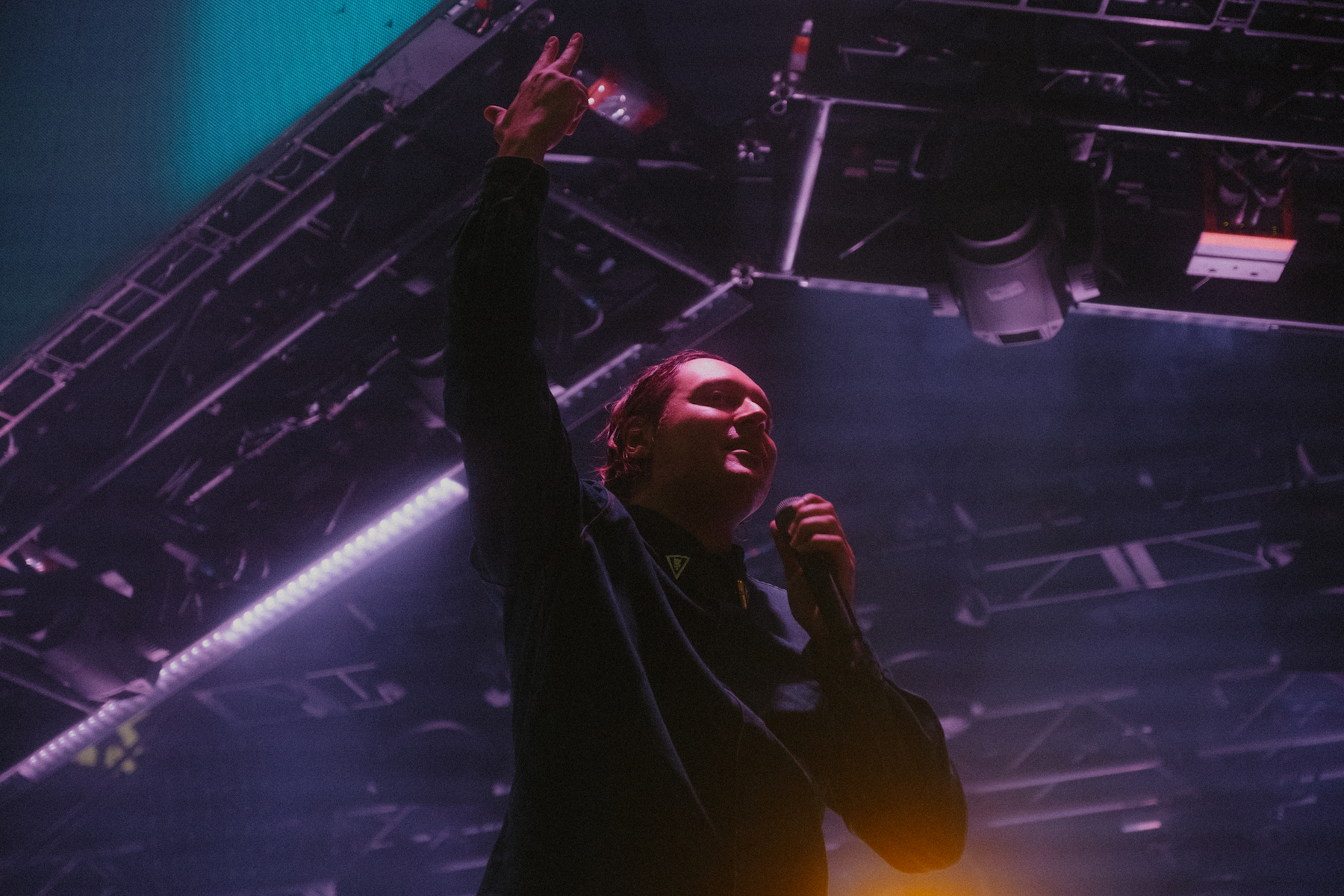 Rolling onto stage looking super fly, backed by a minimalist band of a drummer and multi-instrumentalist, Saint, a relative unknown, who only recently released her debut EP, 17 HERO, already has the confidence and swagger of a more accomplished star. Clearly, she’s already finding an audience, as some passionate and young fans were piled into the front, singing along with bangers like “Glass House,” “YOU,” “Just Friends,” and “New Regime.” Inserting personal anecdotes between and even letting slip that her debut LP is imminent, Morgan is both astoundingly real and raw, and also a fantastic and energizing entertainer, able to work the stage and deliver her songs with spellbinding focus.