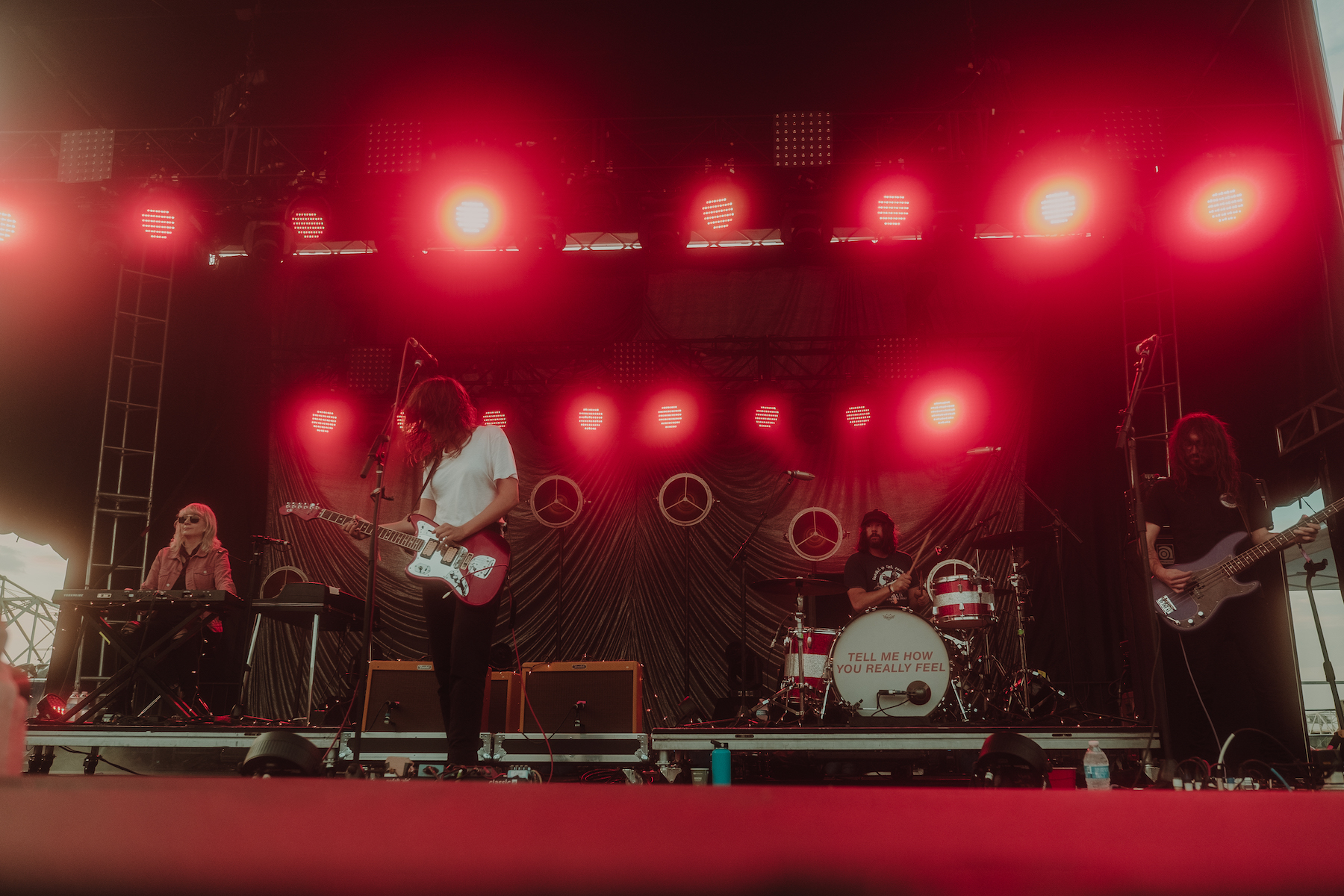 Rallying a final burst of energy for the festival’s final day, and refreshed from an excellent brunch, we braved the internment rain, and arrived just in time to see the tail end of Colony House. Watching from a distance, hanging under the overpass to keep out of the rain and looming hot sun, it was cool to see the Nashville group on the fest’s biggest stage, sounding more honed and anthemic than ever with huge jams like “Silhouettes.” On the way into the grounds, I also walked by the Boom Stage where another local favorite, Ron Gallo, was crushing, and immediately regretted not grabbing an earlier breakfast. [PO]