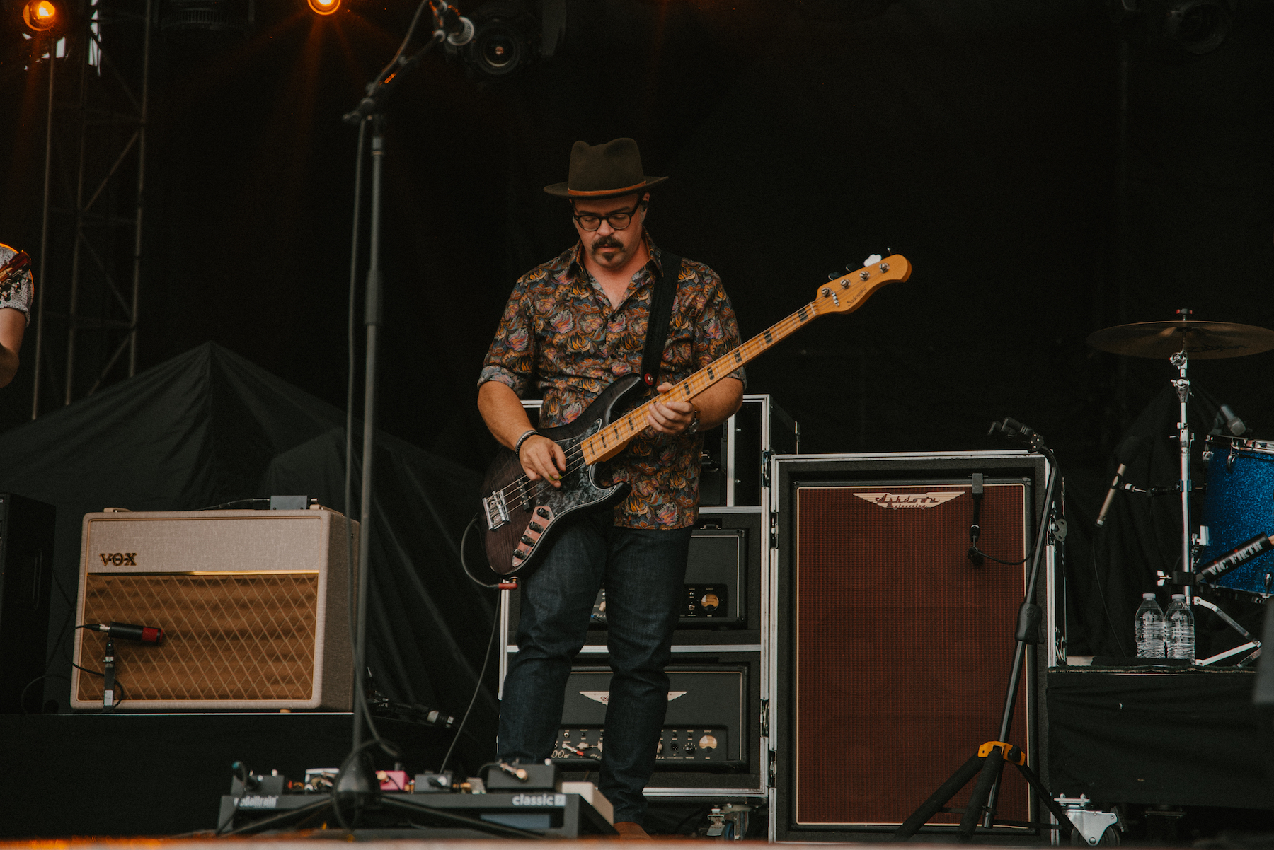 Hiss Golden Messenger was my first “must-see” band of the weekend. I’ve been a fan of their music for quite a few years now, but it seems like every time they have played Nashville, which is quite frequent, I have had other commitments. In an attempt to find refuge from the midday heat, I settled in under the shade of the overpass, near the air-conditioned medical tent, which turned out to be one of the finds of the weekend. The temperature there was 10 degrees cooler than the rest of the festival, but the sound was captured by the surrounding structures and was sonically impeccable. Finally seeing the renowned North Carolina alt-country standouts was an amazing experience.