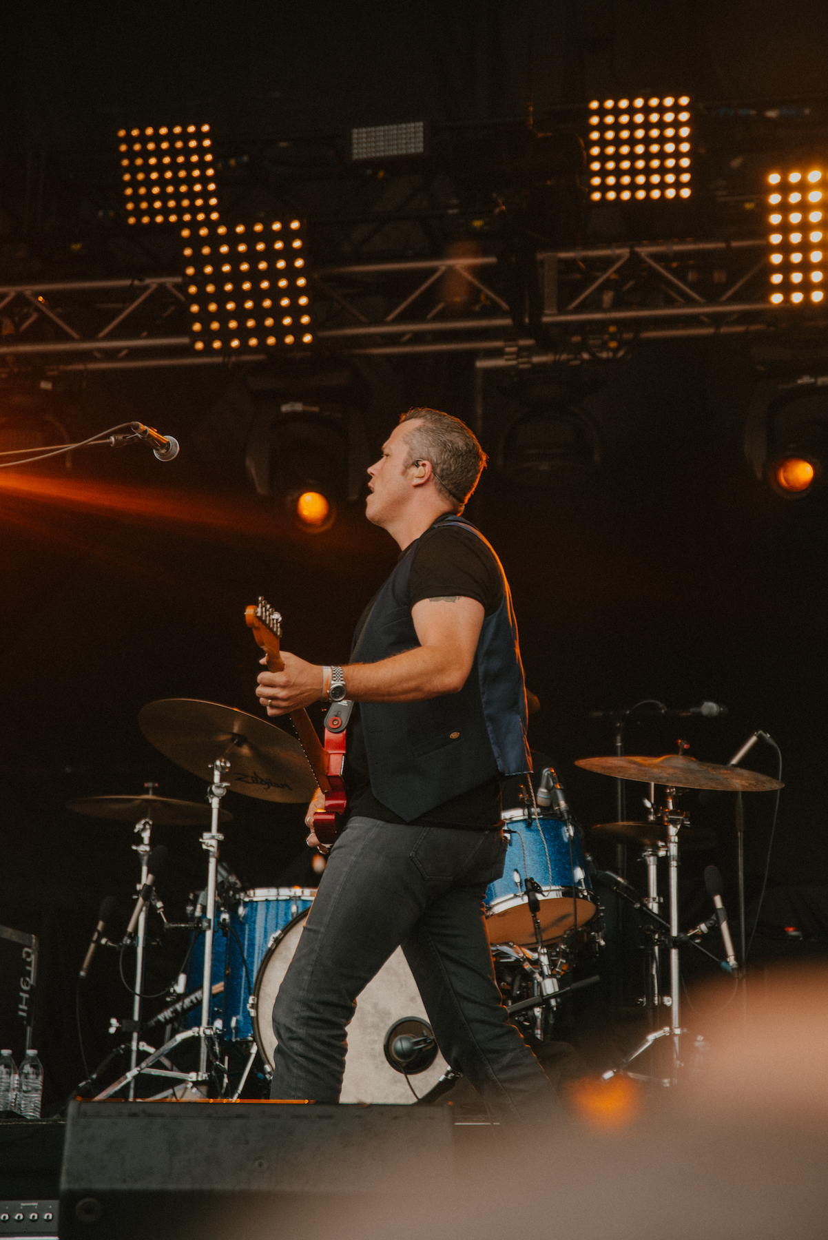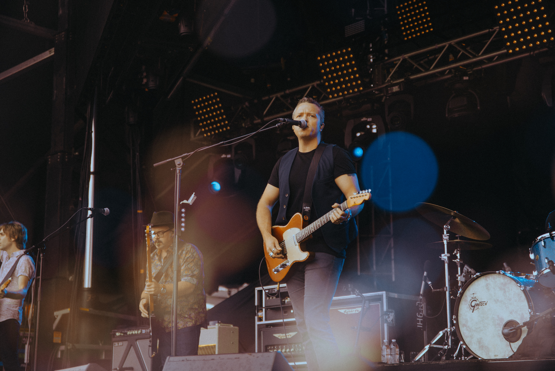 Rain is kind of a Forecastle tradition (though, thankfully, we’ve made it two years in a row without evacuating the grounds); it is, after all, on a waterfront. This year managed to stay mostly dry, but all Sunday, dark clouds were looming, and by late afternoon, we finally got hit by an intense, albeit brief, downpour. Taking refuge for awhile in the media tent, I was relieved that it passed just in time for Jason Isbell, and booked it over to the main stage to catch the Nashville transplant and his stellar band, The 400 Unit.