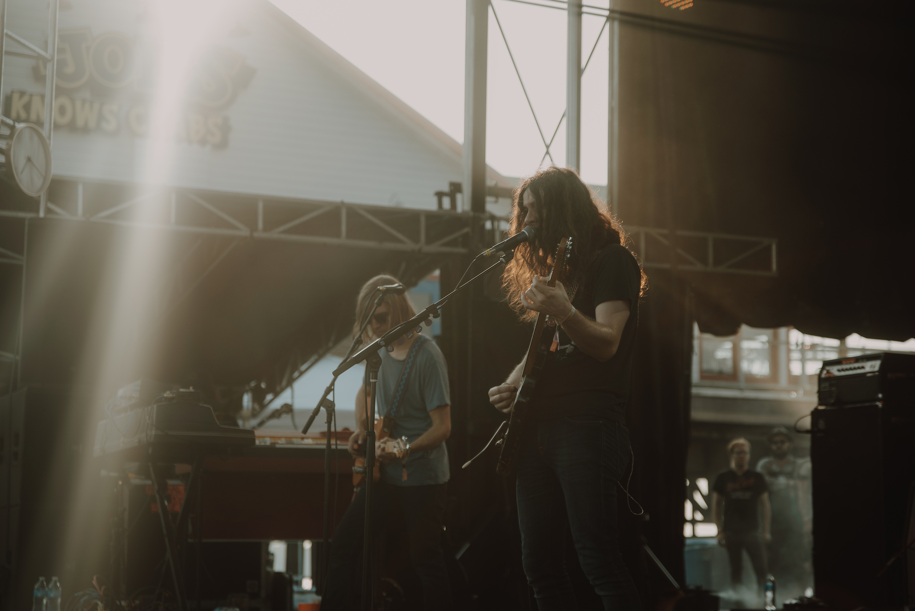 After wandering around the grounds a bit to take in the ambience and get a feel for the slightly altered setup (the former home of the Port Stage, which shrunk and moved closer to the festival’s west entrance, had transformed into a Bonnaroo-esque area with carnival rides, decorations, and an even more involved version of the DJ-centric Party Cove), and, already, needing to duck into some shade to cool off and hydrate, I turned my attention to Memphis country punk mainstays Lucero.