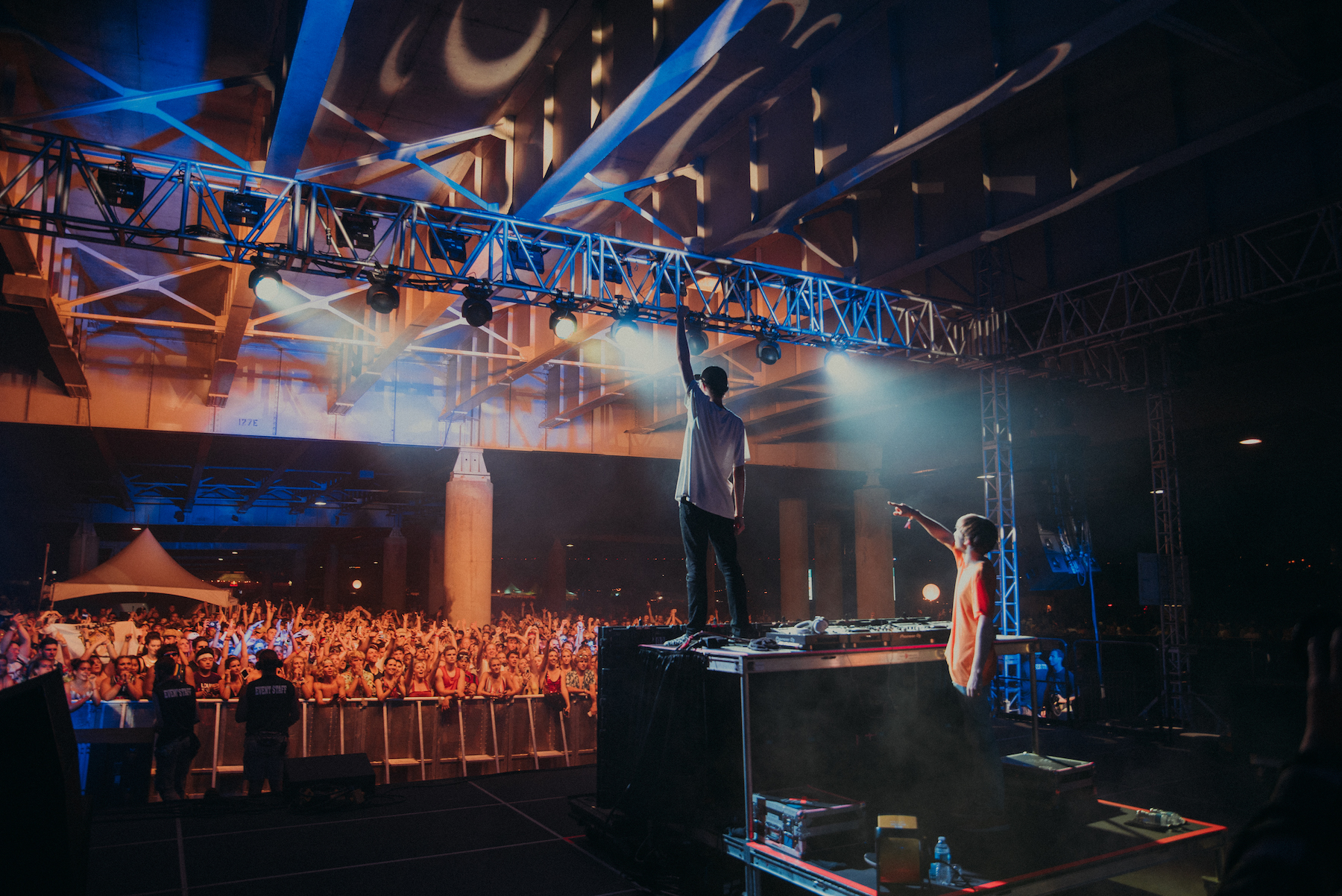 I can dig on some electronic music, but it’s not a scene I really follow or consider myself especially knowledgable of. Still, at our photographer’s suggestion, I wandered over to the Ocean Stage to see a bit of Louis the Child’s closing set between Mast Stage acts. With their huge and engaging light show, double DJ platform, and supremely turnt up audience, it was definitely an impressive spectacle. The duo worked the stage, dove into the crowd, and got everyone dancing, providing the much-needed jolt of energy I needed between two much more subdued rock sets (I’m told their after party on a boat later in the evening was even more wild). [PO]