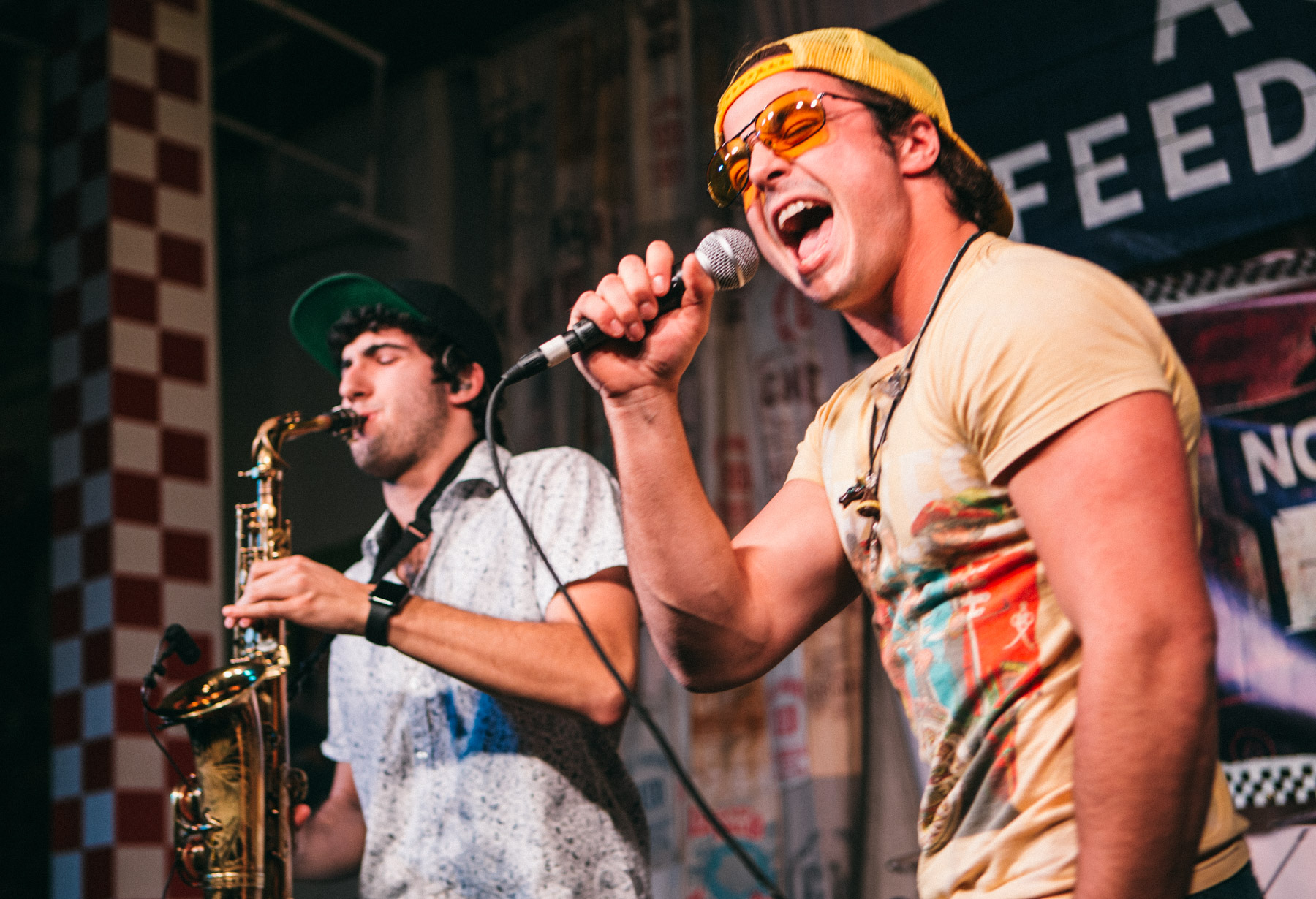 Later it was some classic Nickelodeon inspired medley, including part of the All That theme song (’90s kids know what I’m talking about). The second lead singer would come in when the song dictated, and he was all vocal range, hitting the high notes and laying down pure r&b vocal. His singing on the cover of Prince’s “Kiss” was spot on, and the back and forth between him and Mr. B on a “Rappers Delight” interpretation was also kick ass. On another song, they were pure hard rock, and there wasn’t a single genre they sampled that was lacking in quality. Truly amazing to see live, and well worth your time. We look forward to catching them again soon! While you’re here, be sure to check out the spread from contributing photographer Amber J. Davis below, and join us on Valentines Day, Feb. 14 for live music from MYZICA and Chaos Emeralds, plus another live DJ set!