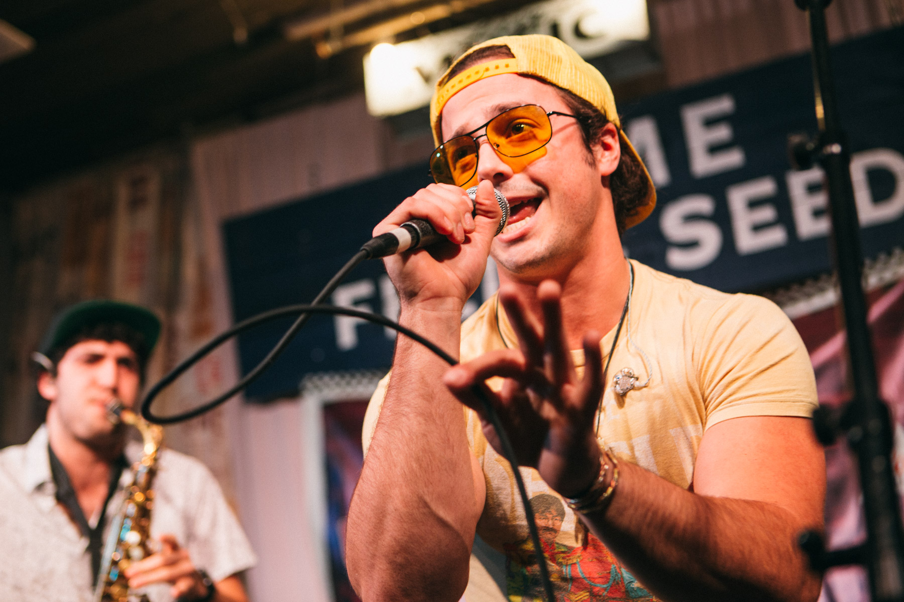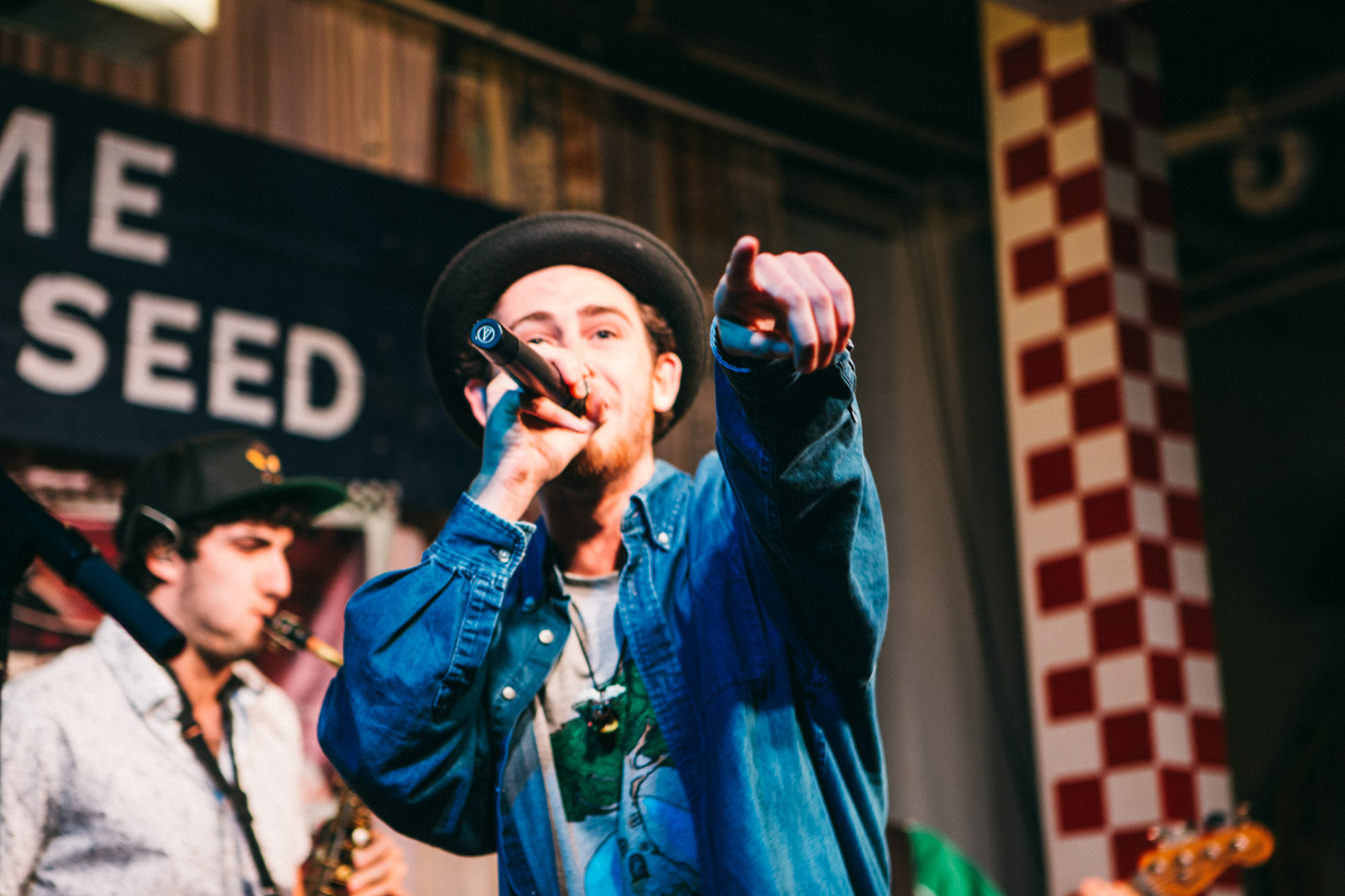 It’s safe to the say the collective we had closing out our first event of 2017, Mr. B & The Tribal Hoose, are one of the most supremely unique groups of musicians we’ve ever hosted. Part Beastie Boys, part G. Love and Special Sauce, with a little r&b and rock ‘n’ roll mixed in; this is a group who truly break all our preconceived notions about genre. After a little soundcheck and freestyle warm up, they were funky to start, especially on the bass. Frontman and rapper Blake Mankin (aka Mr. B) has charisma to spare, and by the second verse he’d already climbed down off the stage and was working the crowd, while spitting rhymes into his wireless mic. While Mr. B danced with some fans and kept the crowd hyped, the backing band broke into a tasty version of Outkast “Spottieottiedopaliscious”, including sax, and the crowd participation ready “damn, damn, damns.”