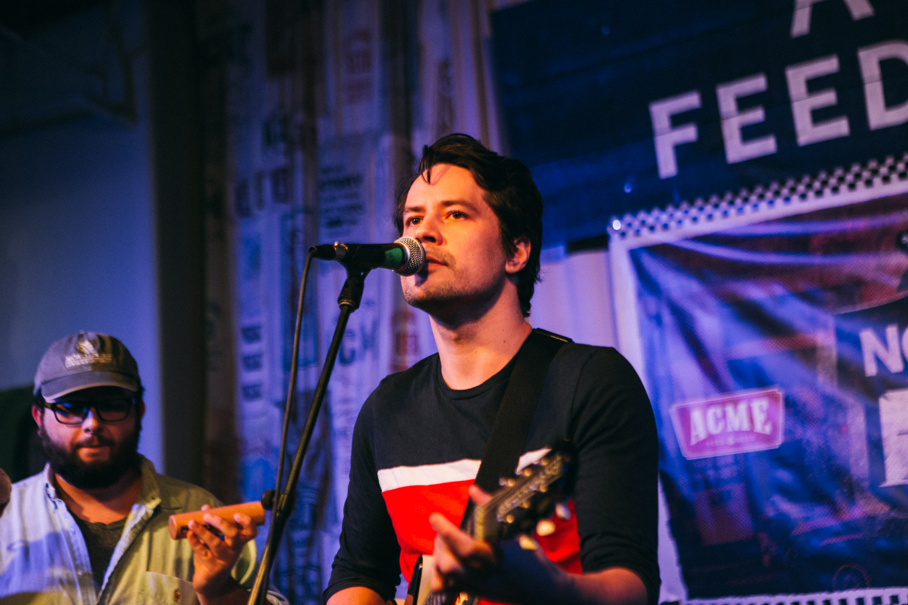 With a voice that immediately commands one’s attention, it was obviously from the get-go that the next performer, Ross Livermore, has some God-given abilities that not everyone is blessed with. His marvelous voice was paired with powerful, southern rock inspired arrangements, performed by a stupendous backing band of players I recognized from here and there (no doubt because they play in other bands around town). Their entire set had a early Black Crowes vibe to it that I was relishing very much, having never seen the Crowes live and in person myself. In addition to all of his tasty original work, they snuck in a great Beatles cover, “Believe Me,” that seemed to really get the dinner crowd going. He also wasn’t afraid to jam it out, as he did later on during one of his closing tracks. By the time he’d finished, it was obviously he’d not only crushed this gig, but we’d probably have to think about booking him again at Acme, next time as a headliner.