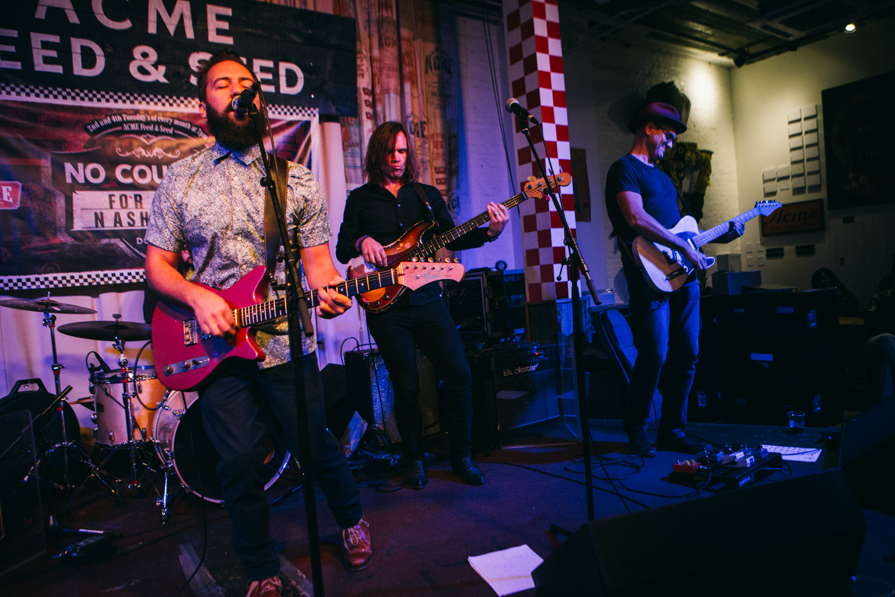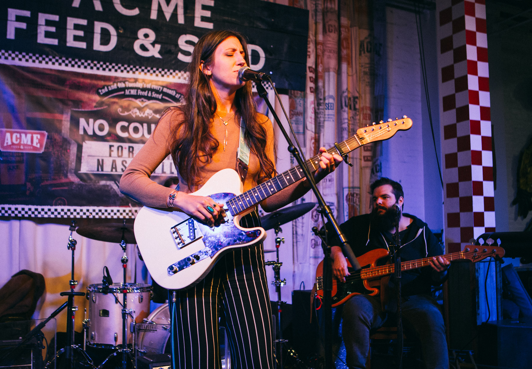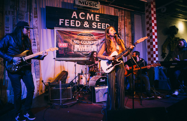 After listening to some of her stuff ahead of time to write the preview for the show, I was extremely excited to be seeing Nightingail live and gracing the Acme stage as top billing for our No Country Presents showcase. I’m a huge fan of all things blues, especially the Memphis TN variety, because of it’s proximity to my adopted home of Nashville. Lucky for me, the headliner was originally from Memphis, and that now familiar sound, that can only come from there, seemed to permeate through all her songs. Her effortlessly cool vocal delivery, over smokey twelve bar riffs was captivating start to finish. Nightingail had a way about her that just lent an authenticity to the music that not many get away with, and the ones that do tend to wind up being labeled as legends. The easy comparison that comes to mind is Loretta Lynn, but Nightingail seems much more nonchalant; being truly great without having to try too hard. She also dips a little more into the realm of psychedelia, like when her and the band covered The Doors track “People Are Strange,” including the awesome/creepy organ sounds backing the hook. On the back end of her set she also showed she wasn’t afraid to put her foot all the way to the floor, unleashing some pure rock gems. She also threw in a very appropriate Elvis number, “Don’t Be Cruel,” to close things out on one of my top Acme showcase of the year! Be sure to check out the photos below and stay tuned for more on our No Country Present’s events going into 2018.