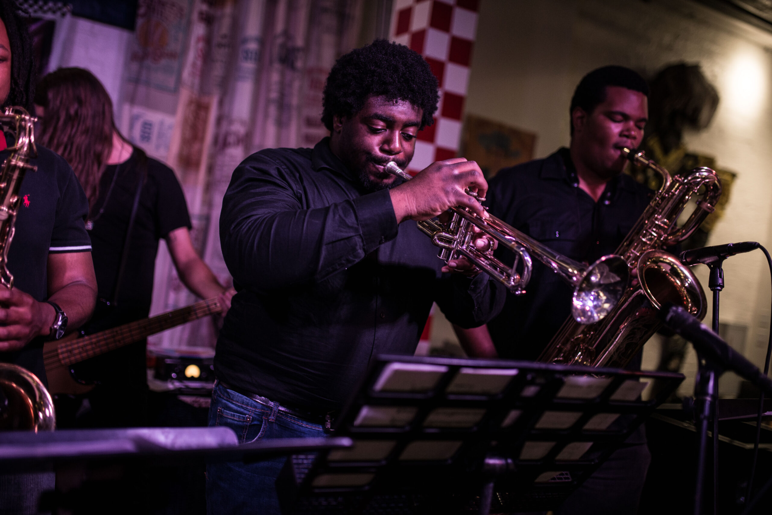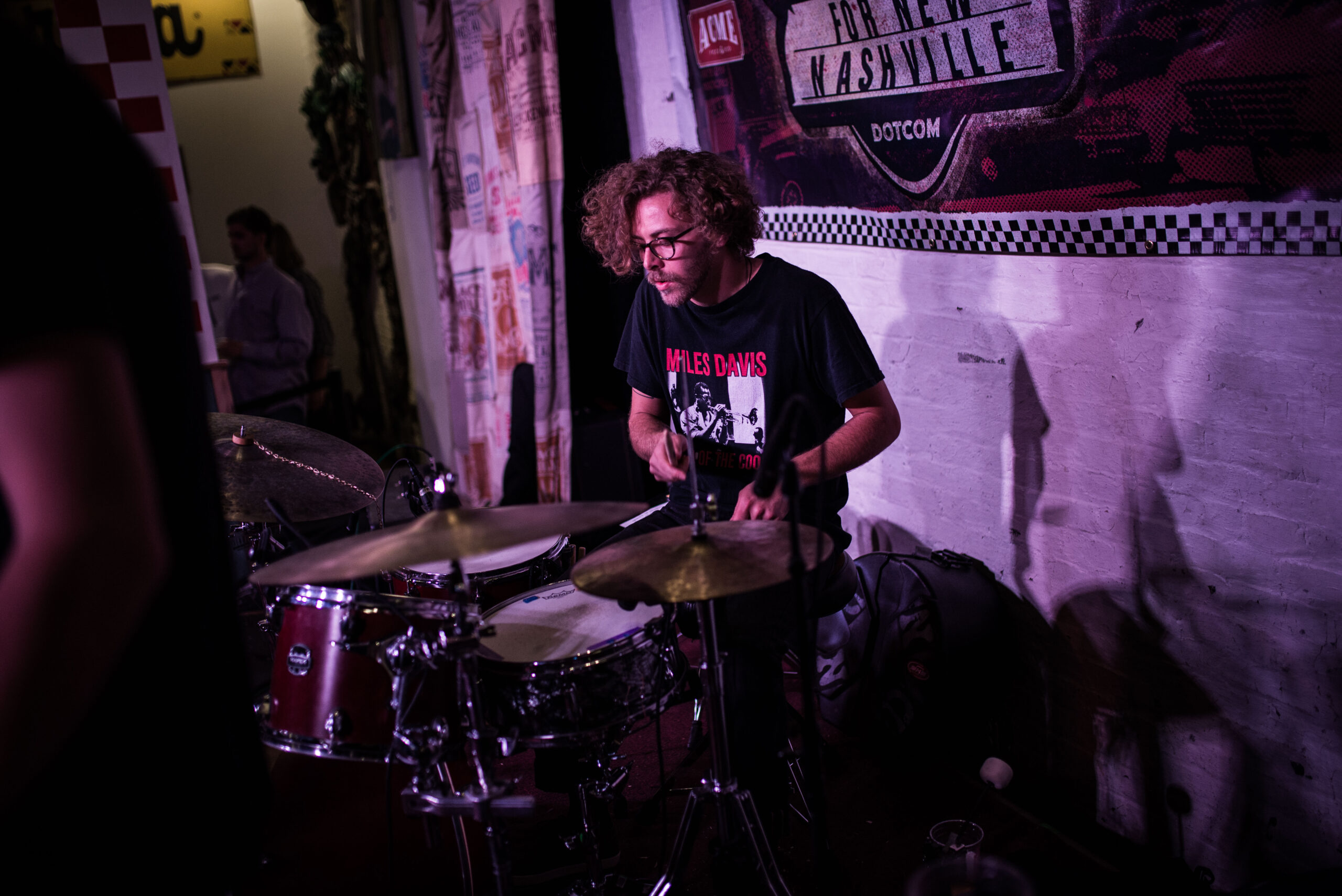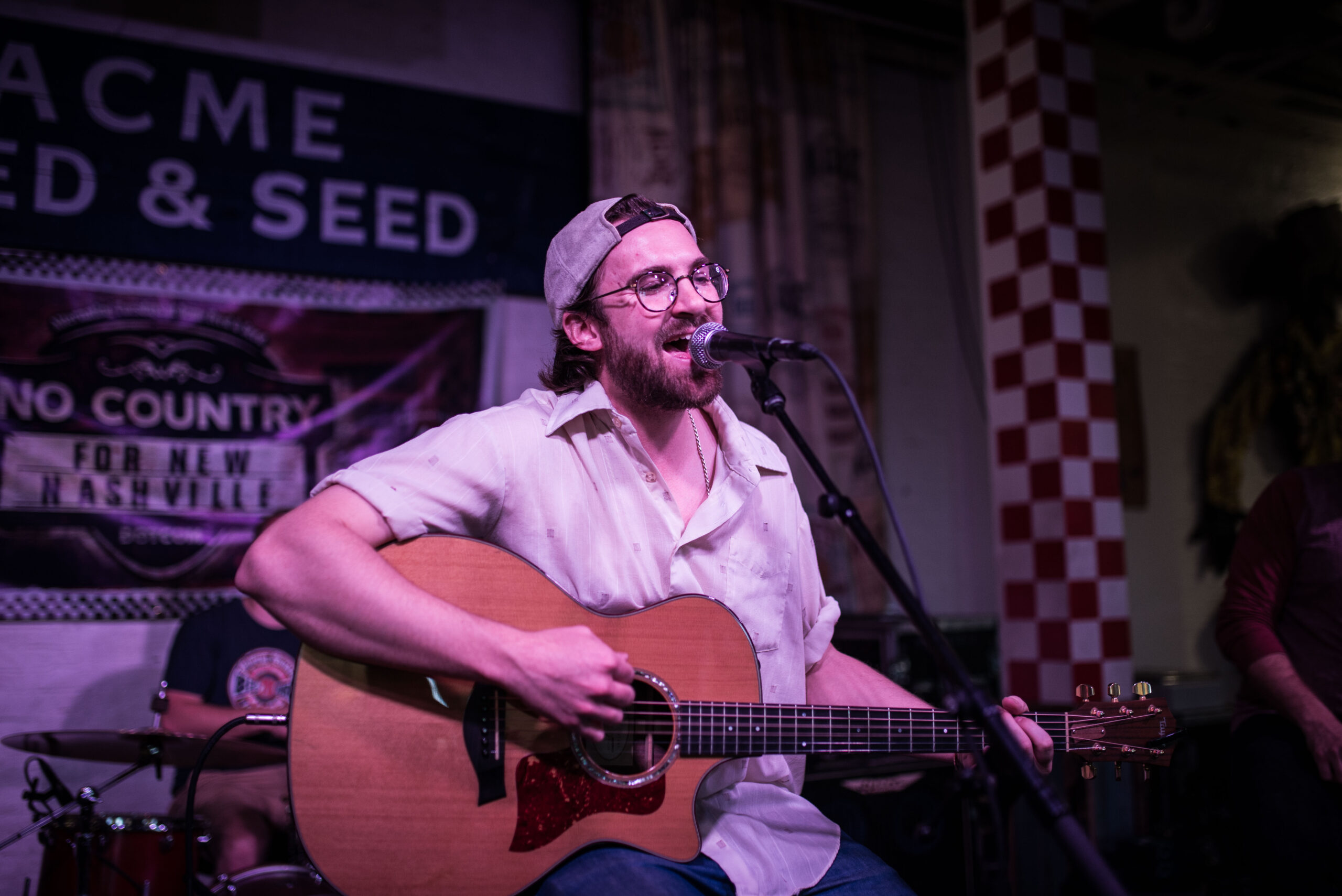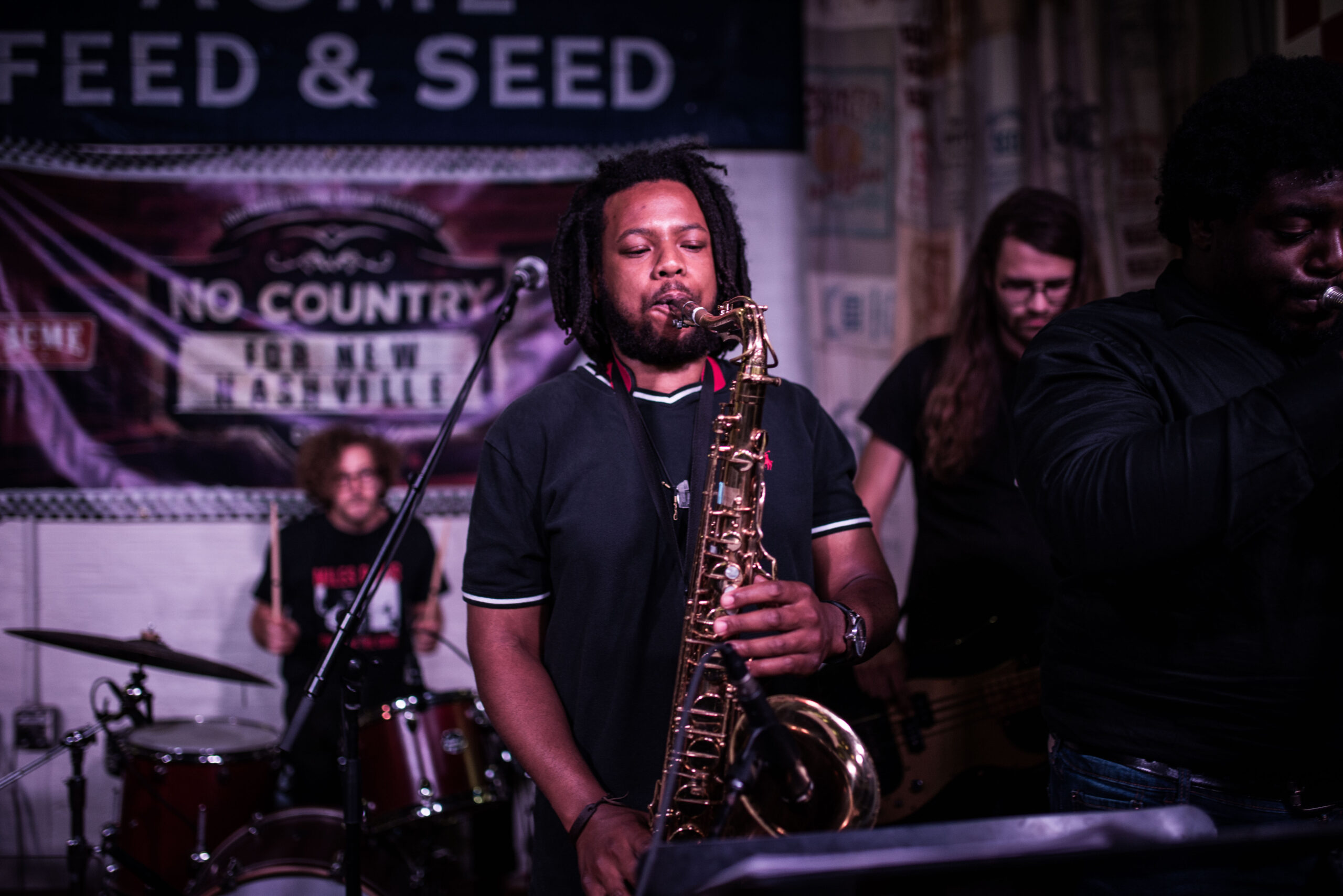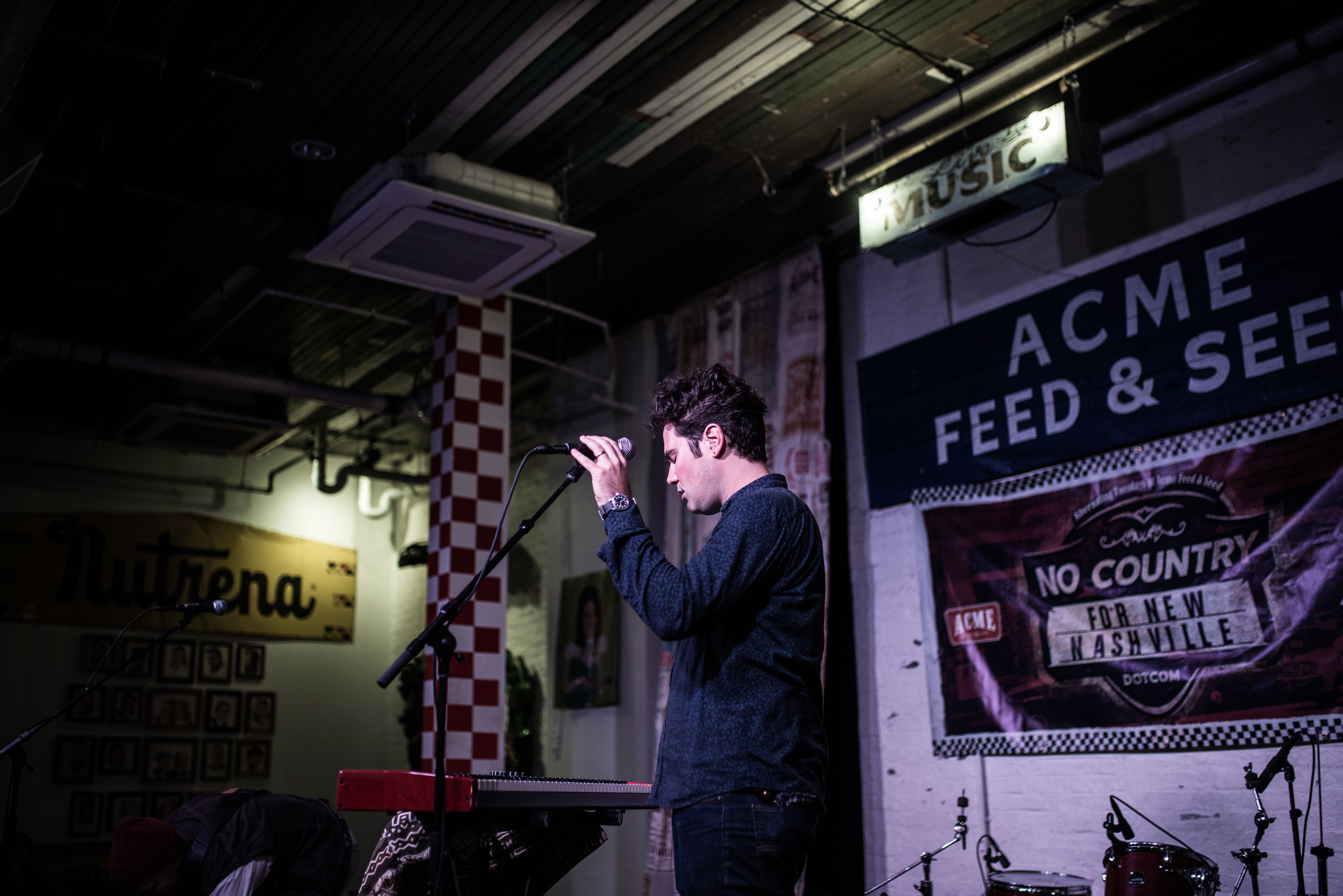Next up was Doran Danoff and his impressive stable of musicians. One of the larger bands to grace our showcase with Acme, Doran’s group featured him on keys/lead vocal, tenor sax, baritone sax, trumpet, electric guitar and bass, plus drums. From the jump, it was obvious every single one of them had performed together before. The seemingly well rehearsed set was as clean and precise as any we’ve hosted, and I was thoroughly impressed with the frontman’s natural flowing charisma. After sound check was complete, and the players were in place, they immediately they hit us with the funk. It was their first time ever playing Nashville, let alone the hallowed gutters of Broadway, and they did not disappoint. Danoff was truly the band leader, allowing all the performers the chance to shine, although the brass bravado is what I was liked the best. When he sent the brass section off to focus on a more stripped down interpretation of “Tallest Man,” I was genuinely moved by the quality of his lyrics as well.