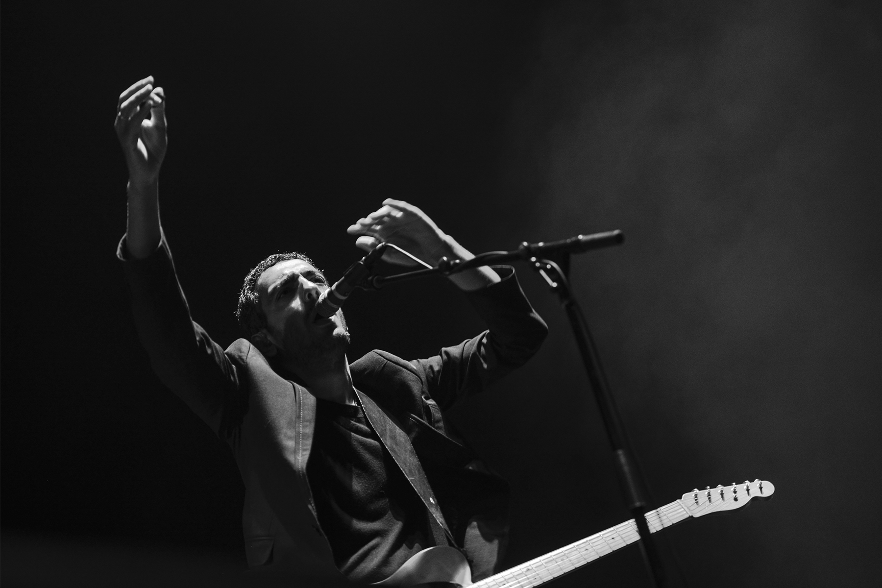 I hadn’t done a lot of homework on openers Dudu Tassa & the Kuwaitis, but I did know, from a press release I’d received not long before the show, that they were a cross-cultural, Jewish-Arabic band from Israel (where Radiohead will perform later this year), and their music is a revival of that of acclaimed Iraqi composers the Al-Kuwaiti Brothers, who are Tassa’s grandfather and great uncle. Despite a connection to Jonny Greenwood, who collaborated with them a few years back, I suspect that their middle eastern multiculturalism on full display for a tour in the U.S. in the midst of our current political climate was no accident. A sort of fusion of western rock influence and traditional music, the band sang in Arabic, and played a mix of conventional instruments, strings, and percussion. Ever the dynamic frontman, Tassa was joined by a stellar vocalist (I believe to be Nissren Kader, though I didn’t catch her name during the show) for much of the performance, and, though a sonic far-leap from Radiohead, I definitely understood the musical connective tissue. Ending a meager half hour, the band’s vibrant opening set seemed to satisfy the rapidly filling room of anxious Radiohead fans, even if many weren’t familiar with their music.