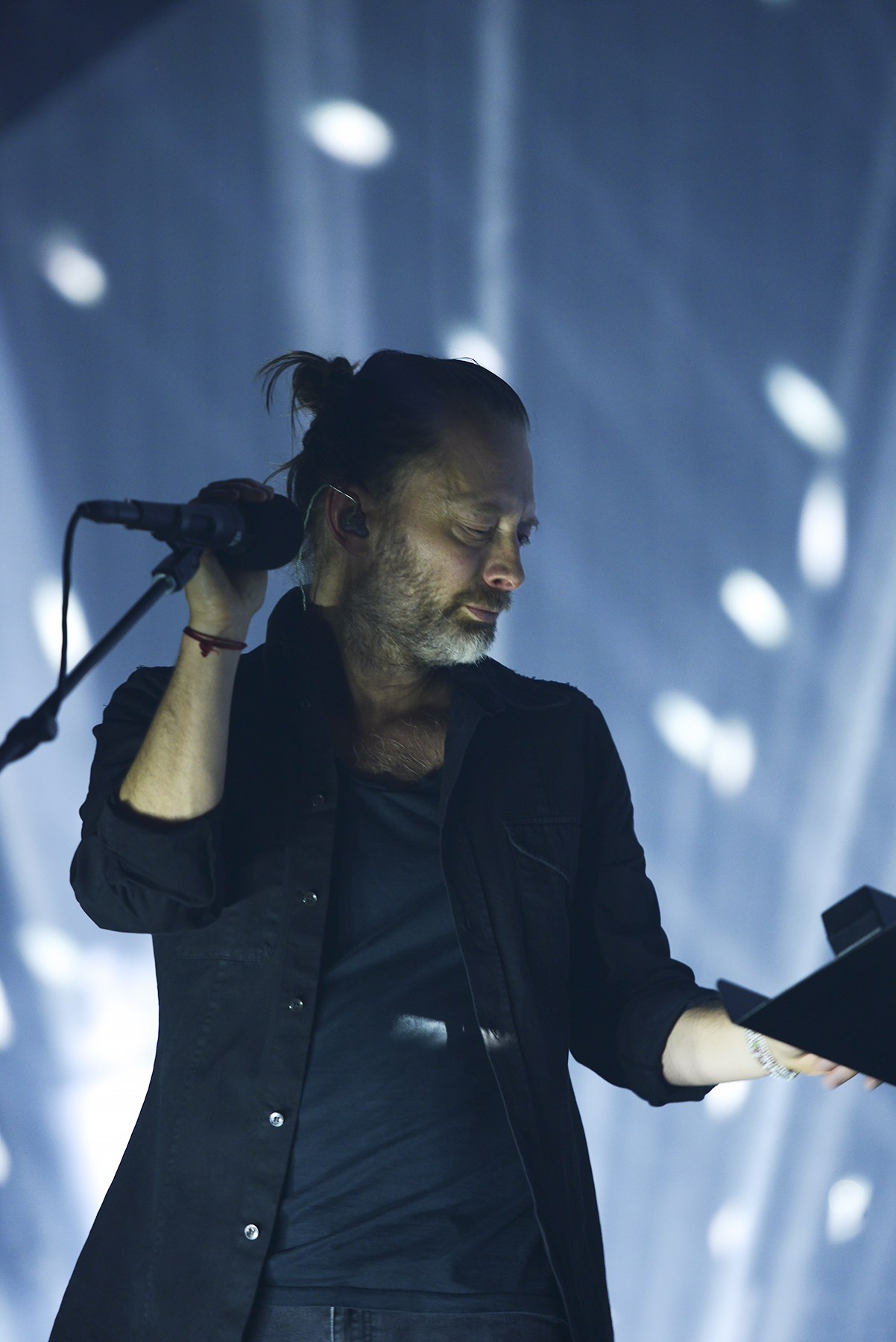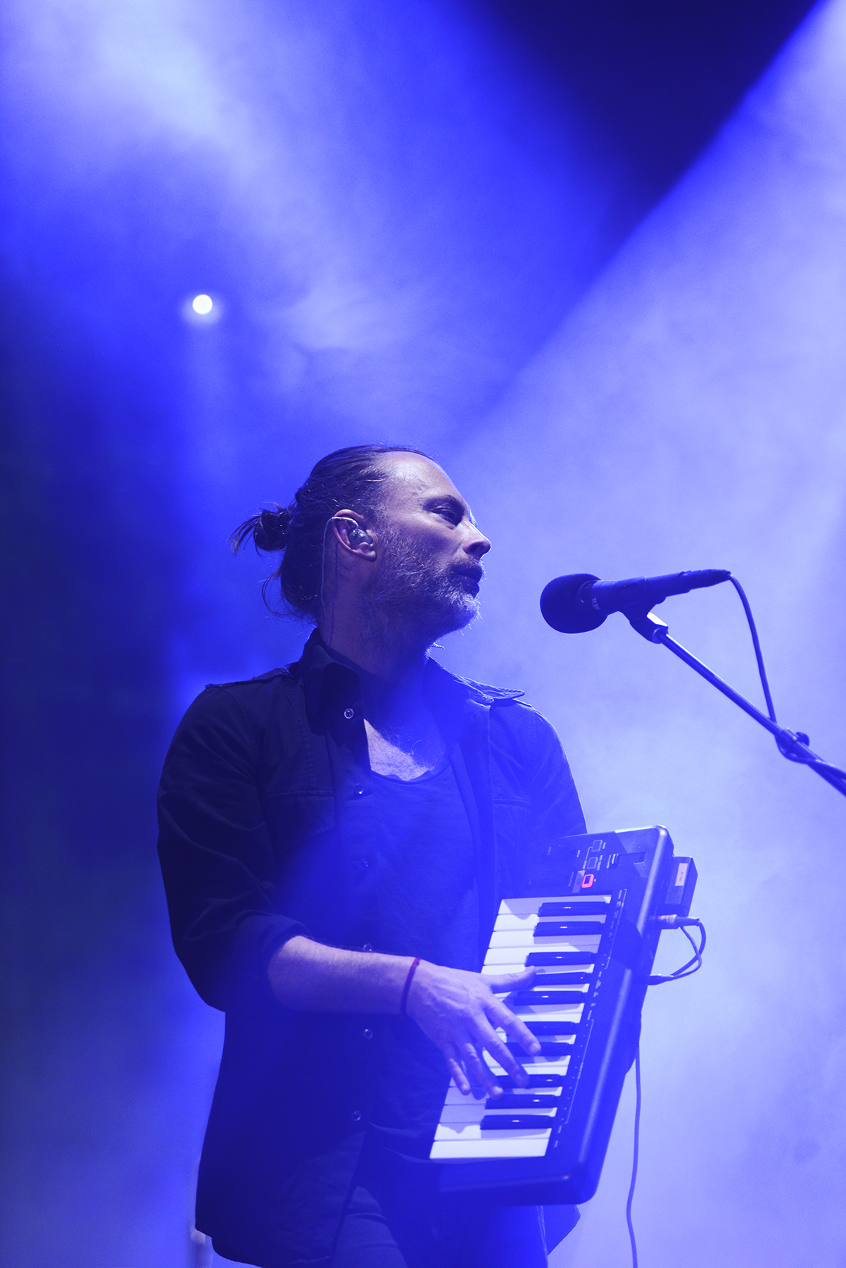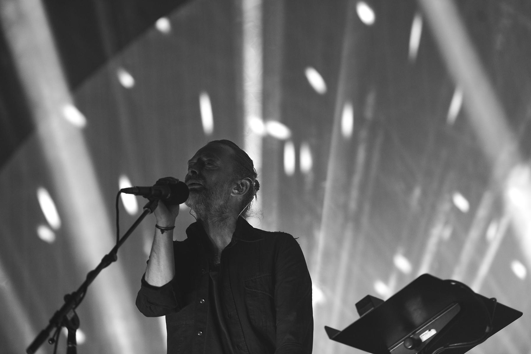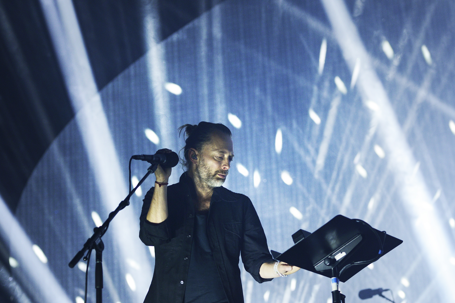 Though they play a somewhat different setlist every night, so much care seems to get in the structure and sequence of every Radiohead show, and with opener “Daydreaming,” they eased into their performance with a subtle, dreamy build, offsetting the elation and awe of the moment of realization that I was, in fact, seeing this larger-than-life band in person once more. Manipulating something electronic from a stand, Thom Yorke exuded his sort of hyper-focued otherworldliness while, like the rest of the band, so seamlessly evaporating in the dense, hypnotic, and so flawlessly recreated soundscapes of the band’s lush catalogue. By third tune “Ful Stop,” Yorke was making a tiny handheld keyboard look cooler than anyone else I’ve ever seen attempt such a feat, and moving straight from the new songs to “Airbag,” the opener from perhaps the band’s most famous album, 1997’s OK Computer, left my jaw on the floor.