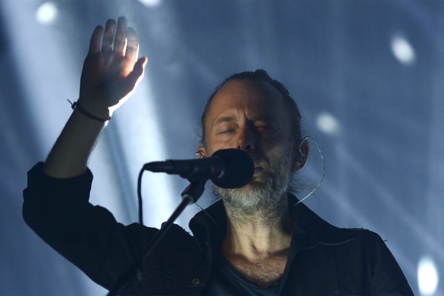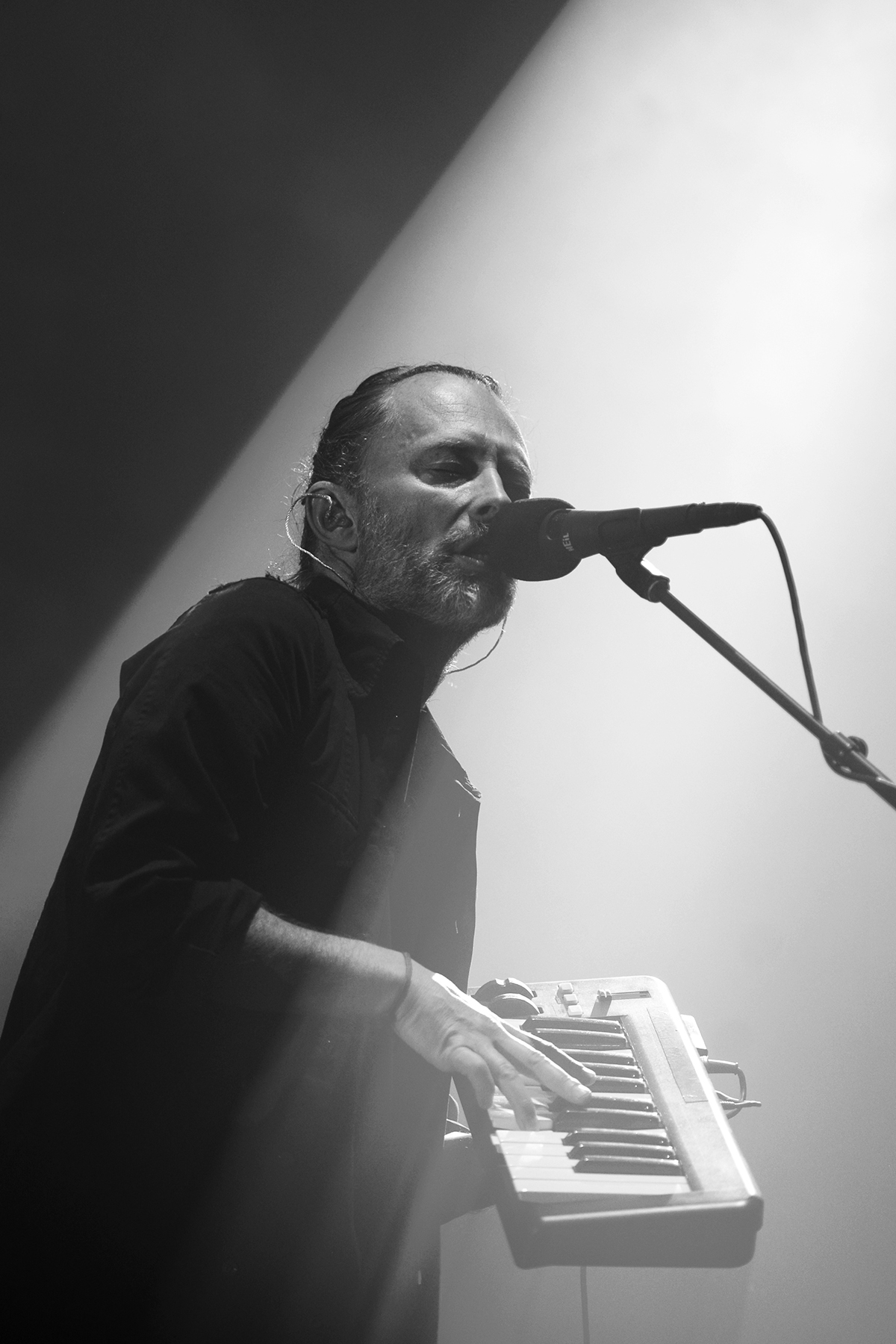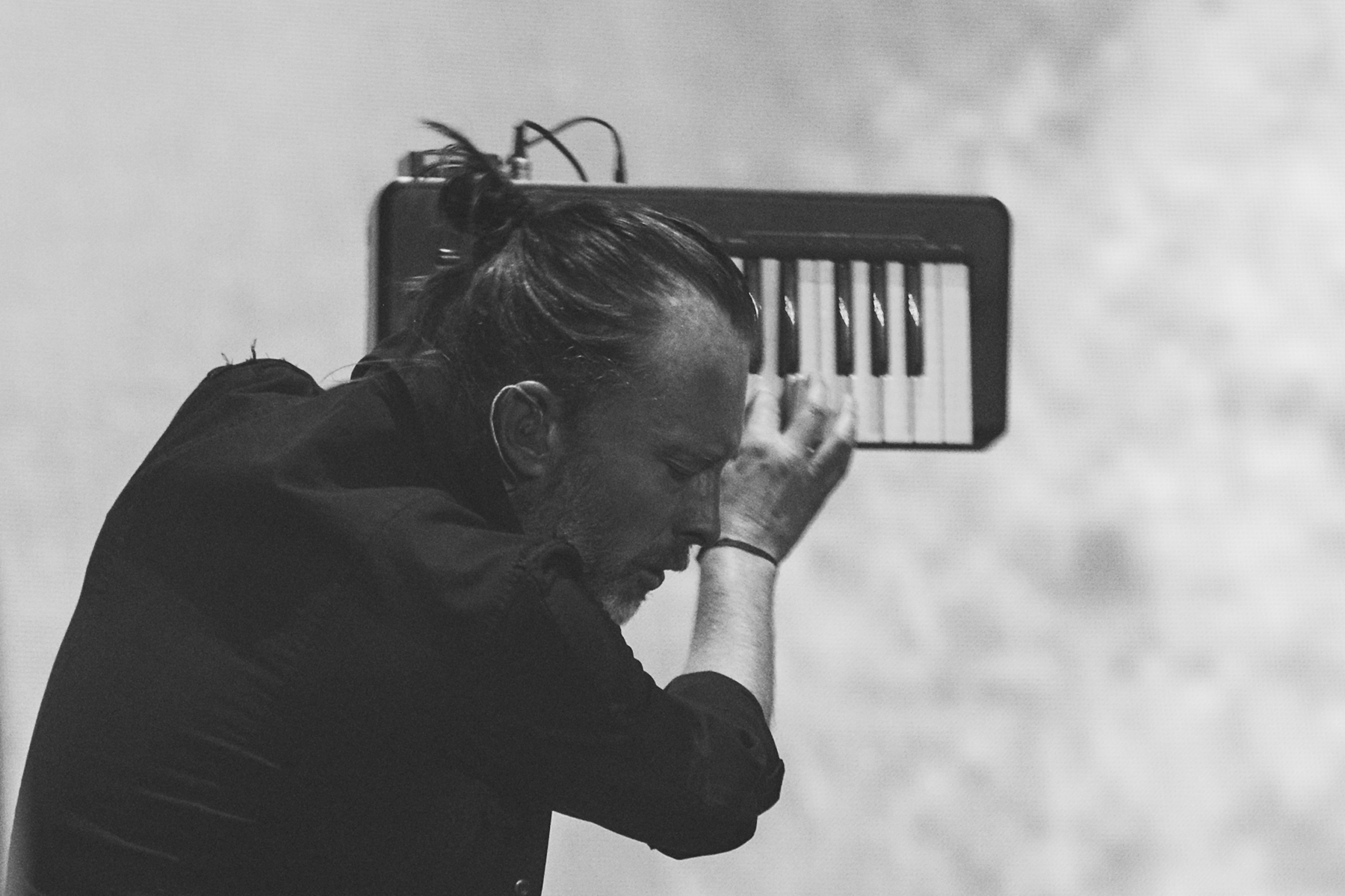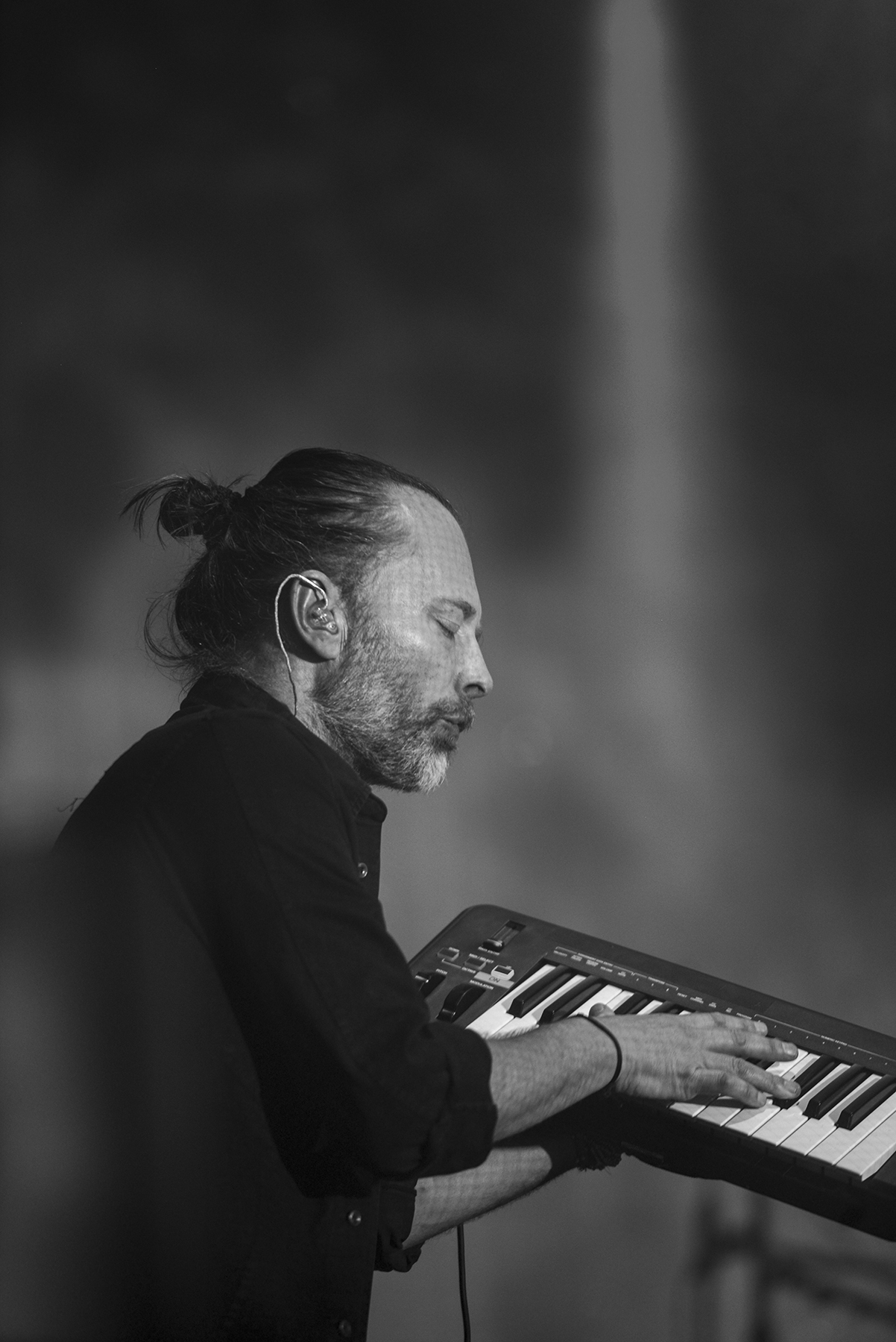 Though they play a somewhat different setlist every night, so much care seems to get in the structure and sequence of every Radiohead show, and with opener “Daydreaming,” they eased into their performance with a subtle, dreamy build, offsetting the elation and awe of the moment of realization that I was, in fact, seeing this larger-than-life band in person once more. Manipulating something electronic from a stand, Thom Yorke exuded his sort of hyper-focued otherworldliness while, like the rest of the band, so seamlessly evaporating in the dense, hypnotic, and so flawlessly recreated soundscapes of the band’s lush catalogue. By third tune “Ful Stop,” Yorke was making a tiny handheld keyboard look cooler than anyone else I’ve ever seen attempt such a feat, and moving straight from the new songs to “Airbag,” the opener from perhaps the band’s most famous album, 1997’s OK Computer, left my jaw on the floor.