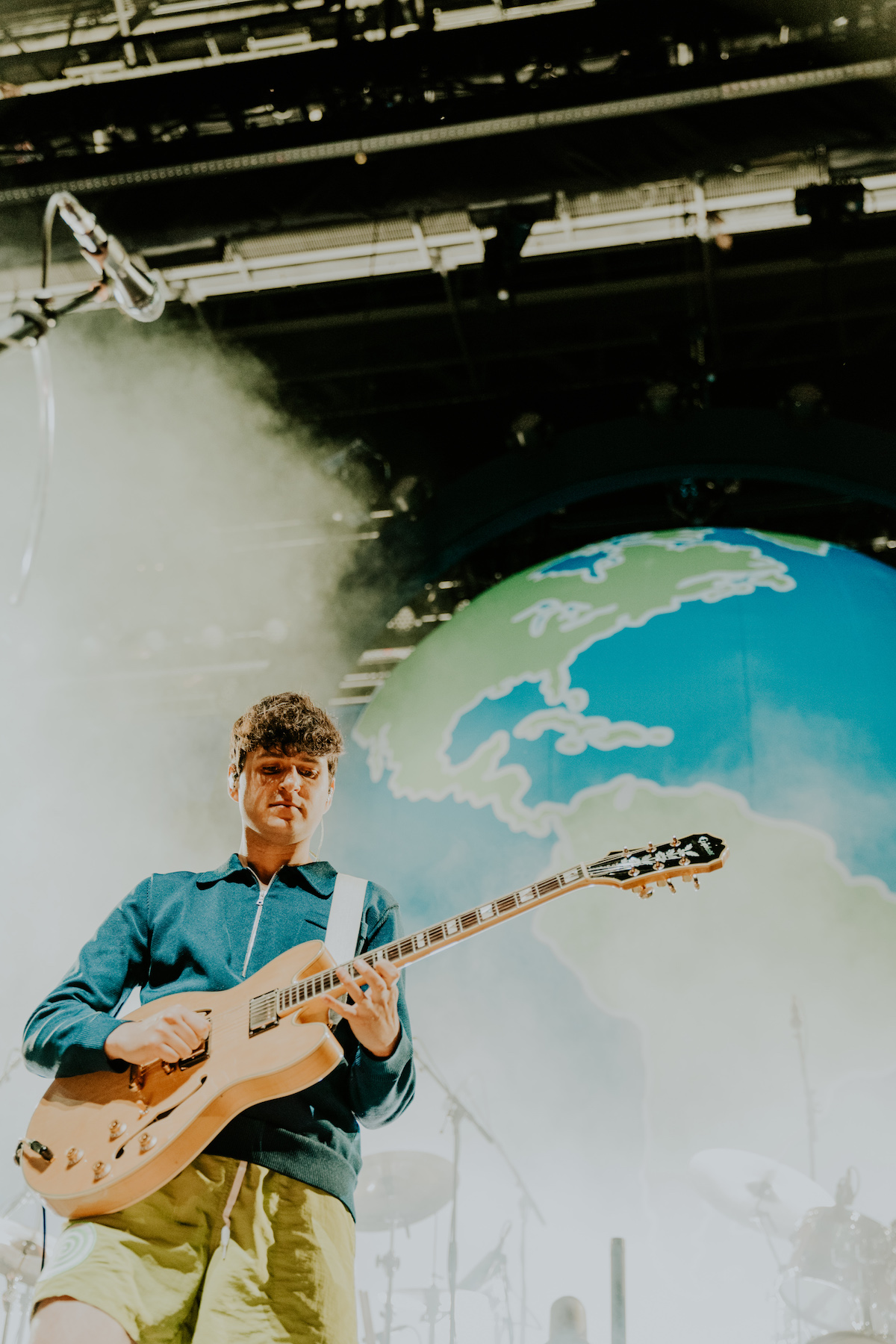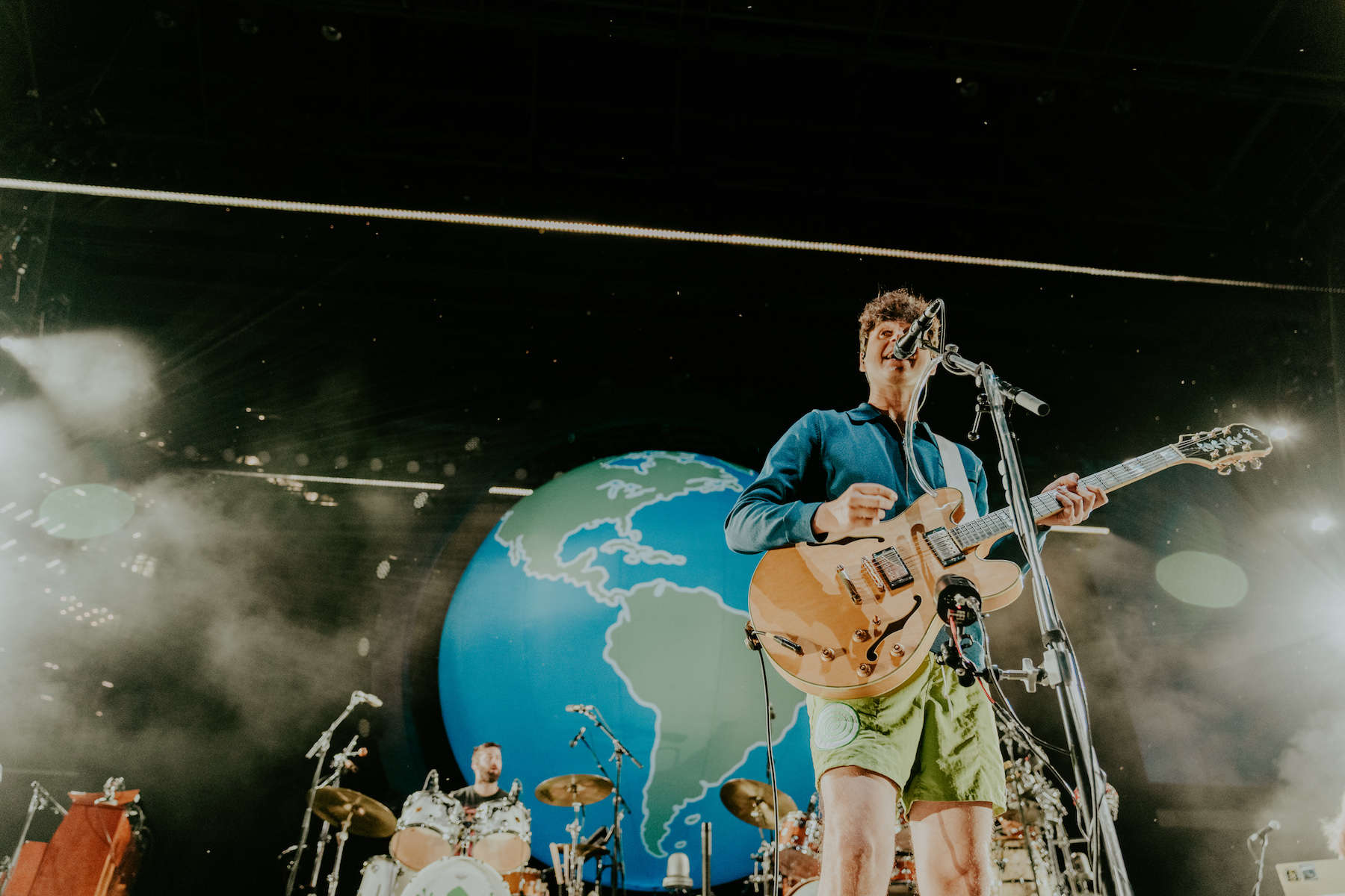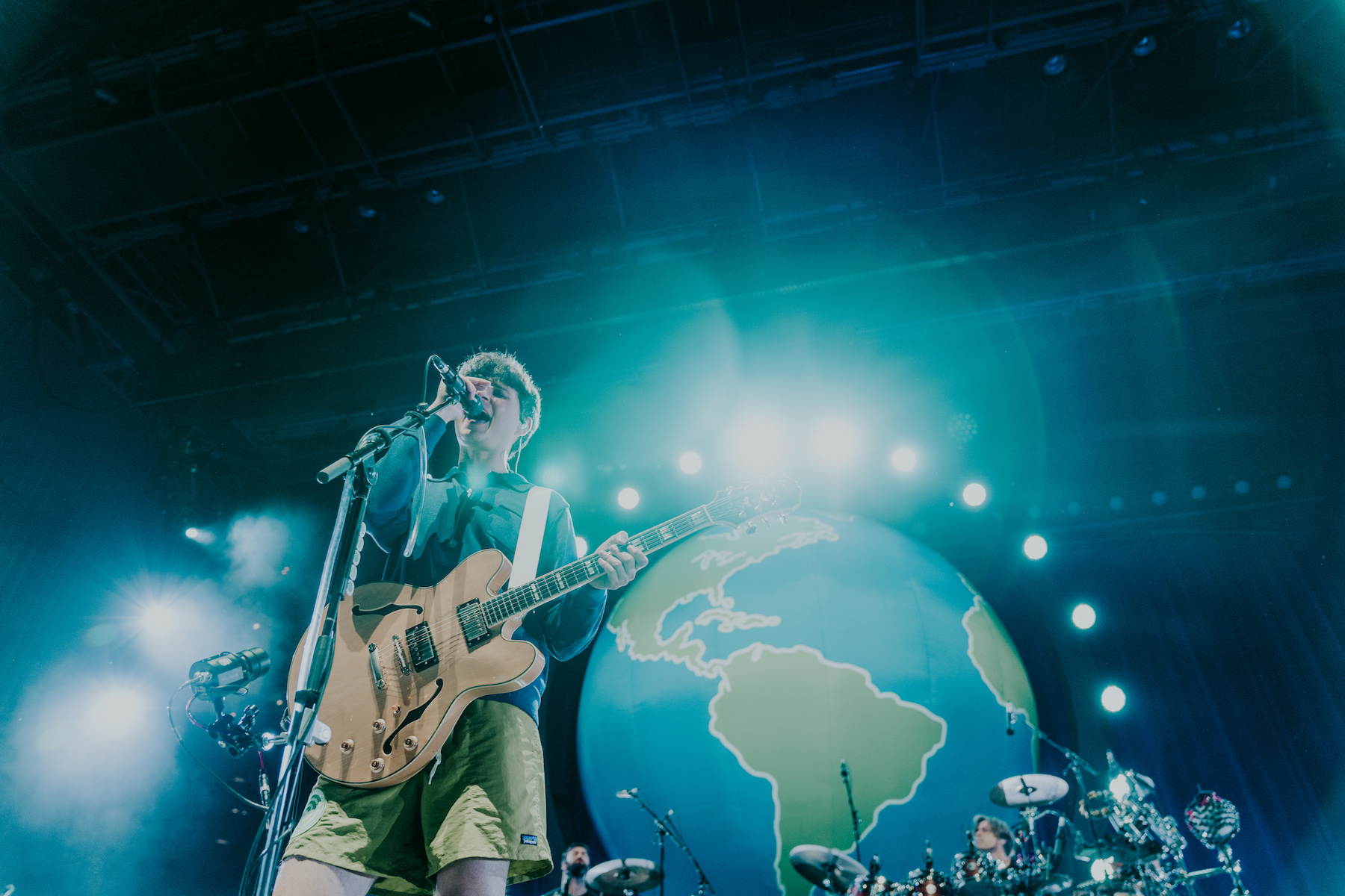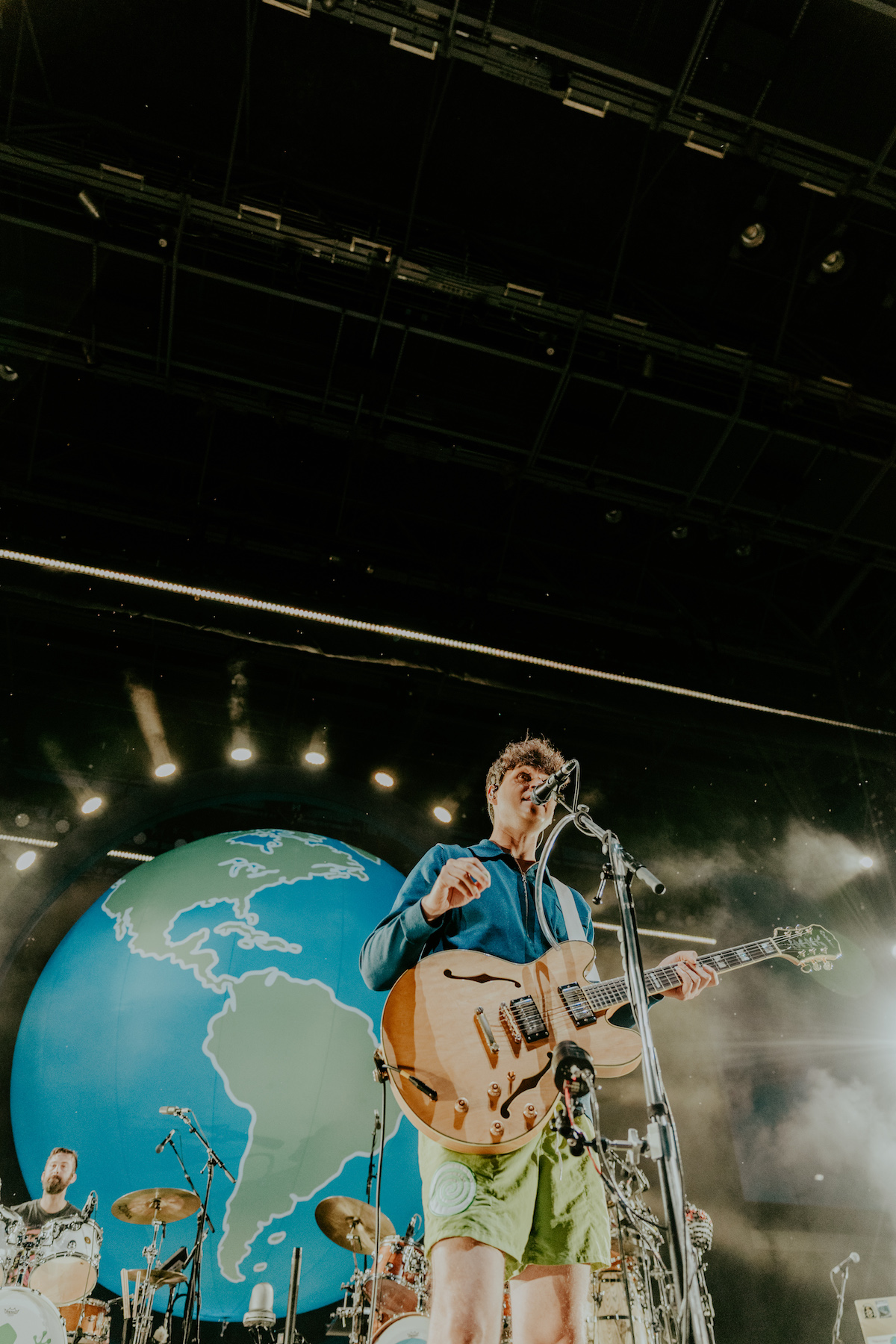 Arriving right on time, I was greeting by the band’s giant inflatable frog outside of the venue- a recurring visual element of this record cycle- and settled into my seat in time to study the huge, inflatable globe that would later serve as their backdrop. Admiring the noticeably diverse crowd, not just in gender and race, but also in age, from young children to practically elderly concertgoers, I was glad to see that everyone was on the same chill wavelength, largely remaining seated and politely attentive as openers Chicano Batman took the stage. I’ve seen the LA group a few times in festival settings, and their psychedelic soul sound is always wonderfully vibey and retro. Admittedly, I haven’t given their records much time, but their genre-bending worldly sonic palette made them feel like a perfectly complimentary fit for Vampire Weekend, and left me itching to finally give their music some overdue spins.