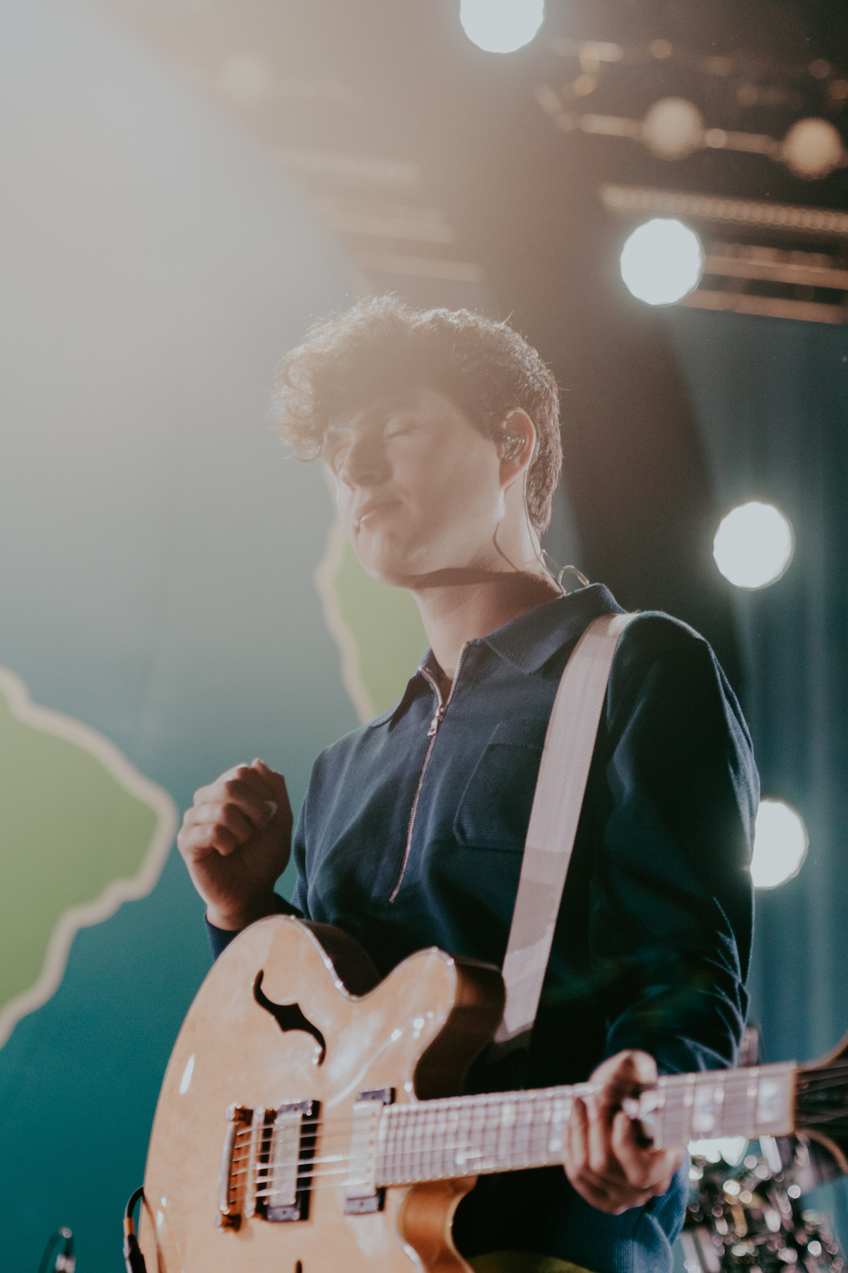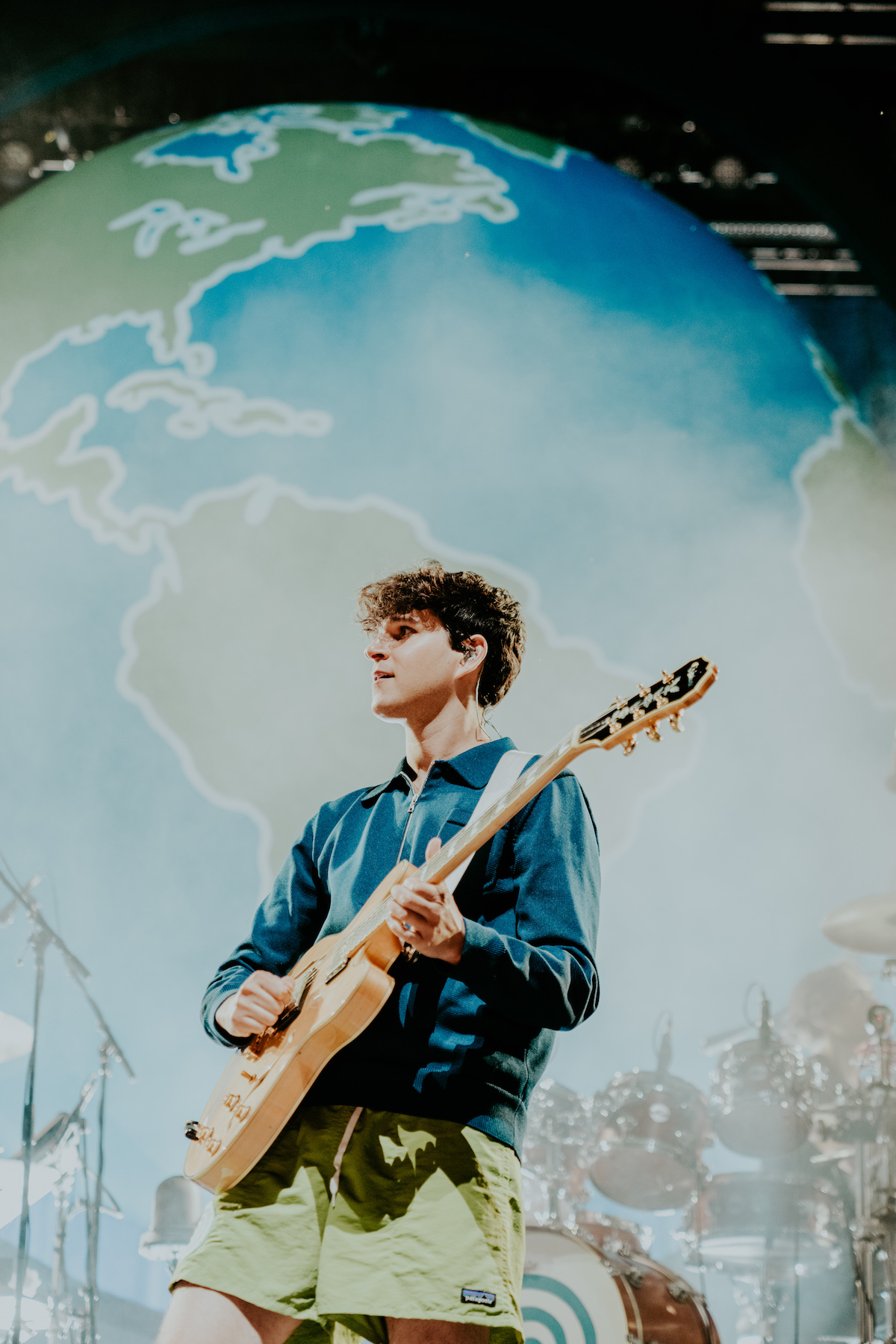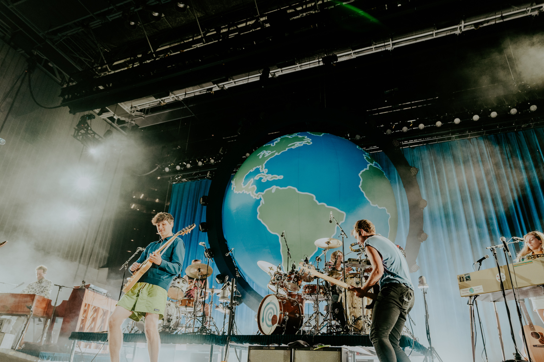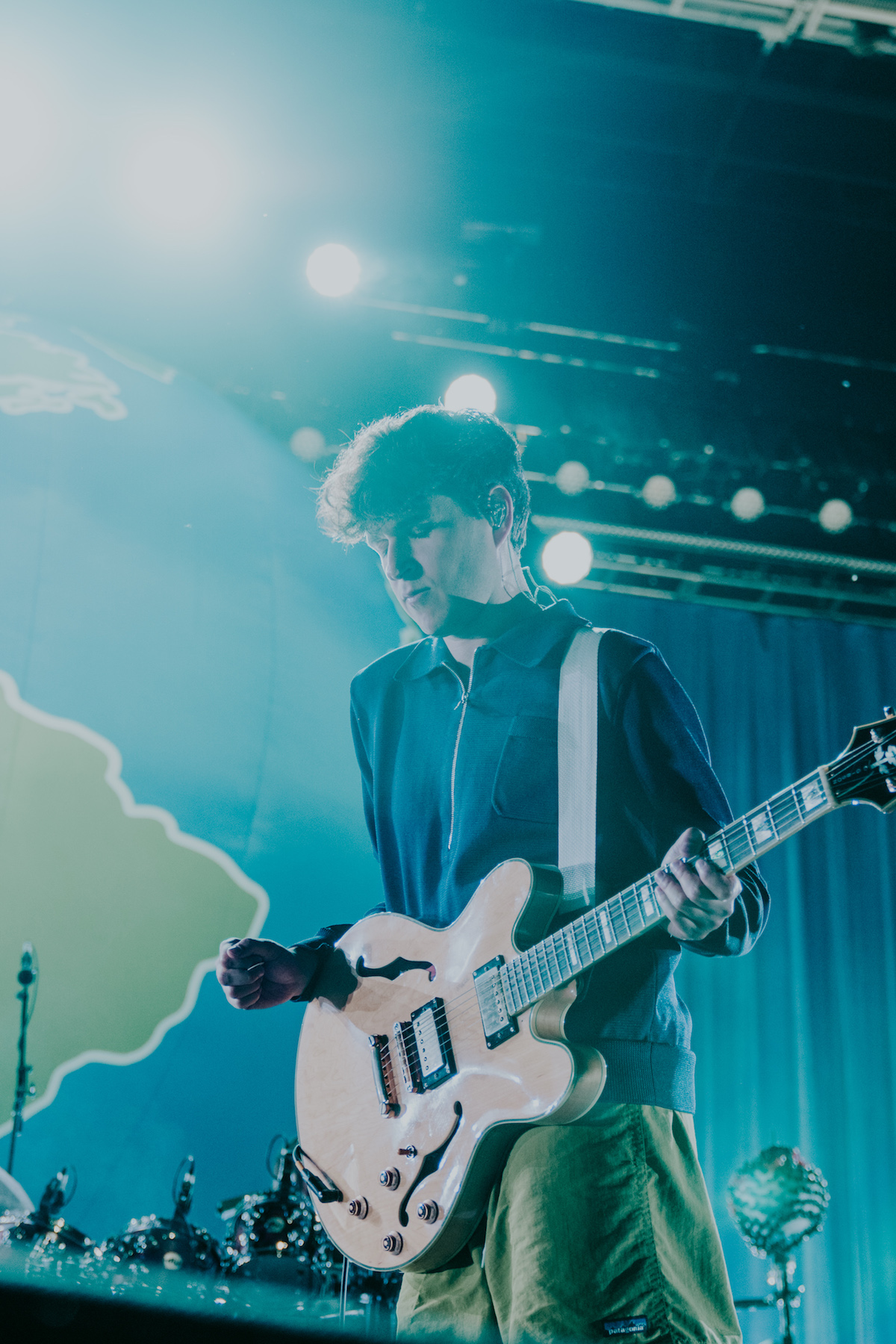Arriving right on time, I was greeting by the band’s giant inflatable frog outside of the venue- a recurring visual element of this record cycle- and settled into my seat in time to study the huge, inflatable globe that would later serve as their backdrop. Admiring the noticeably diverse crowd, not just in gender and race, but also in age, from young children to practically elderly concertgoers, I was glad to see that everyone was on the same chill wavelength, largely remaining seated and politely attentive as openers Chicano Batman took the stage. I’ve seen the LA group a few times in festival settings, and their psychedelic soul sound is always wonderfully vibey and retro. Admittedly, I haven’t given their records much time, but their genre-bending worldly sonic palette made them feel like a perfectly complimentary fit for Vampire Weekend, and left me itching to finally give their music some overdue spins.